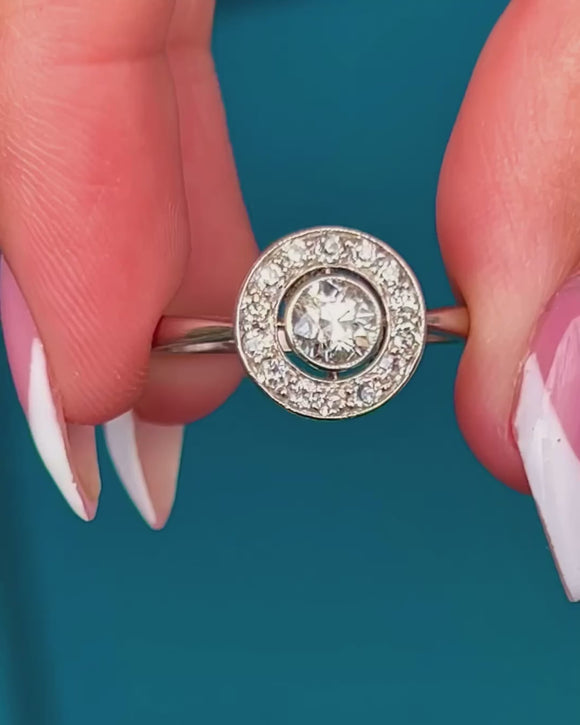 Art Deco Platinum Diamond Target Cluster Ring 0.65ct
