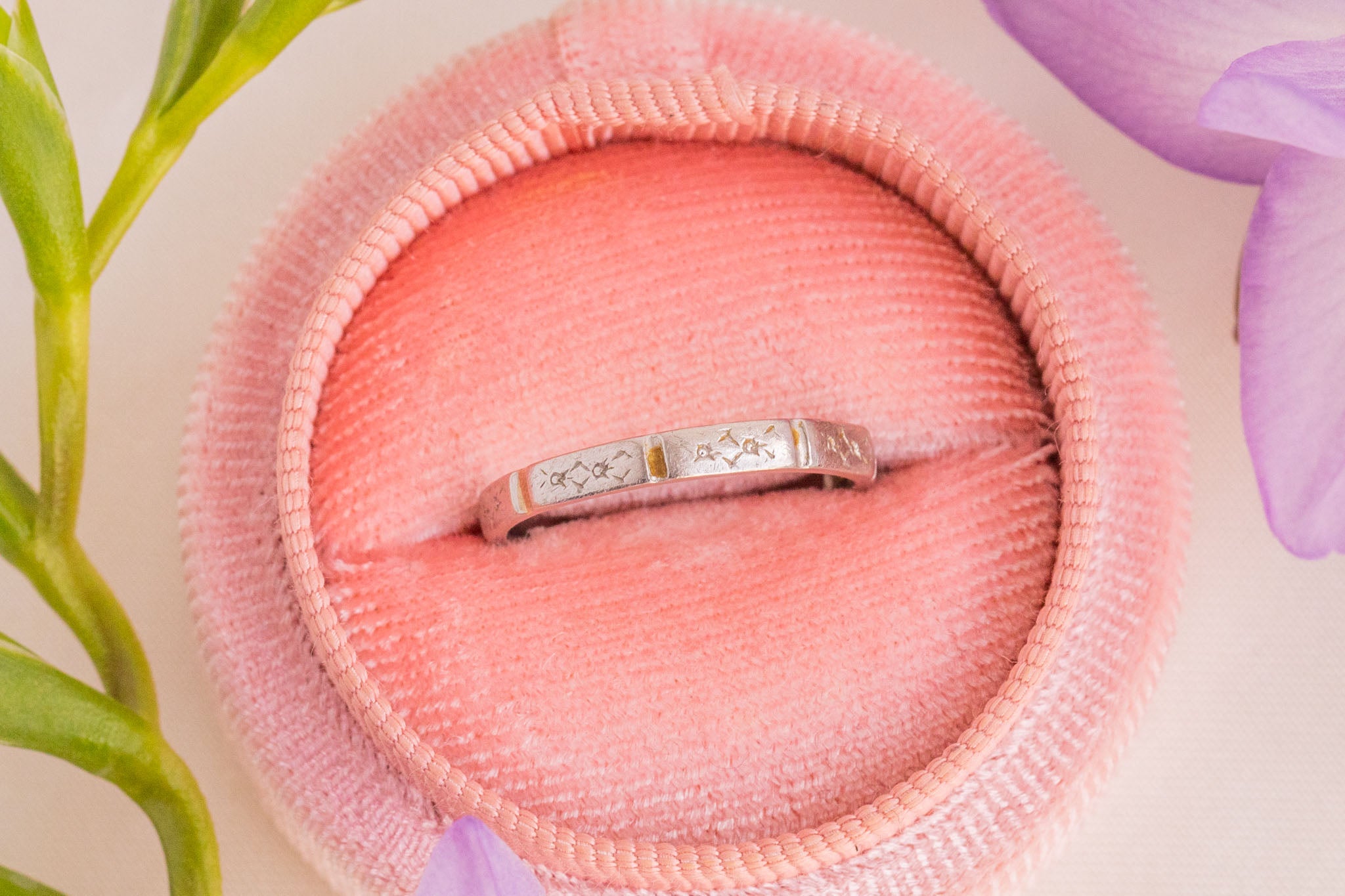 With orange blossom symbolising purity, good luck, and fertility, this antique Platinum band is a beautifully thoughtful choice to see you through the next chapter of life!