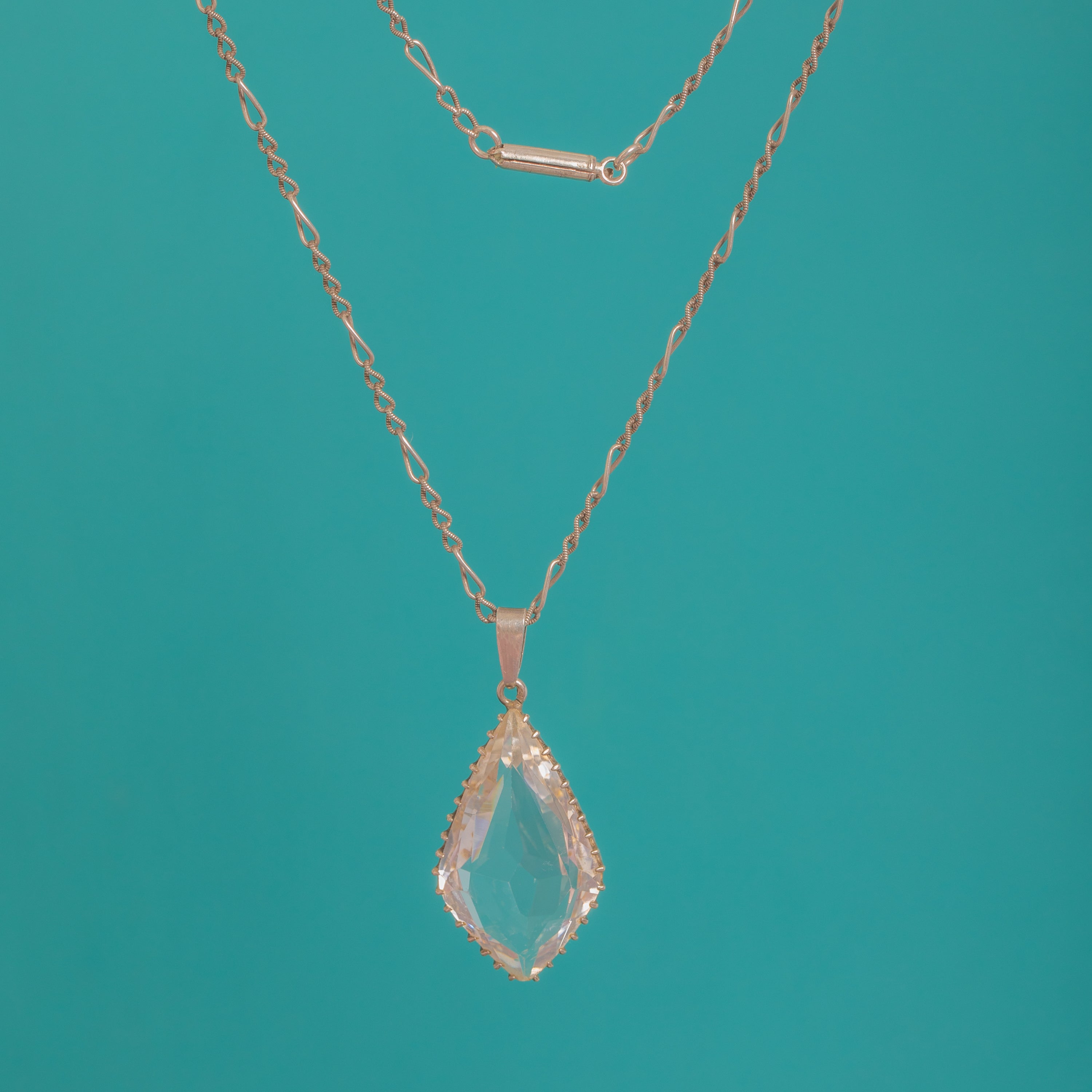 Art Deco Rock Crystal Lozenge Pendant with 16.5" Curb Chain Item added