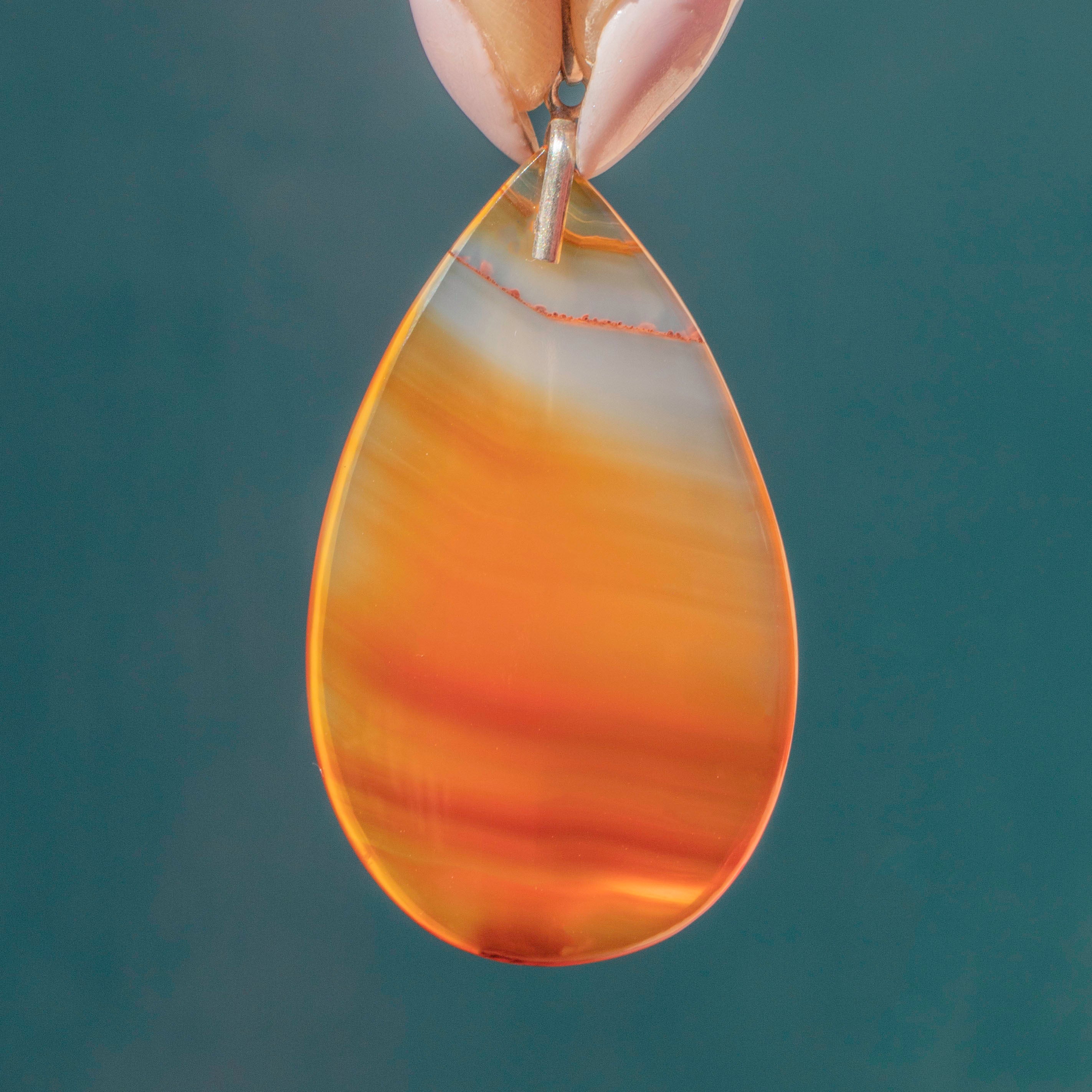 The teardrop shape is flattering, to say the least! The closer you look, the more the Agate reveals her several splendid layers, from sunset orange to deep mahogany brown to warm honey yellow, so she's perfect for year round wear.