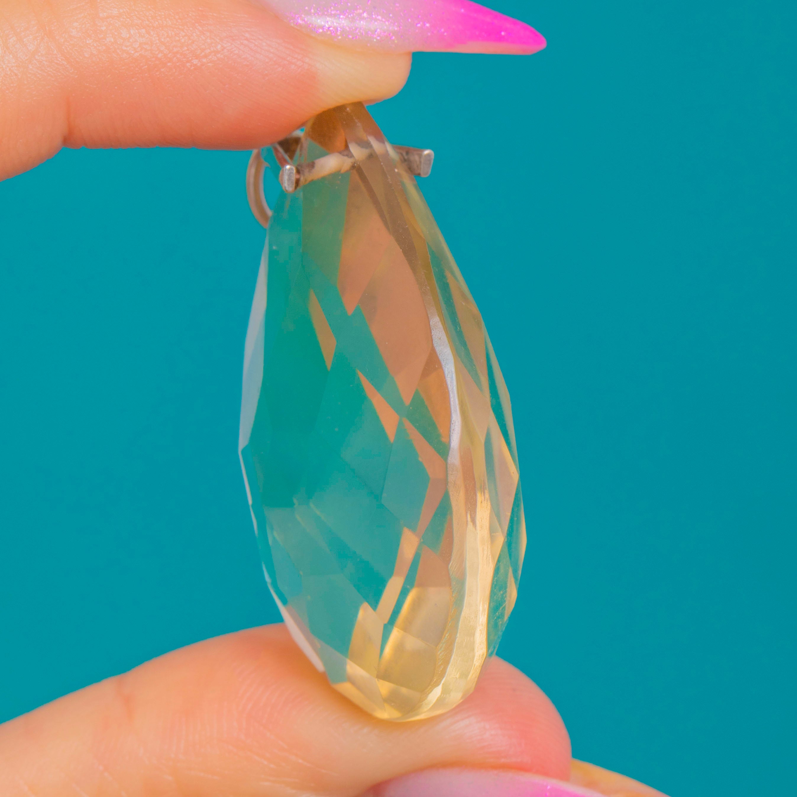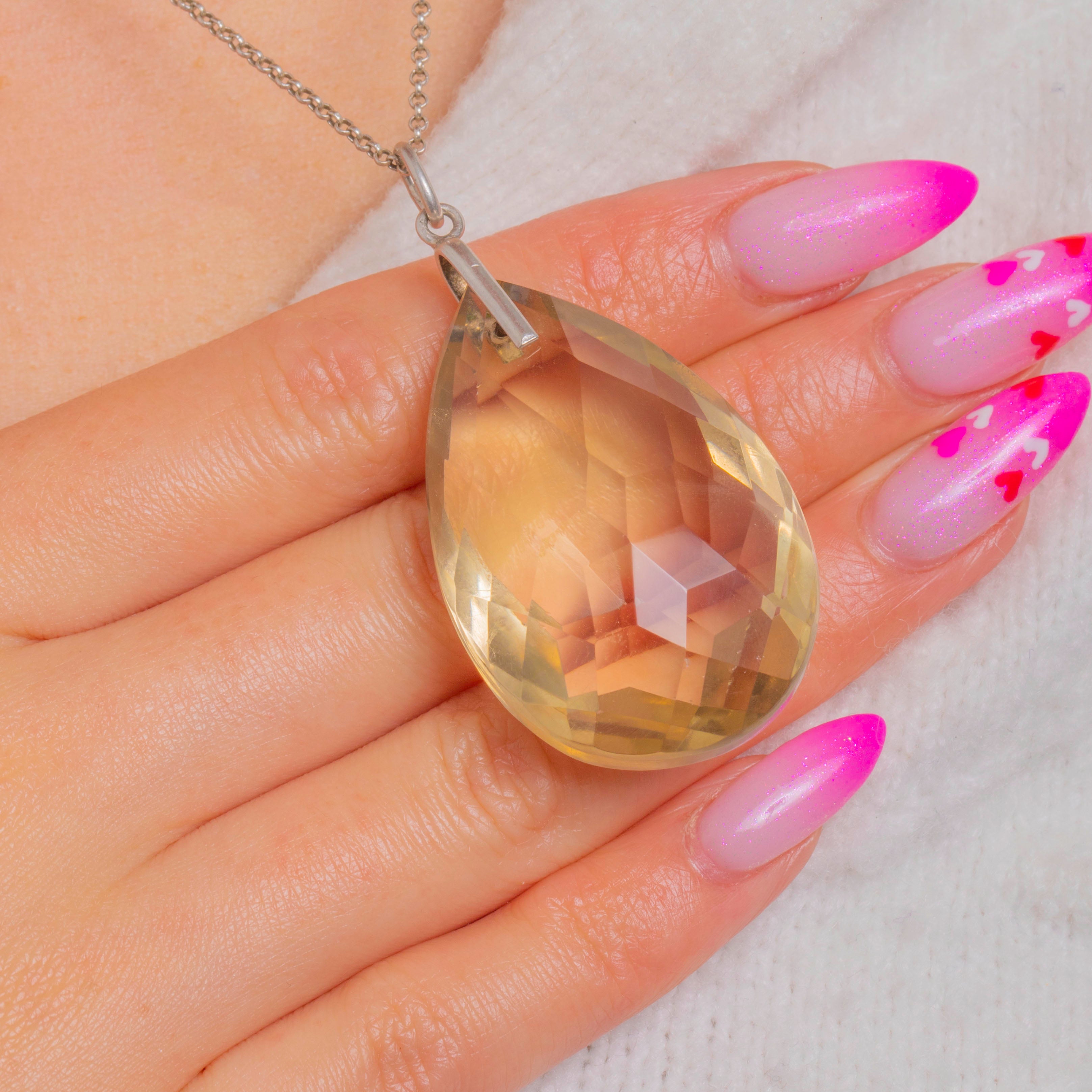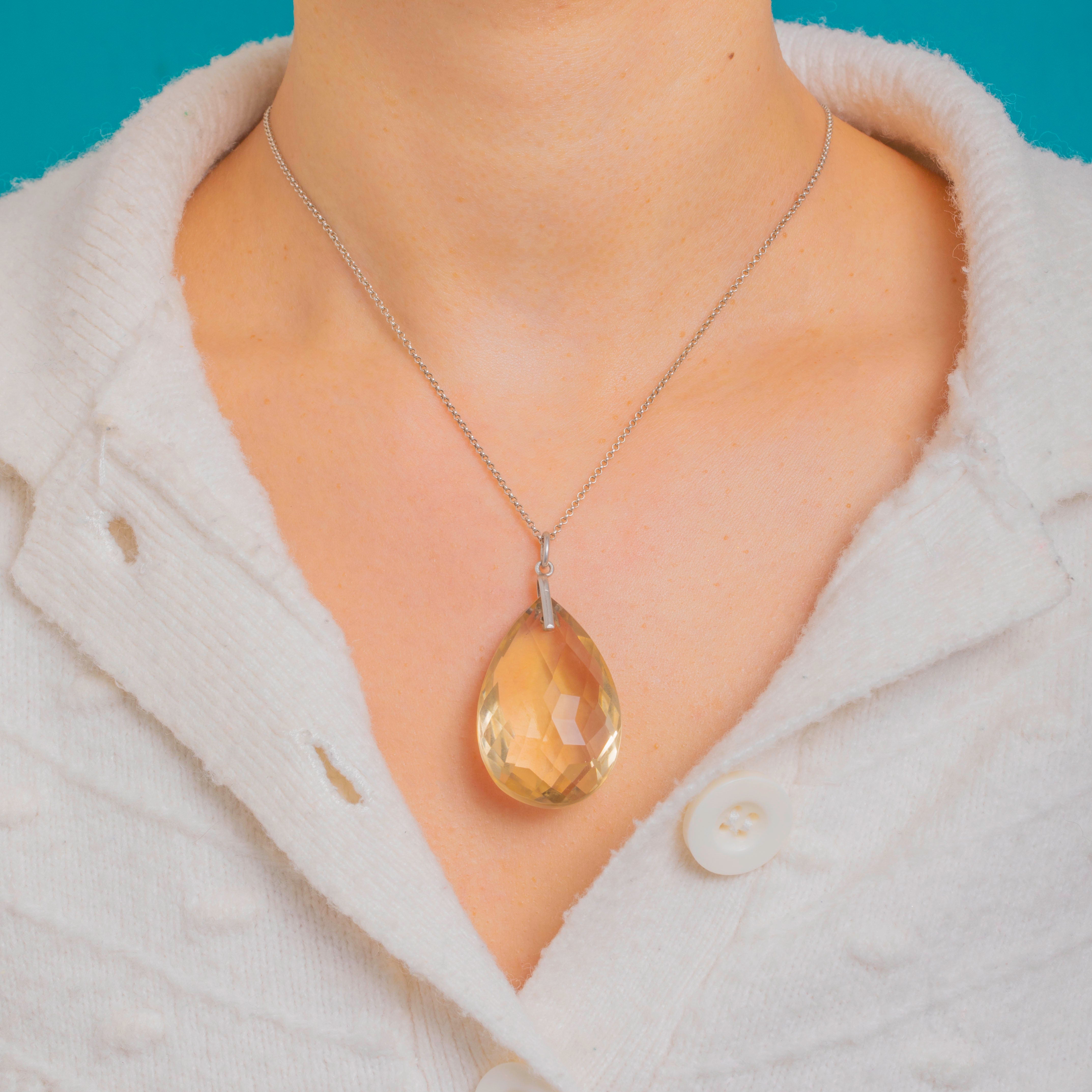 Art Deco Anhänger aus Silber mit birnenförmigem Citrin-Briolett, 75,50 Karat Citrin