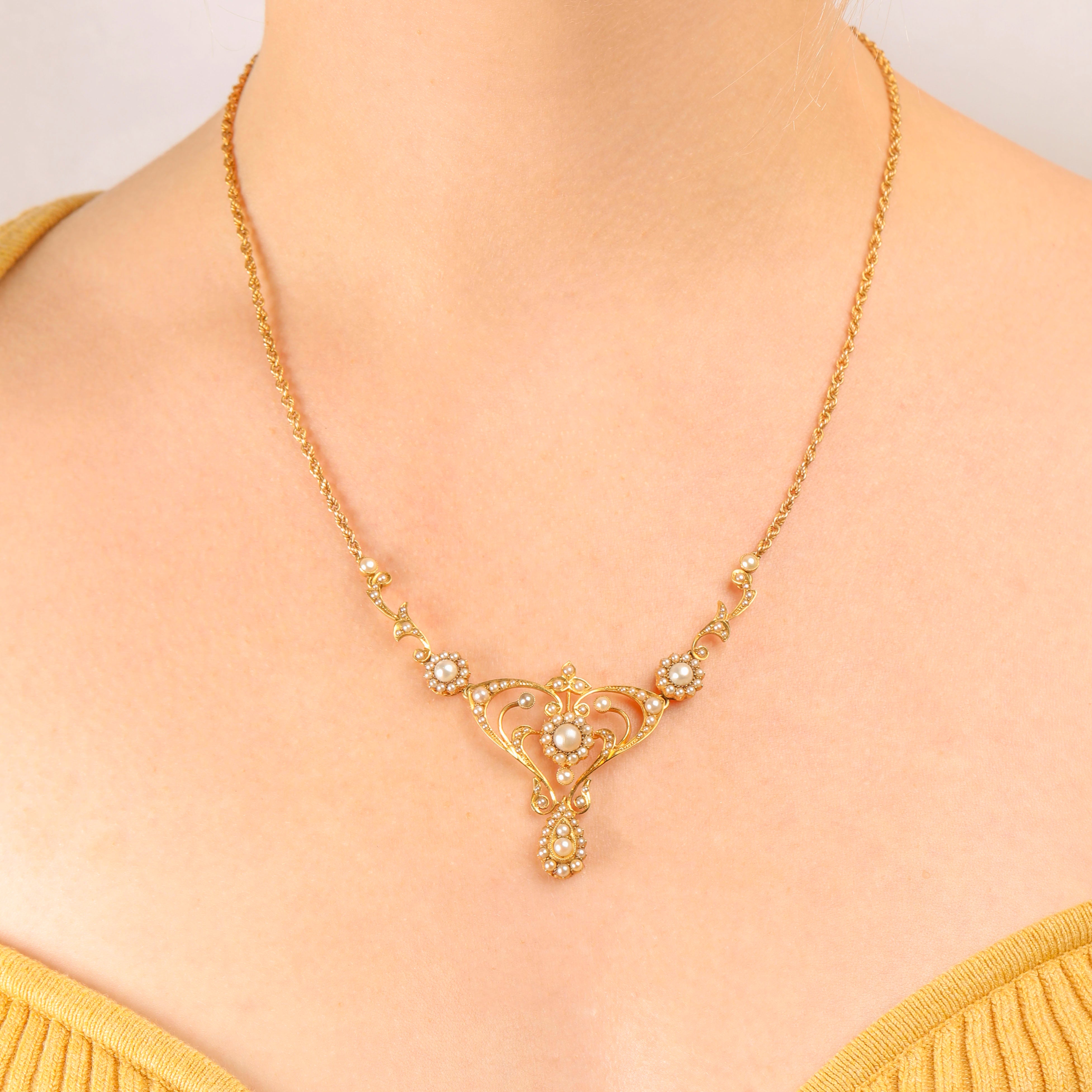 Art Nouveau 15ct Gold Pearl Lavalier Necklace