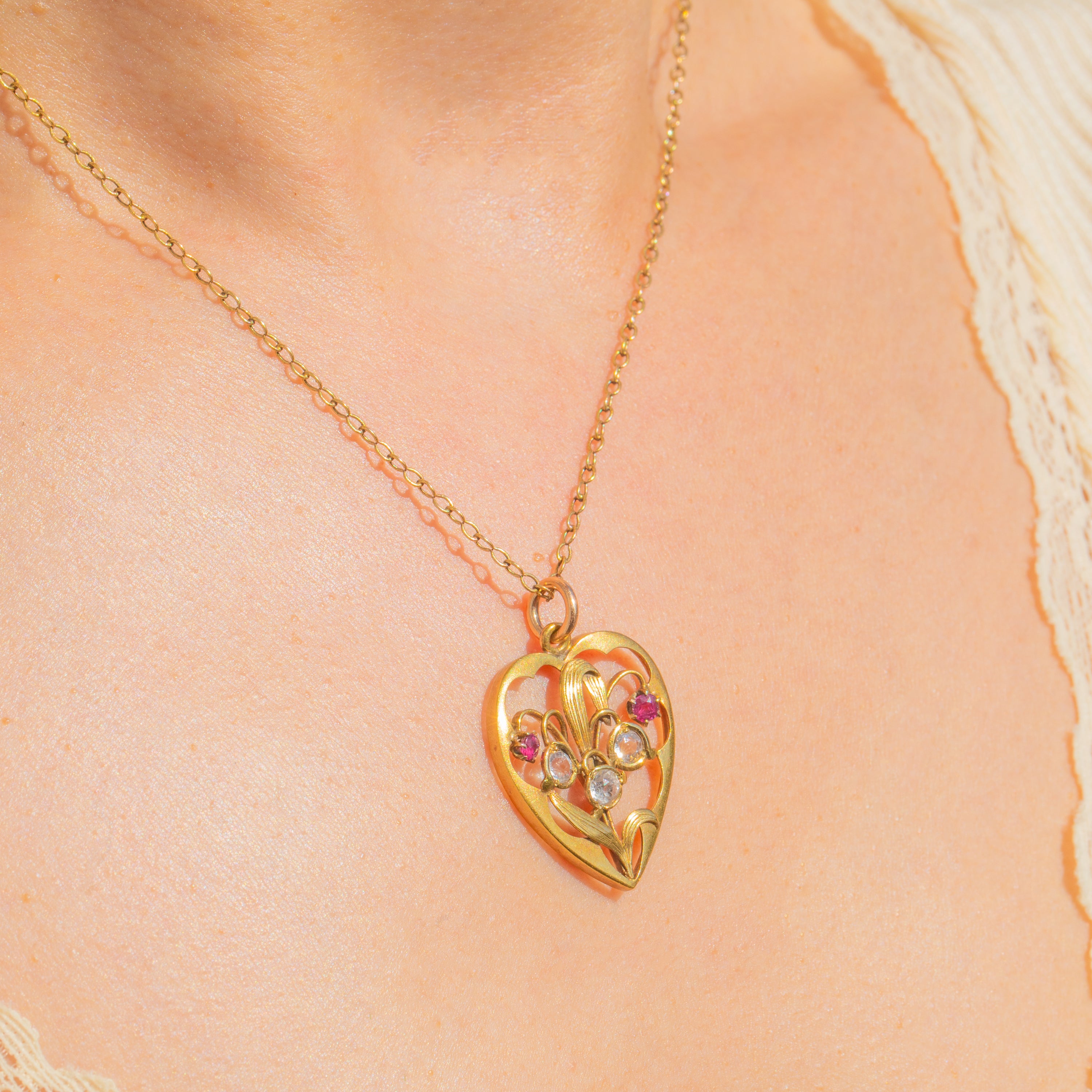 Art Nouveau Anhänger aus 15ct Gold mit Spinell in Herzform