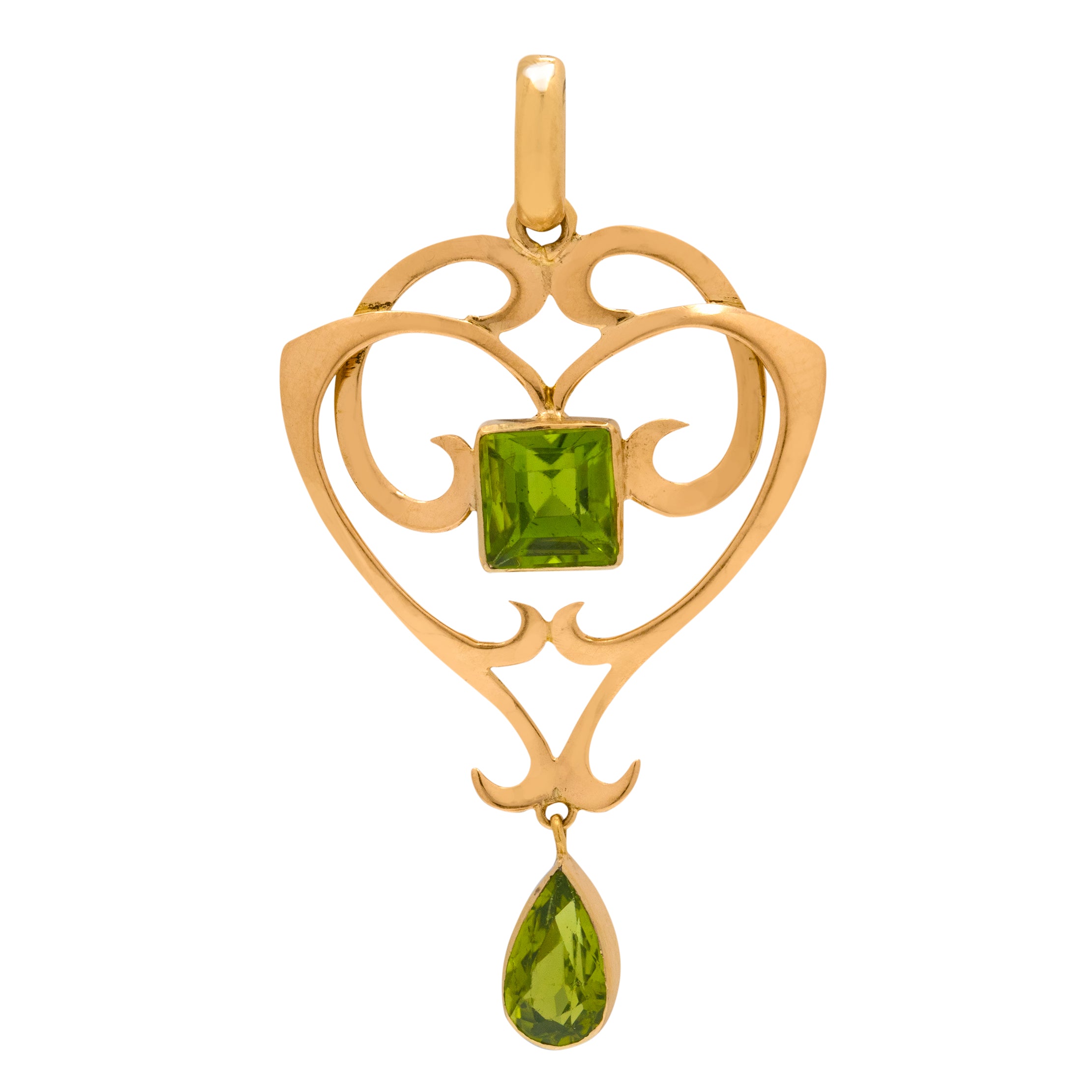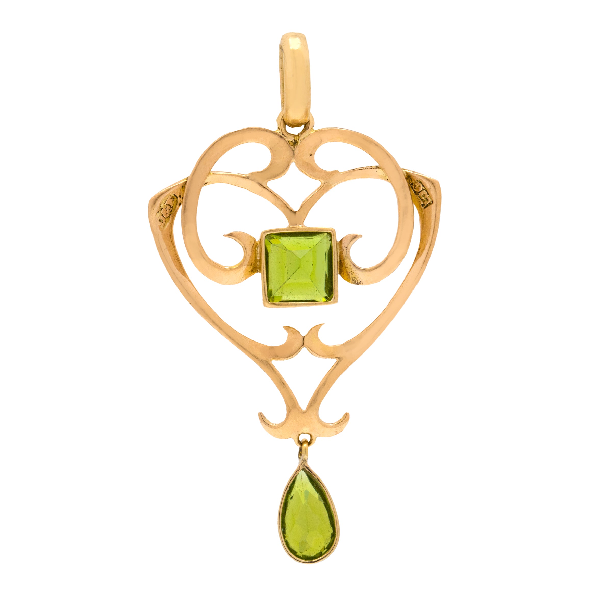 Art Nouveau 9ct Gold Peridot Lavalier Pendant
