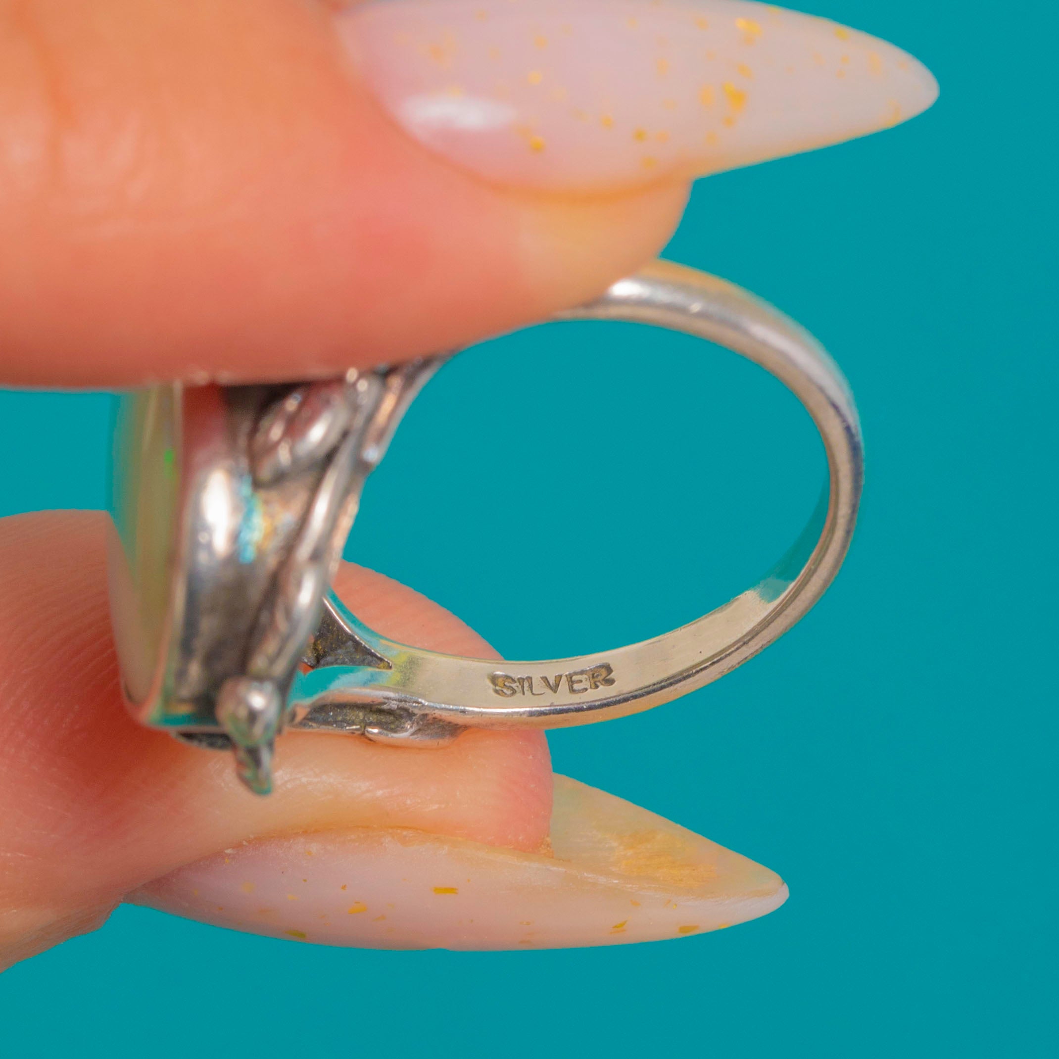 MATERIALS: Tests as Silver, Natural Solid Opal (3.42ct).