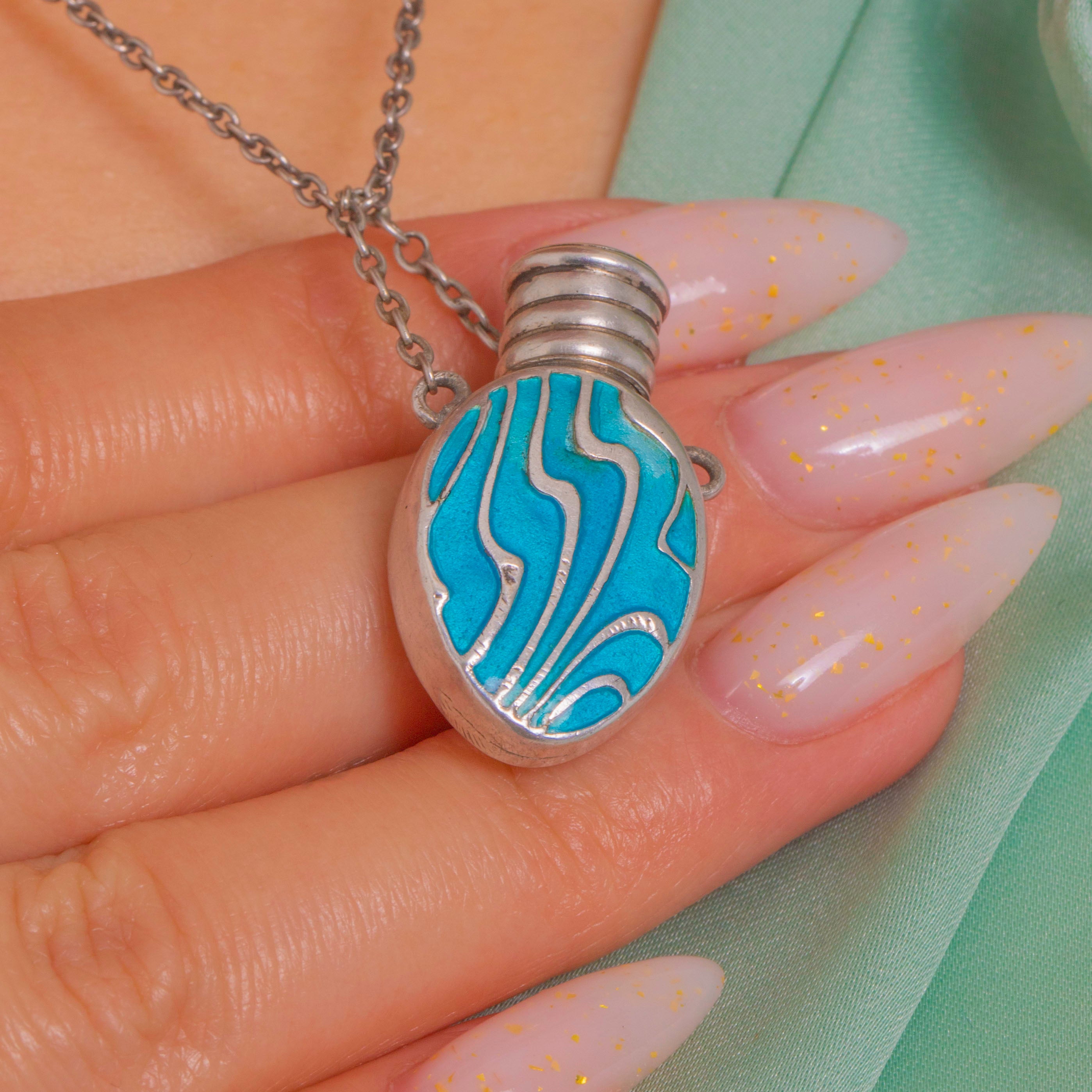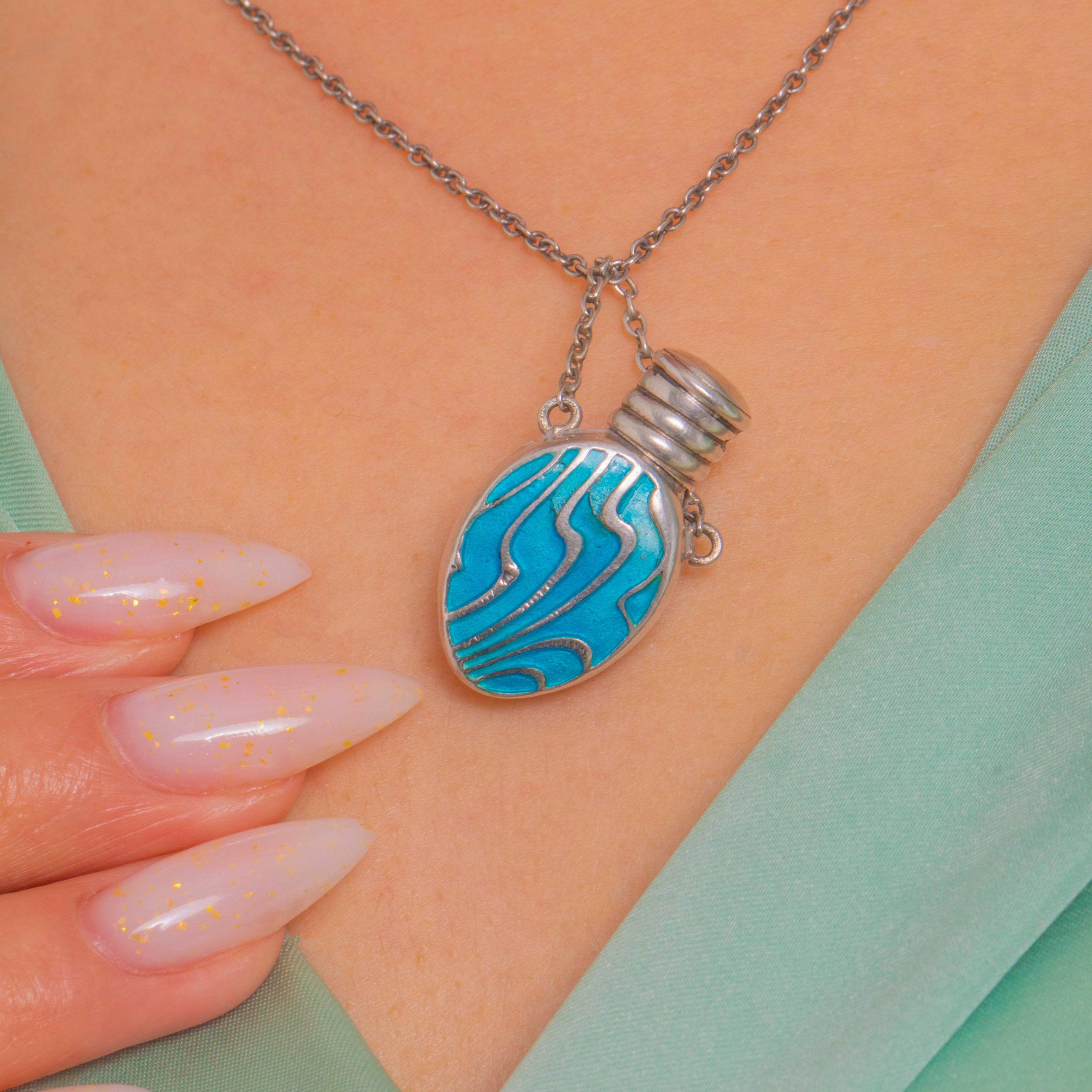 Arts and Crafts Silver Blue Enamel Perfume Bottle Pendant