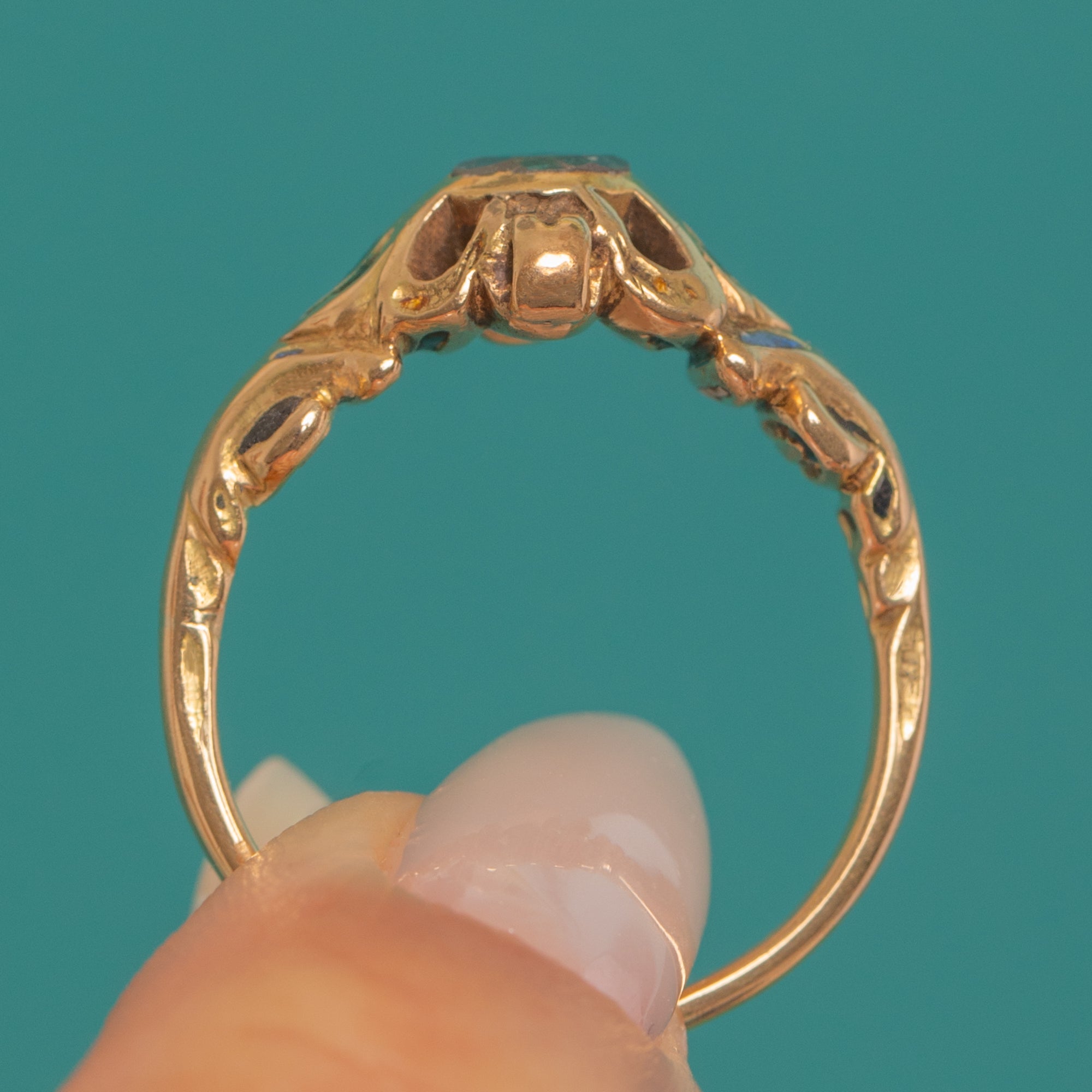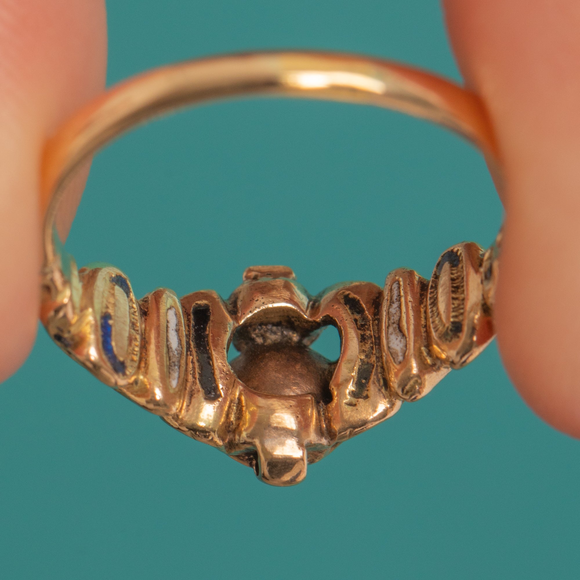 Baroque 18ct Gold Enamel Rose-Cut Diamond Ring, c.1680