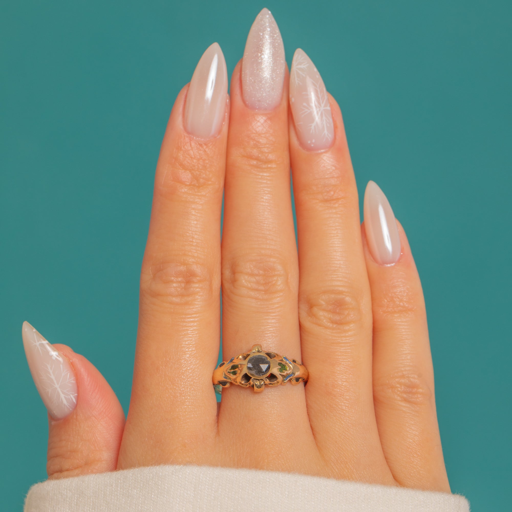 Original Enamel detailing adds an elegant flourish, combining with the Gold and Diamond to create the drama and opulence for which Baroque jewellery is celebrated. Likely of Iberian (Spanish) origin, it’s a wonderfully preserved survivor from the 17th century—refined, romantic and richly characterful on the hand.