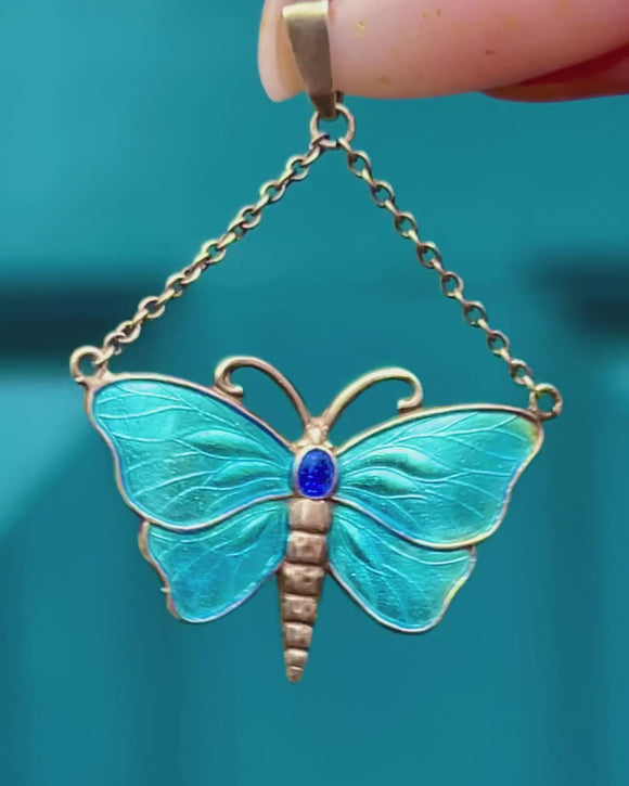 Charles Horner Sterling Silver Blue Enamel Butterfly Pendant c.1920