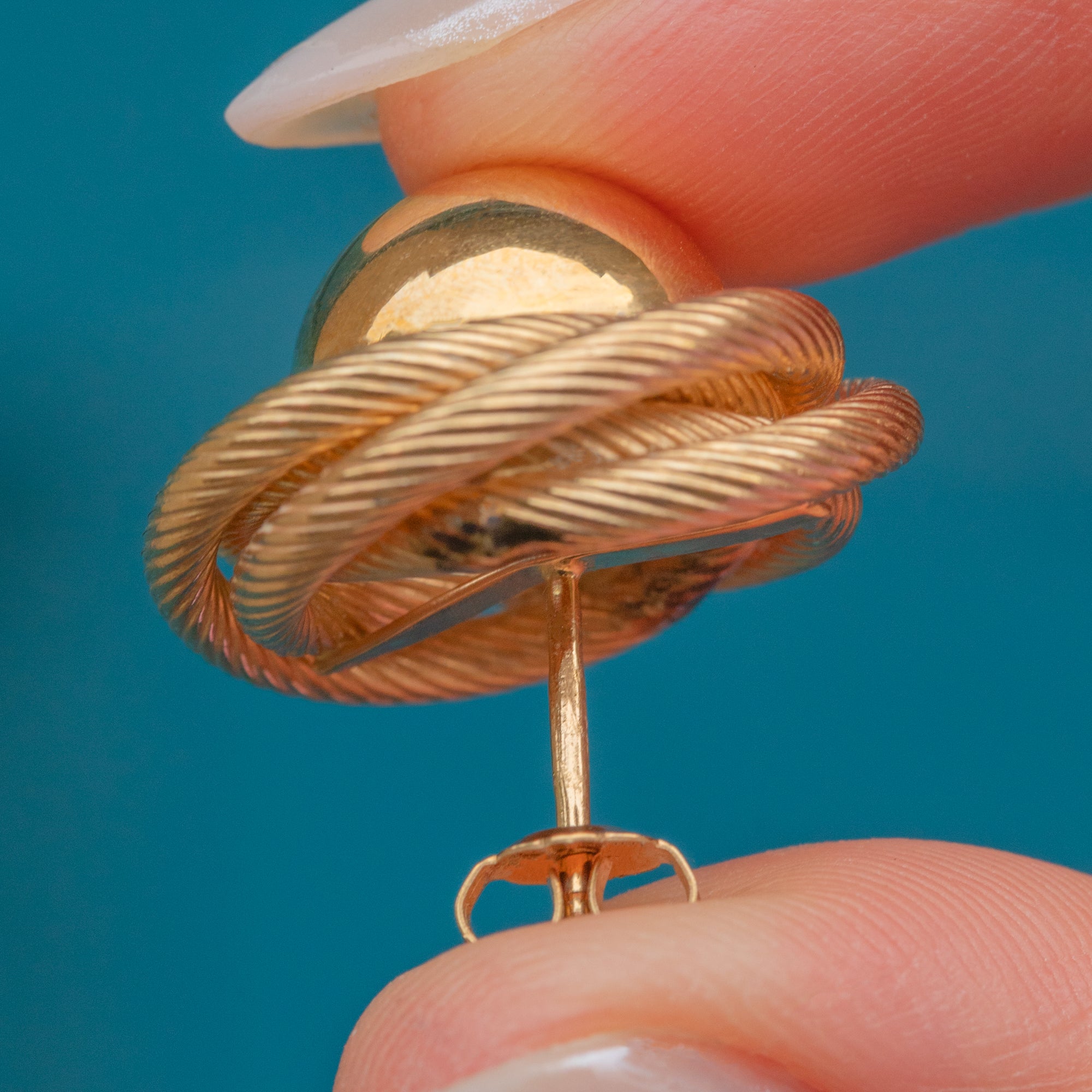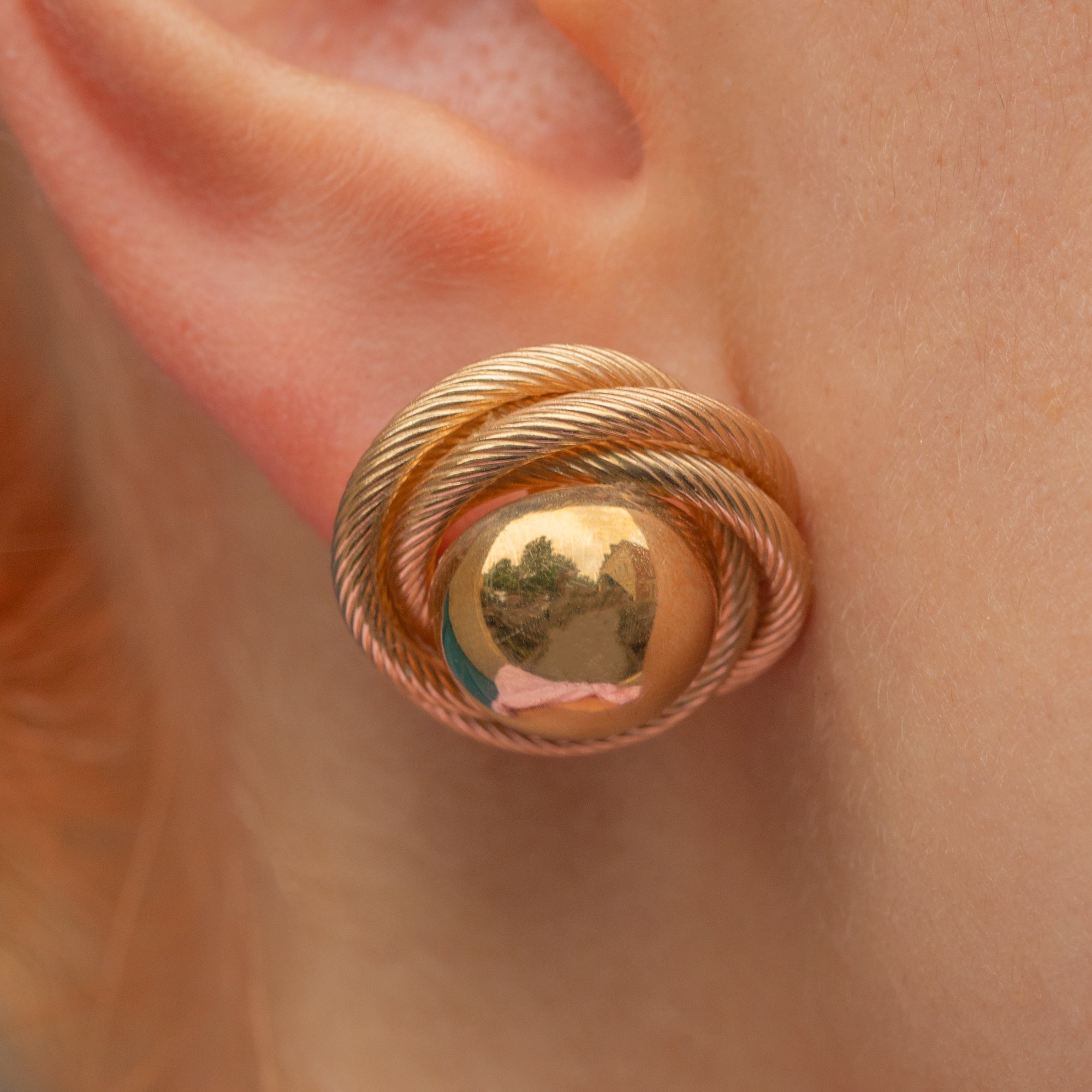 At the heart of each knot sits a gleaming, reflective Gold orb, adding an elegant finishing touch. Their chunky size gives them a striking, sculptural presence on the ear, so much so you won't want to take them off!