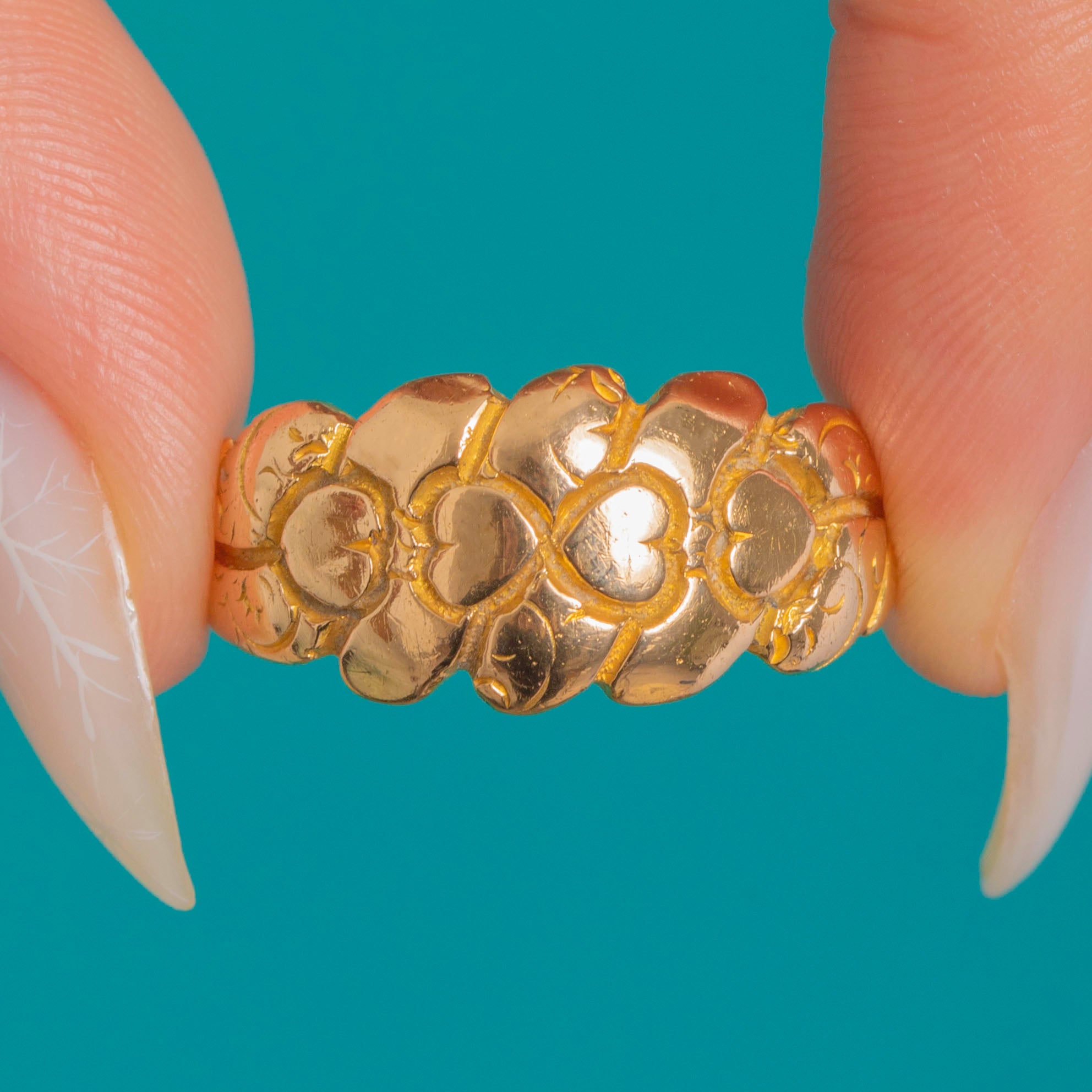 Chunky Antique 18ct Gold Heart Keeper Ring c.1912