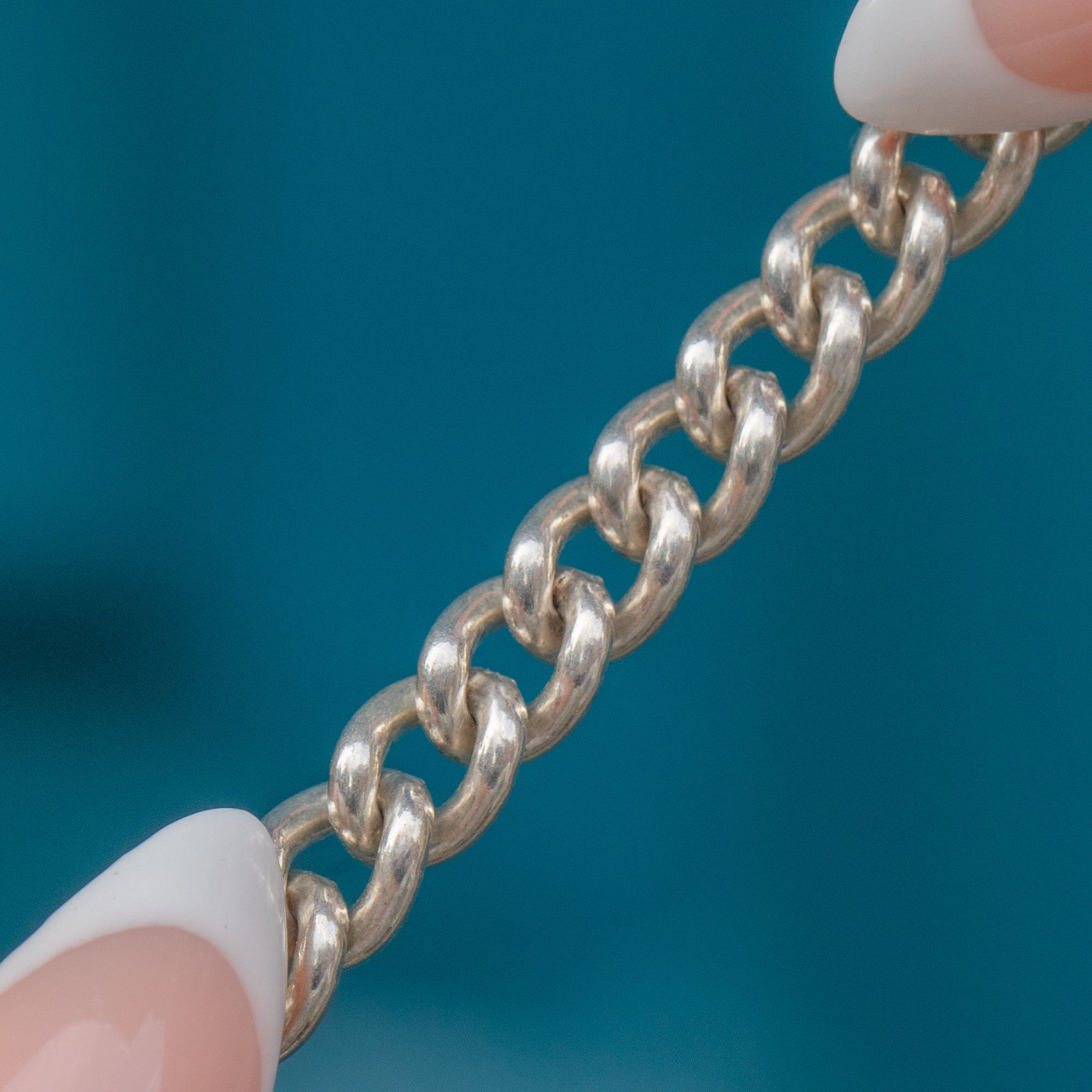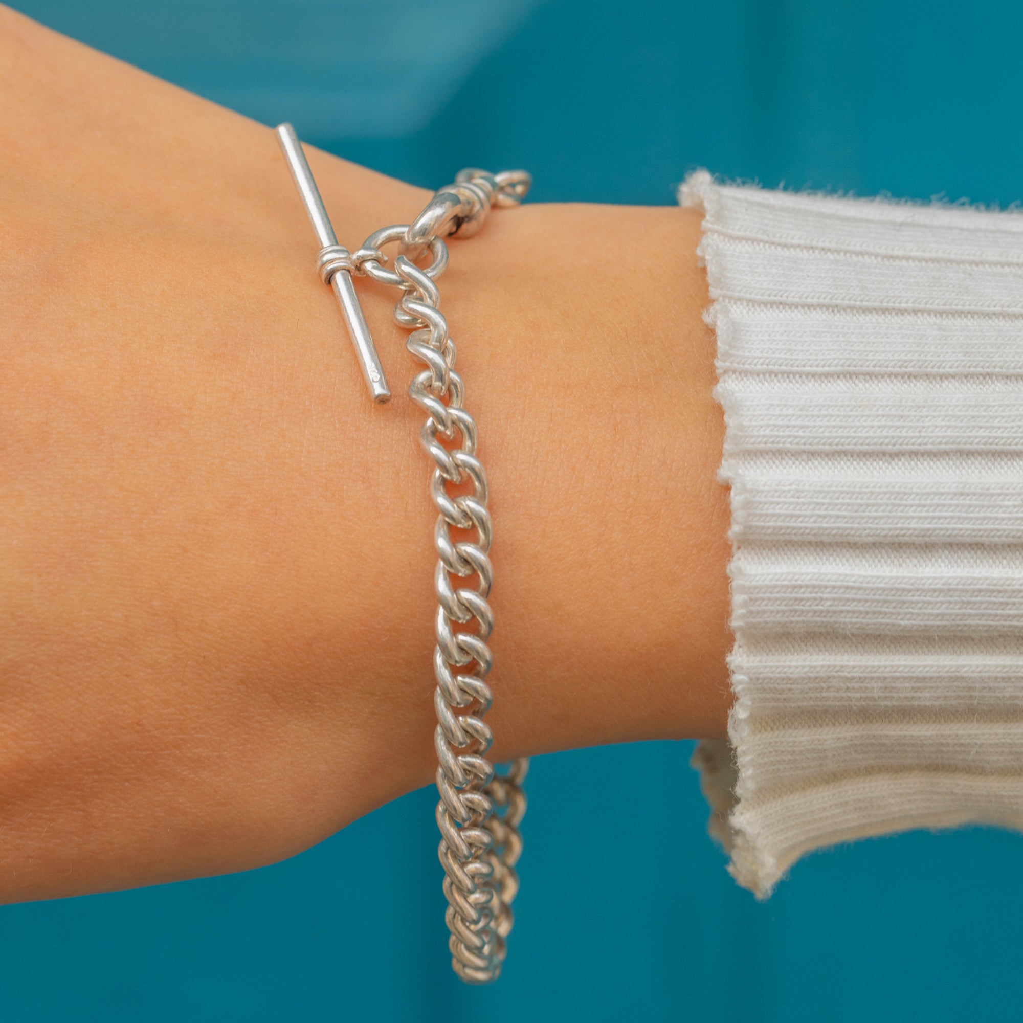 This Pre-Loved Sterling Silver curb link bracelet features a classic T-bar and dog-clip fastening, giving it a bold yet timeless look. The solid 5mm wide links have a lovely weight on the wrist, while the versatile dog-clip and T-bar clasp lend both practicality and style. A contemporary take on antique watch chains, this bracelet is a perfect everyday staple with a nod to traditional design.