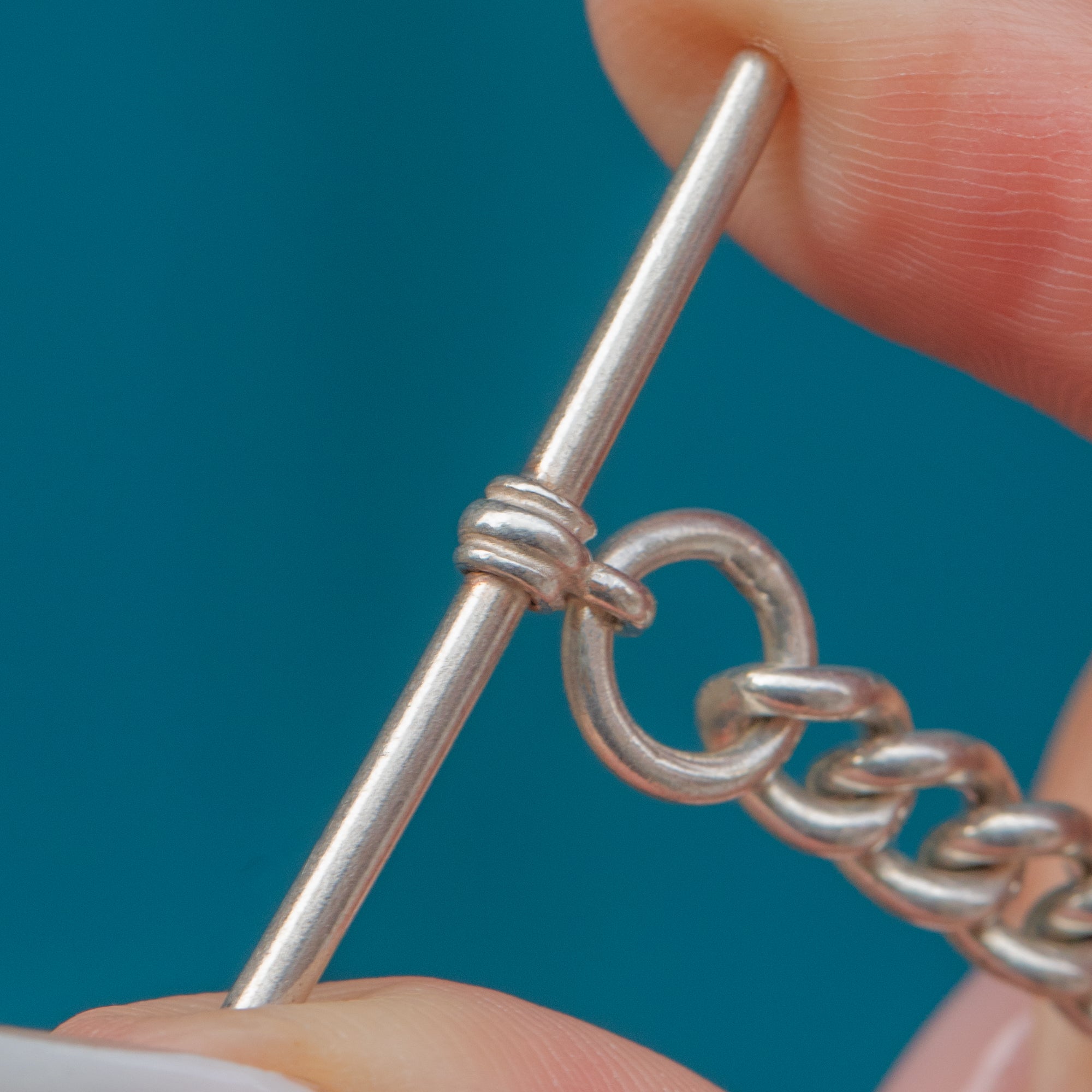EXCELLENT. This Sterling Silver bracelet is in excellent condition, with no damage or repair. The links are strong and well-preserved, the clasp and T-bar are secure, and the Silver retains a bright polished finish.