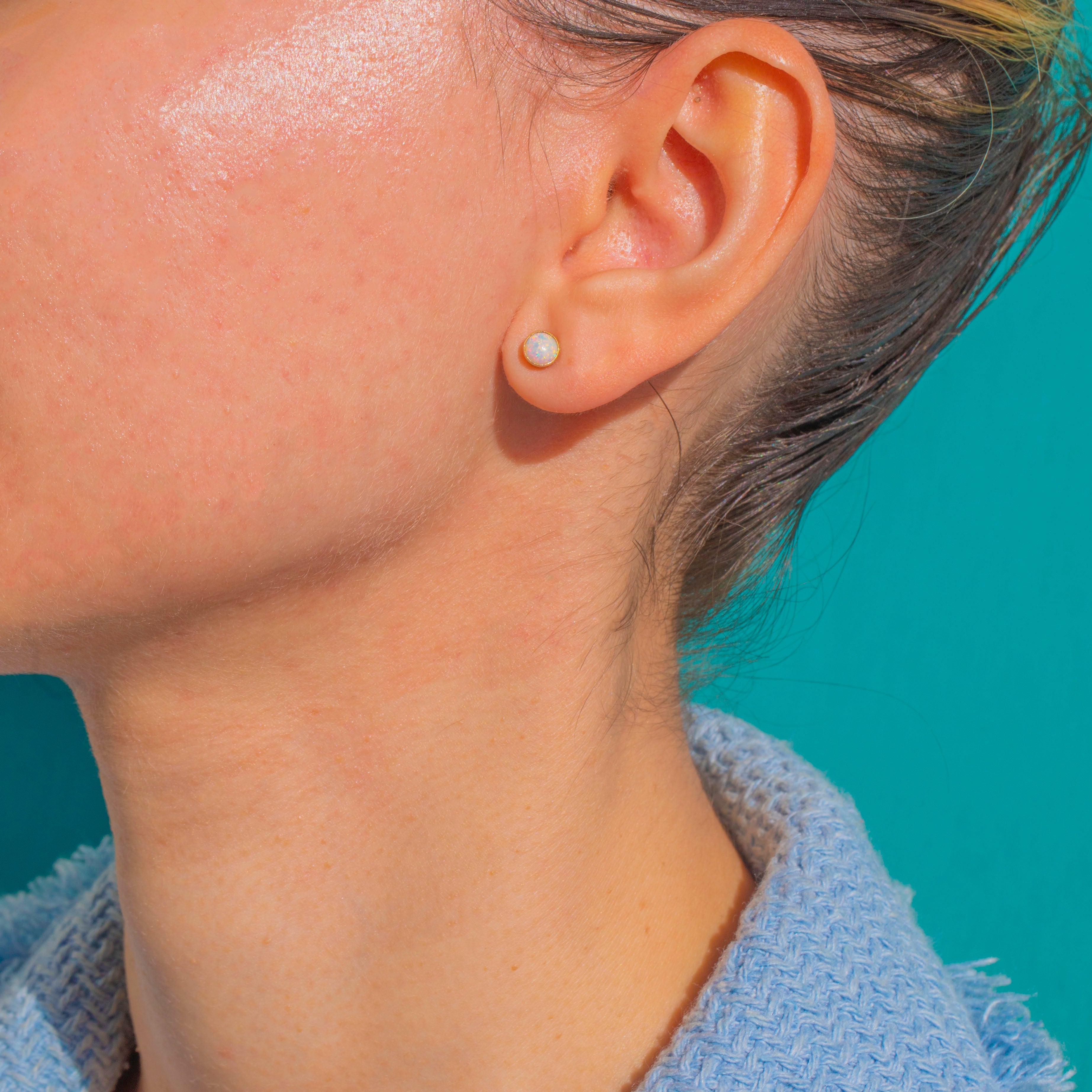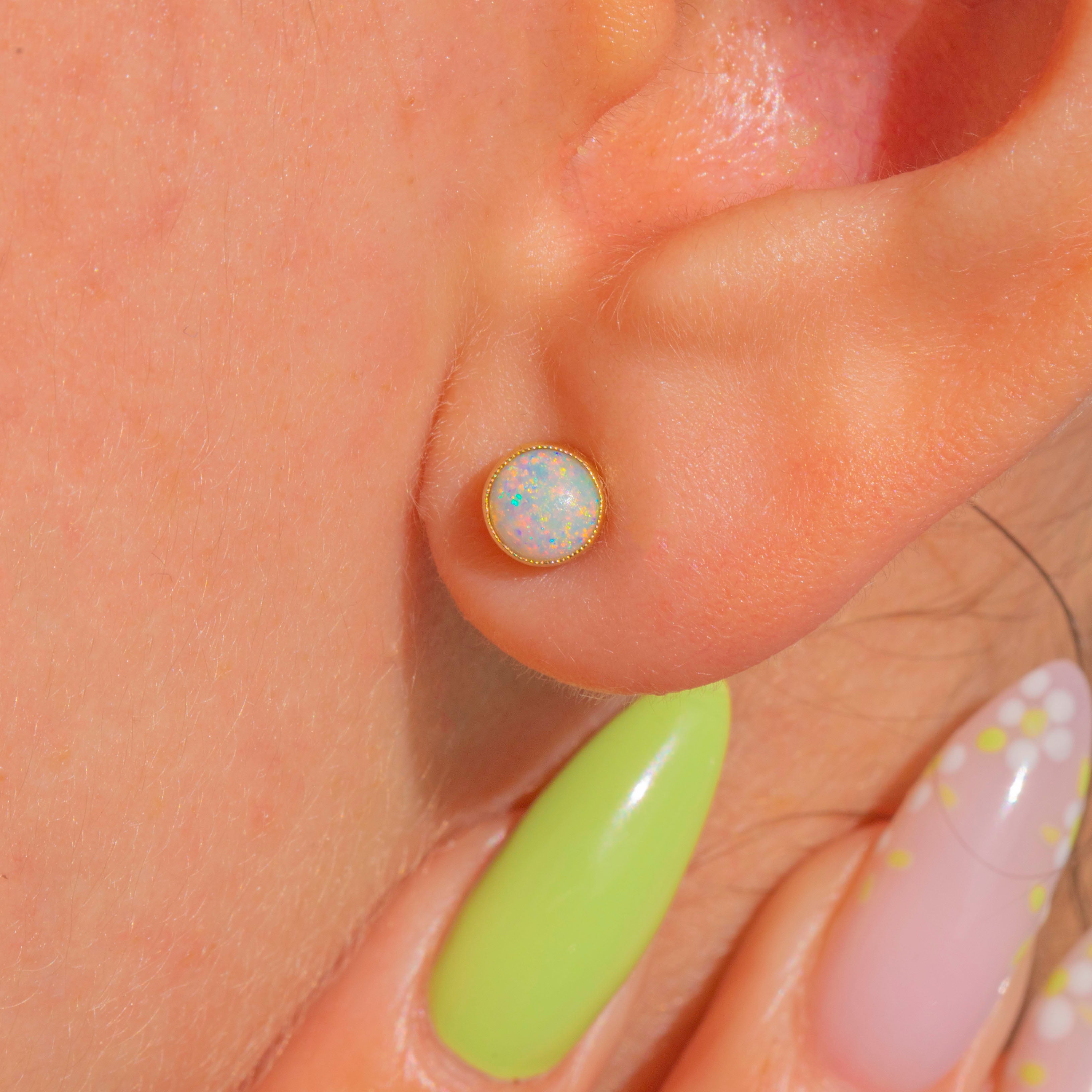 Zarte Ohrstecker aus 18ct Gold mit Opal im Zargenfassungs-Design