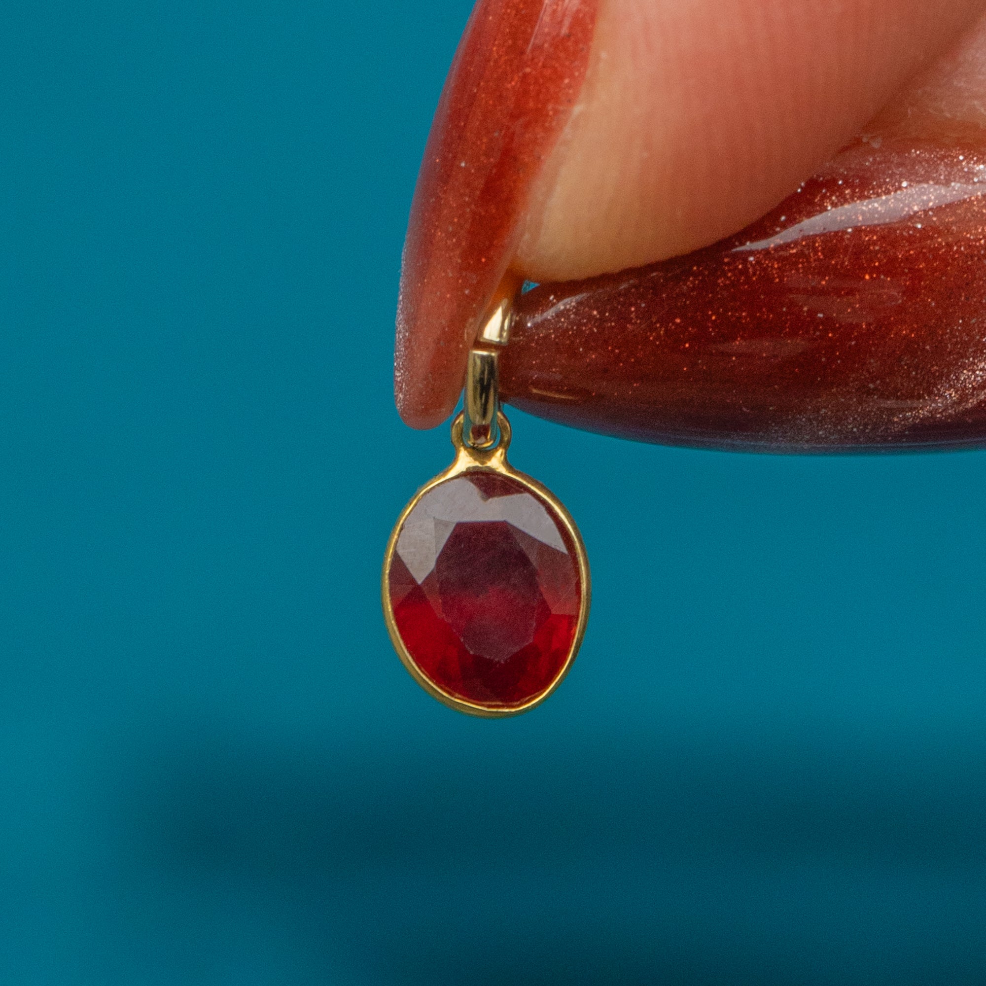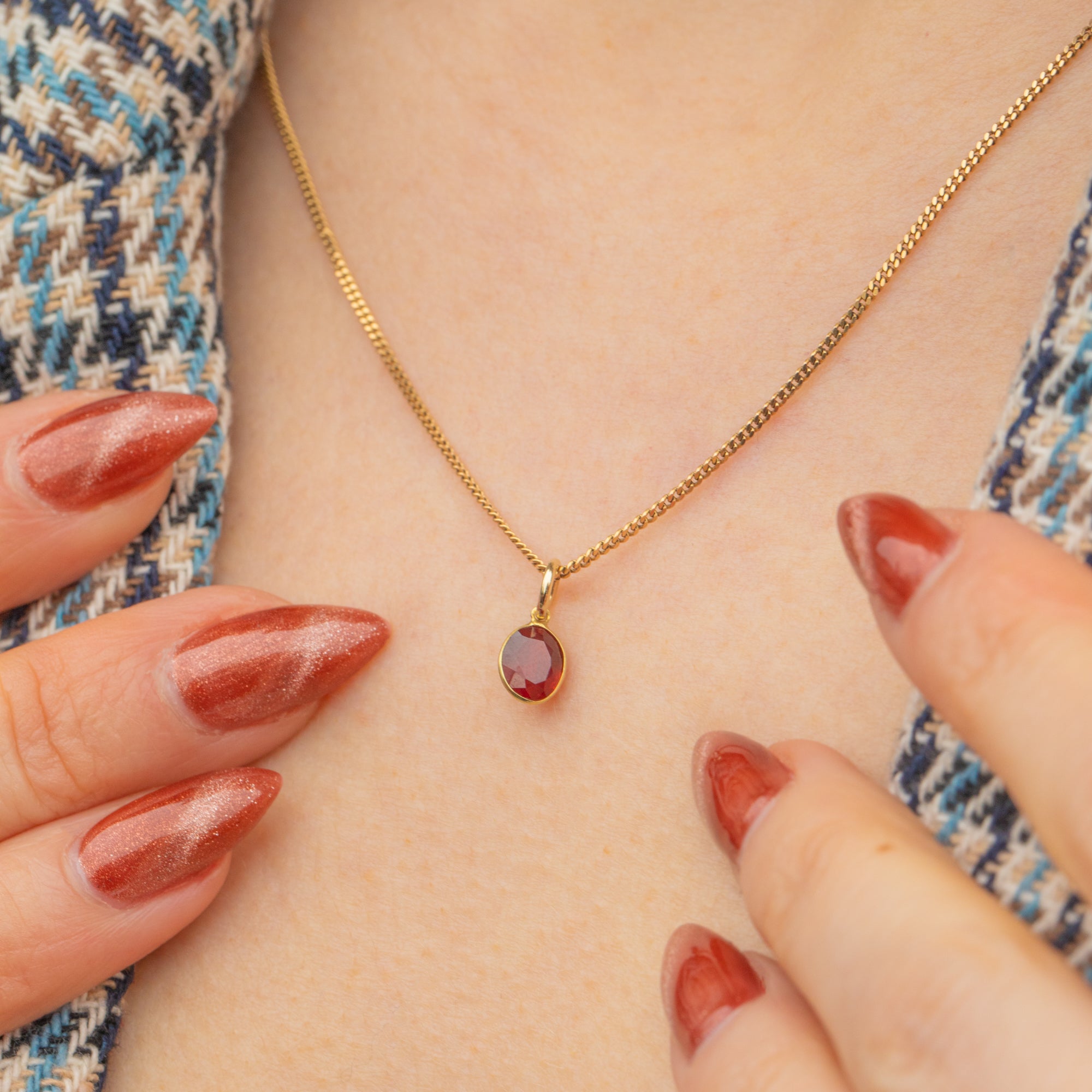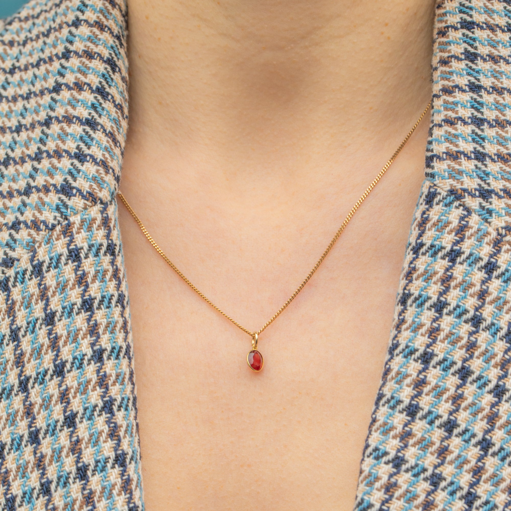 Dainty 18ct Gold Garnet Bezel Set Oval Charm