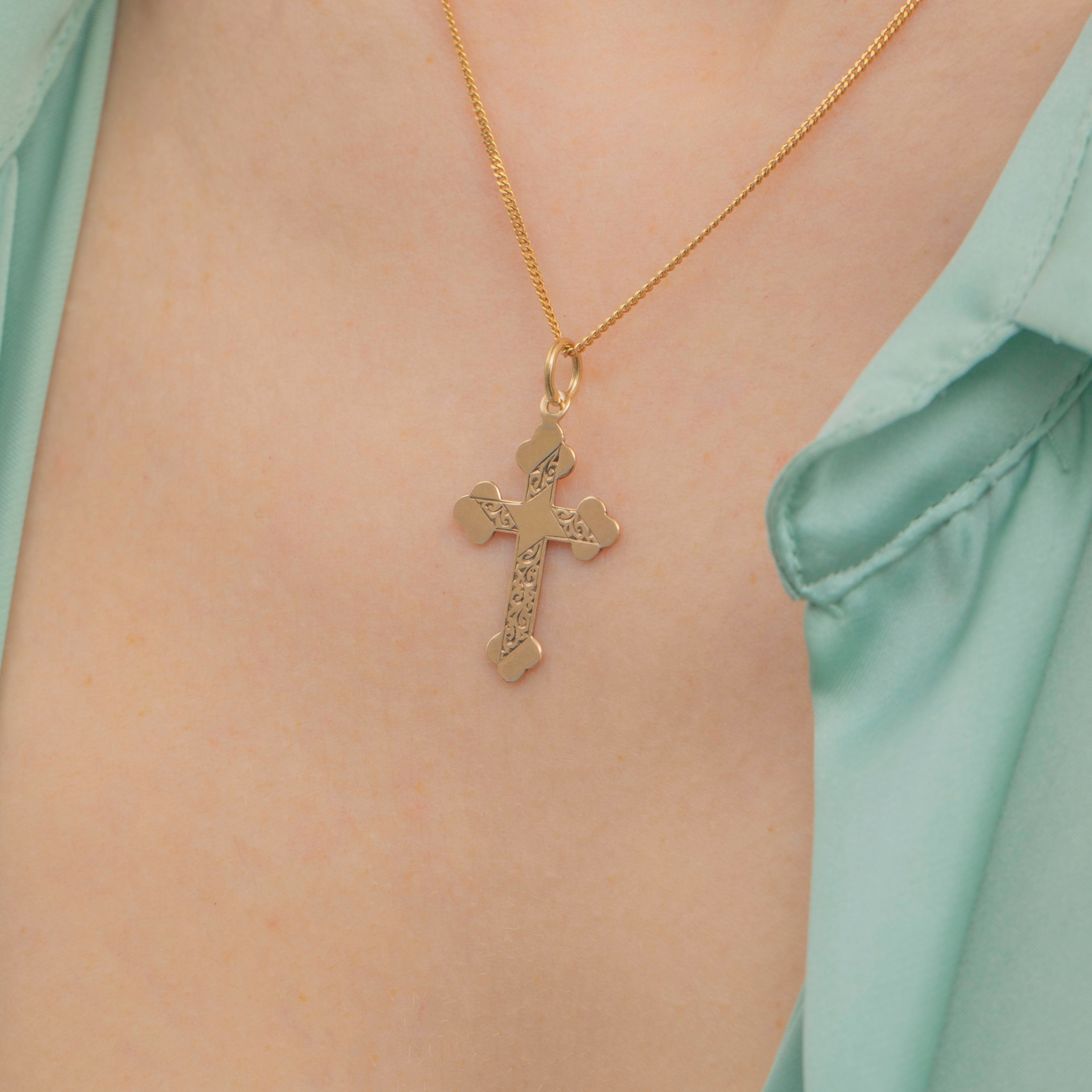 EXCELLENT: This antique 9ct Gold engraved cross pendant is in excellent condition. The Gold is bright and the engraved details have remained crisp with no signs of wear, and is fully hallmarked to 1979. You can enjoy this 9ct Gold cross pendant for years to come!