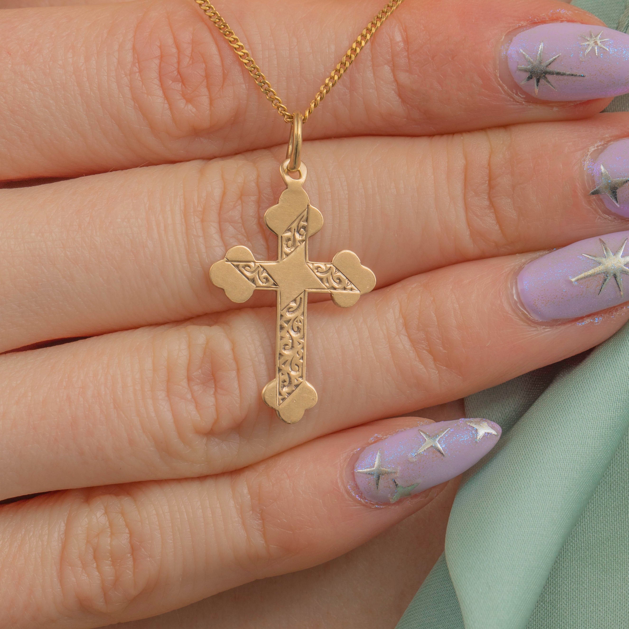 Dainty 9ct Gold Engraved Cross Pendant