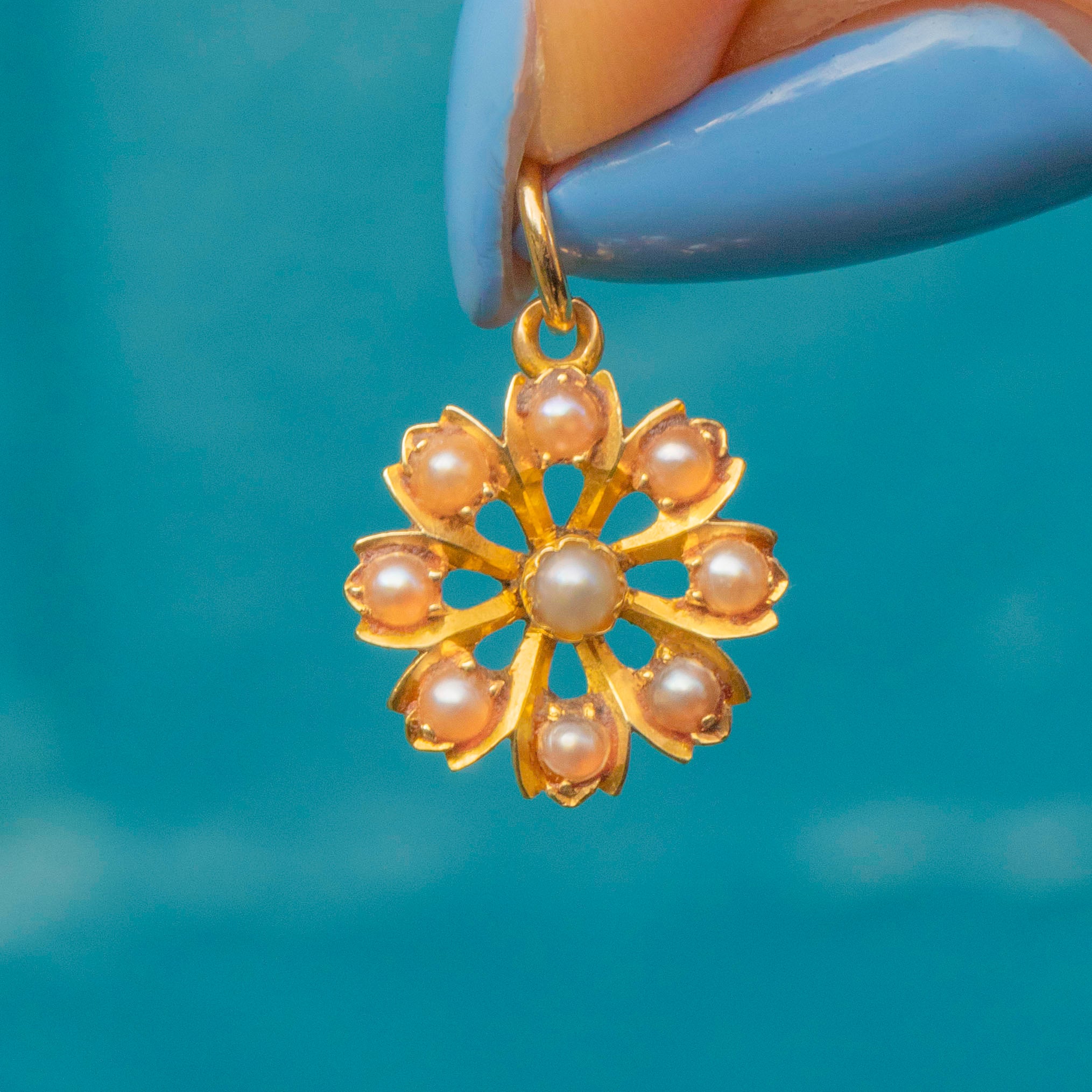Dainty Antique 18ct Gold Pearl Flower Pendant