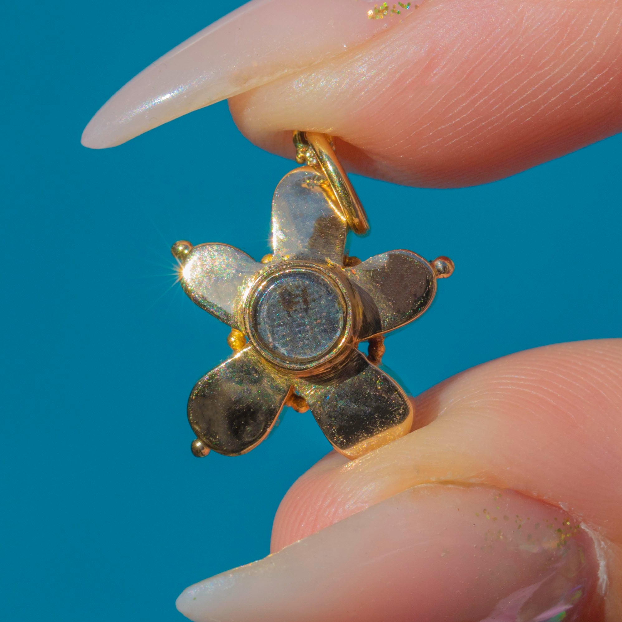 Likely converted from a larger jewel, this petite flower now makes a sweet and wearable charm, full of antique character. Perfect for styling on a bracelet or suspending from a chain, it brings a flash of colour and charm to any antique jewellery collection.