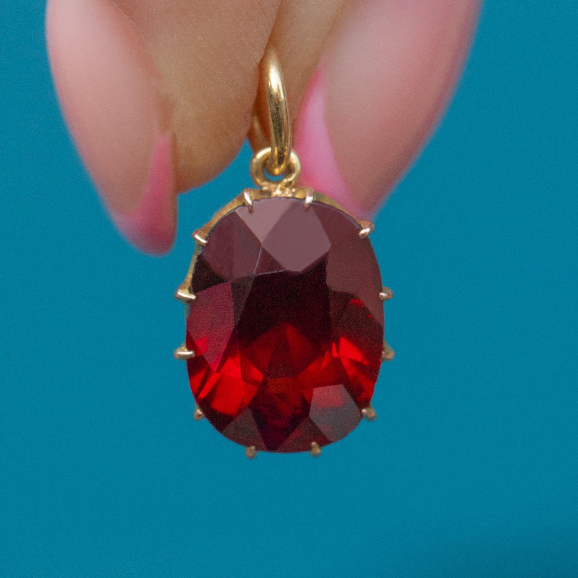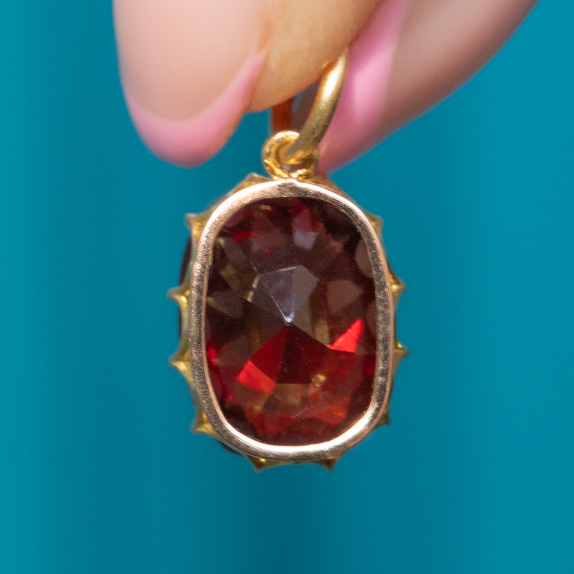 Transport yourself to the Edwardian era with this exquisite antique 14ct Gold Garnet charm! The deep and richly saturated 2.26ct Garnet is accentuated by the warm glow of the Gold, creating a captivating piece that almost looks good enough to eat!