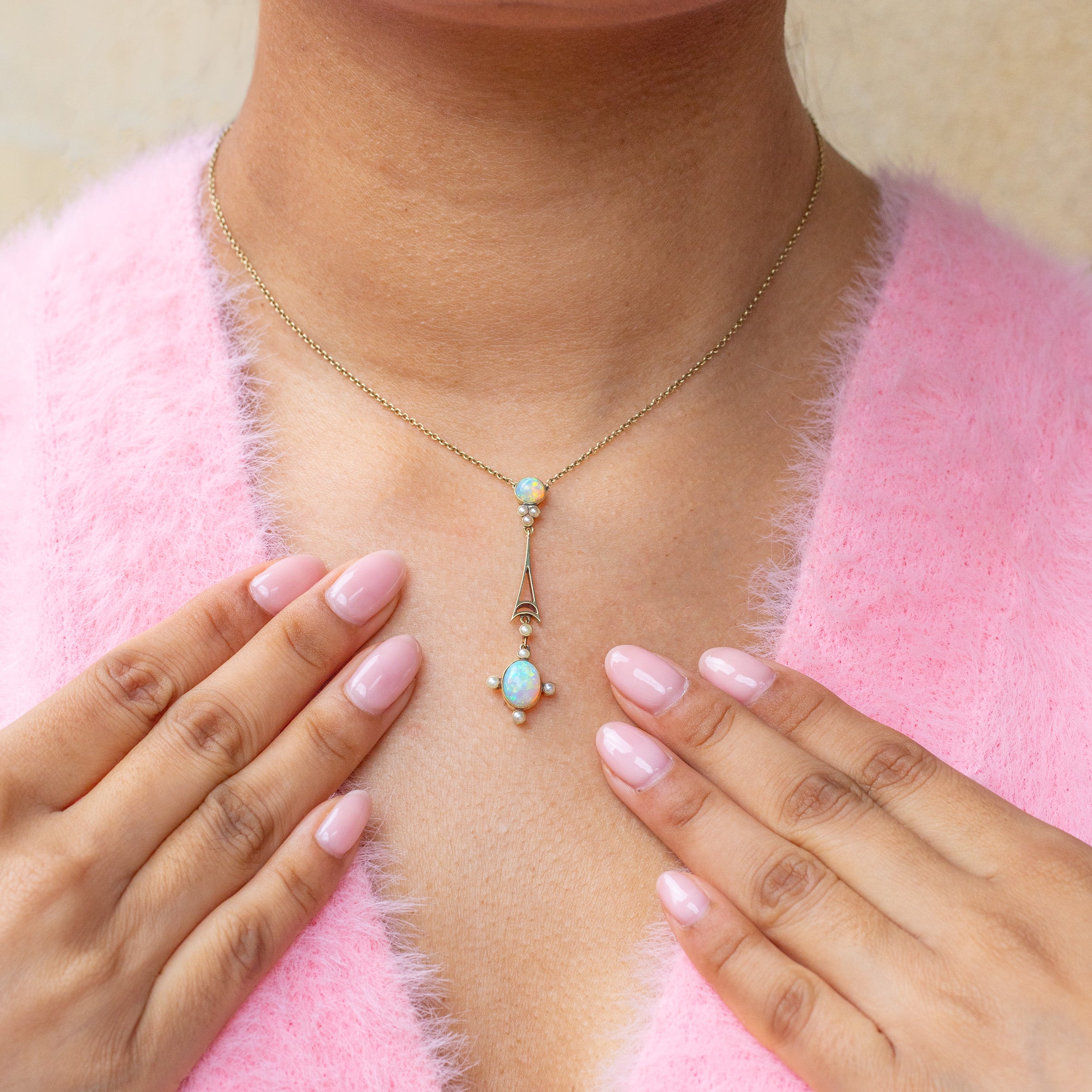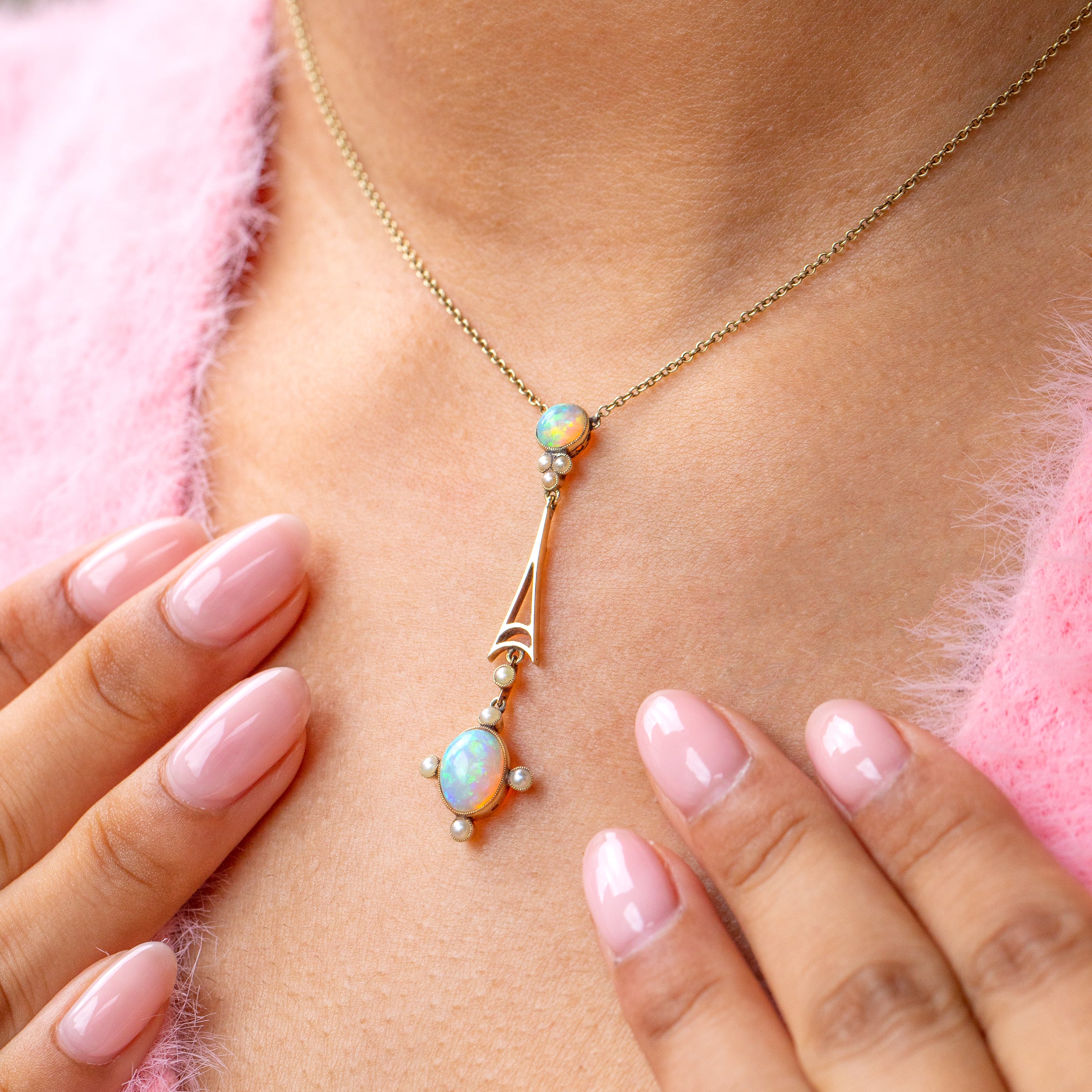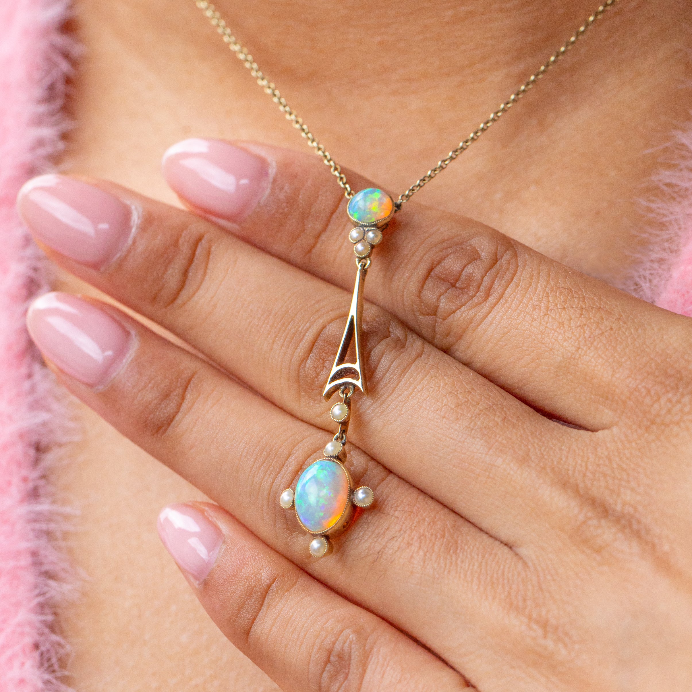 This Edwardian 15ct Gold Opal Pearl integral necklace is a sure way to elevate your antique jewellery collection!