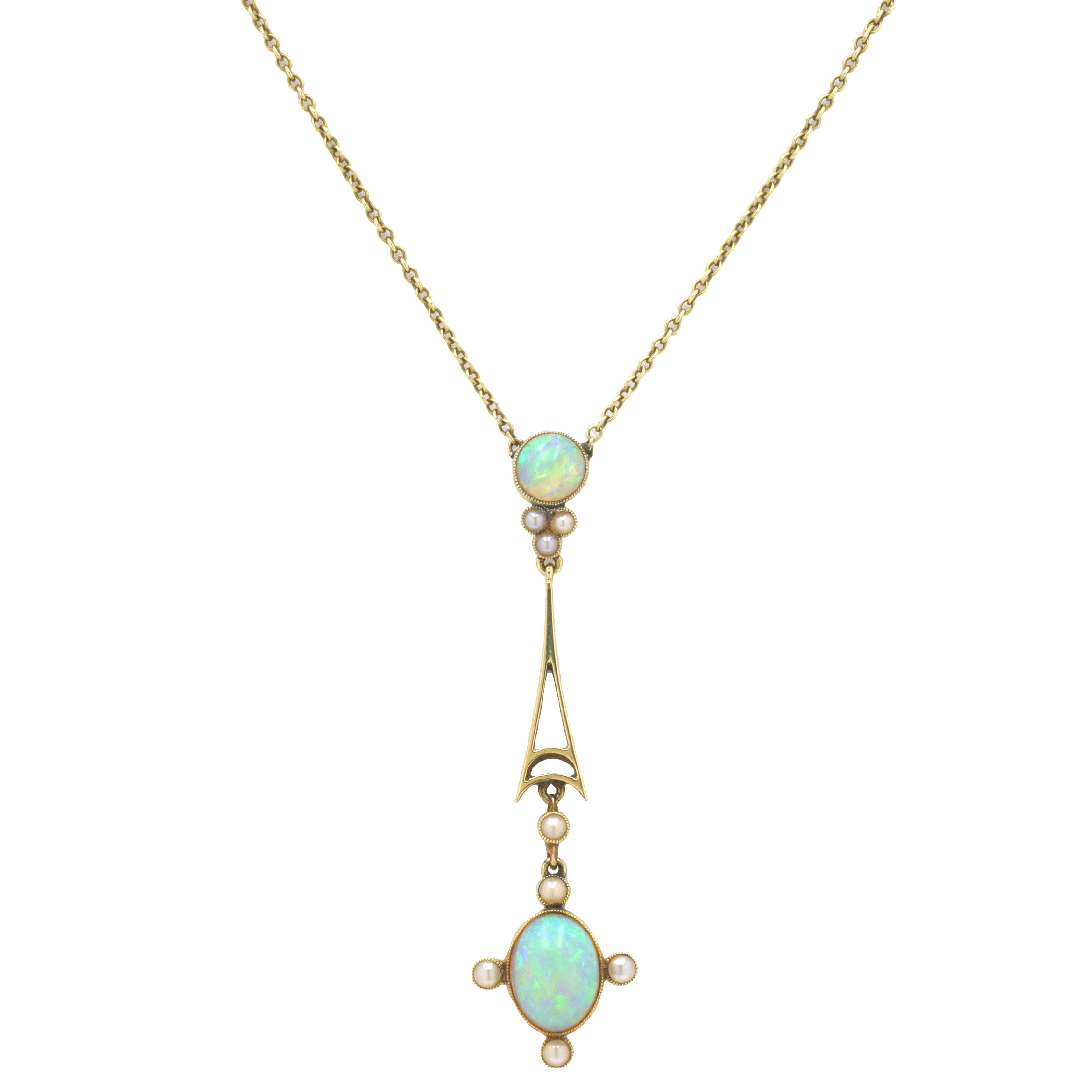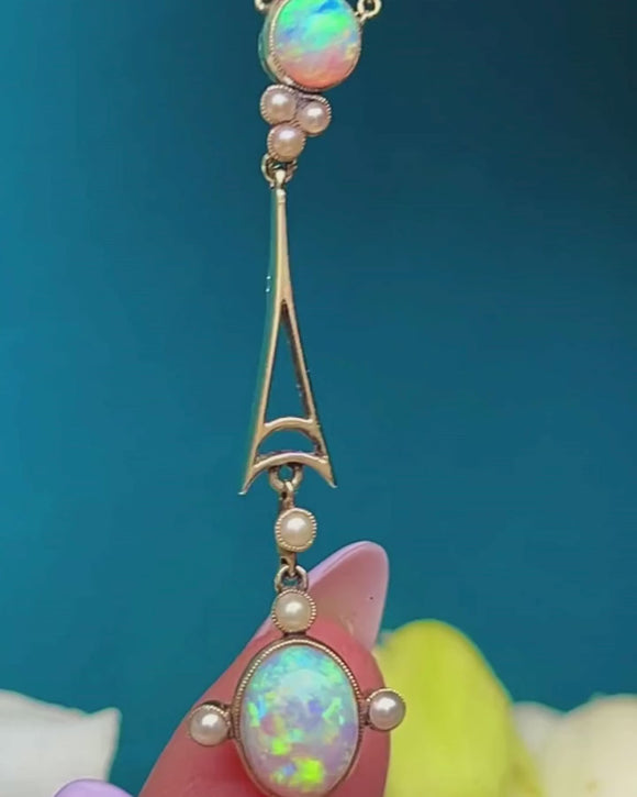 Edwardian 15ct Gold Opal Pearl Integral Necklace, 1.26ct
