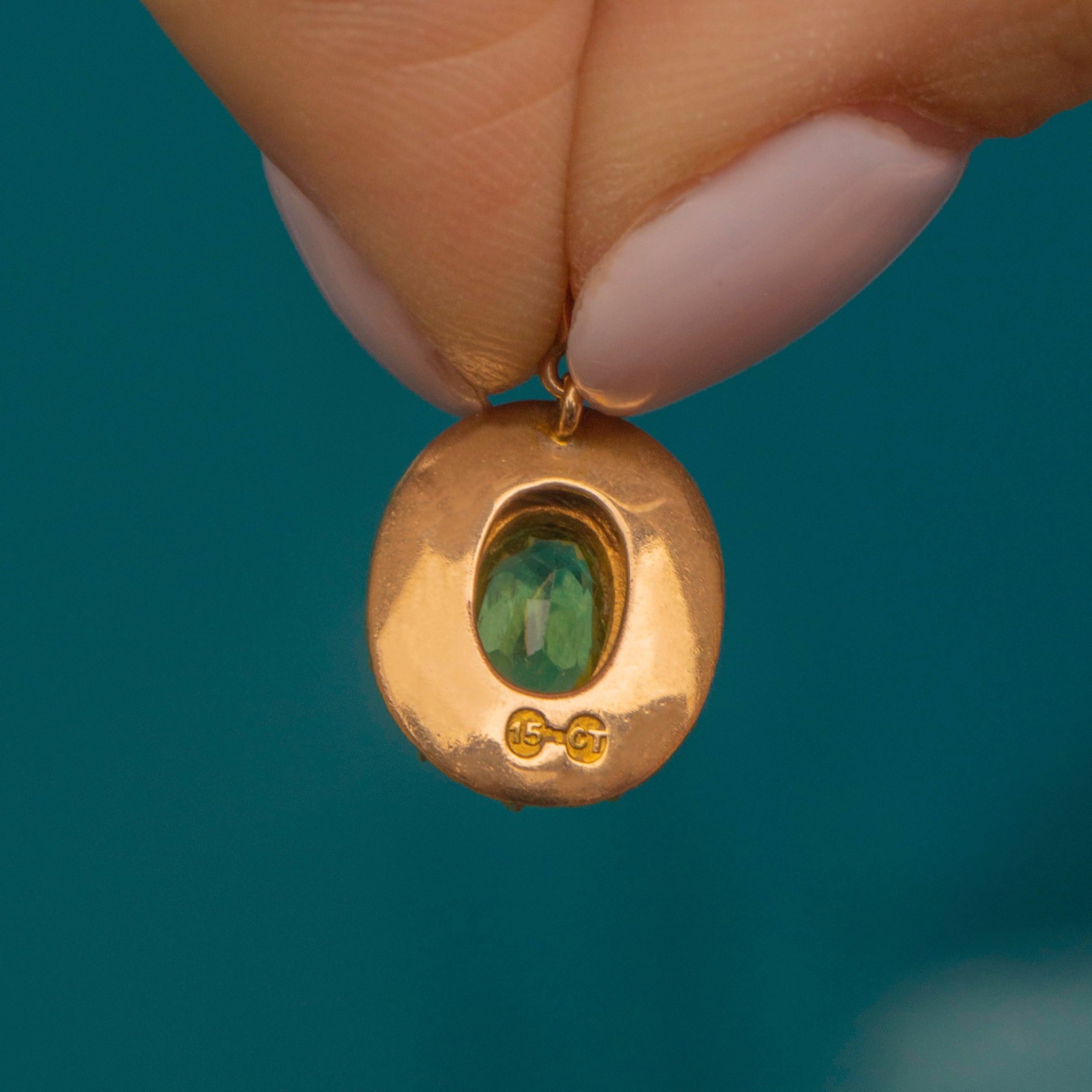 Bound together by a dainty 15ct Gold belcher chain, this antique Peridot necklace brings you elegance in abundance. Whether paired with a simple white tee to add a splash of splendour or accompanying your formal attire, her antique charm will forever be appreciated.