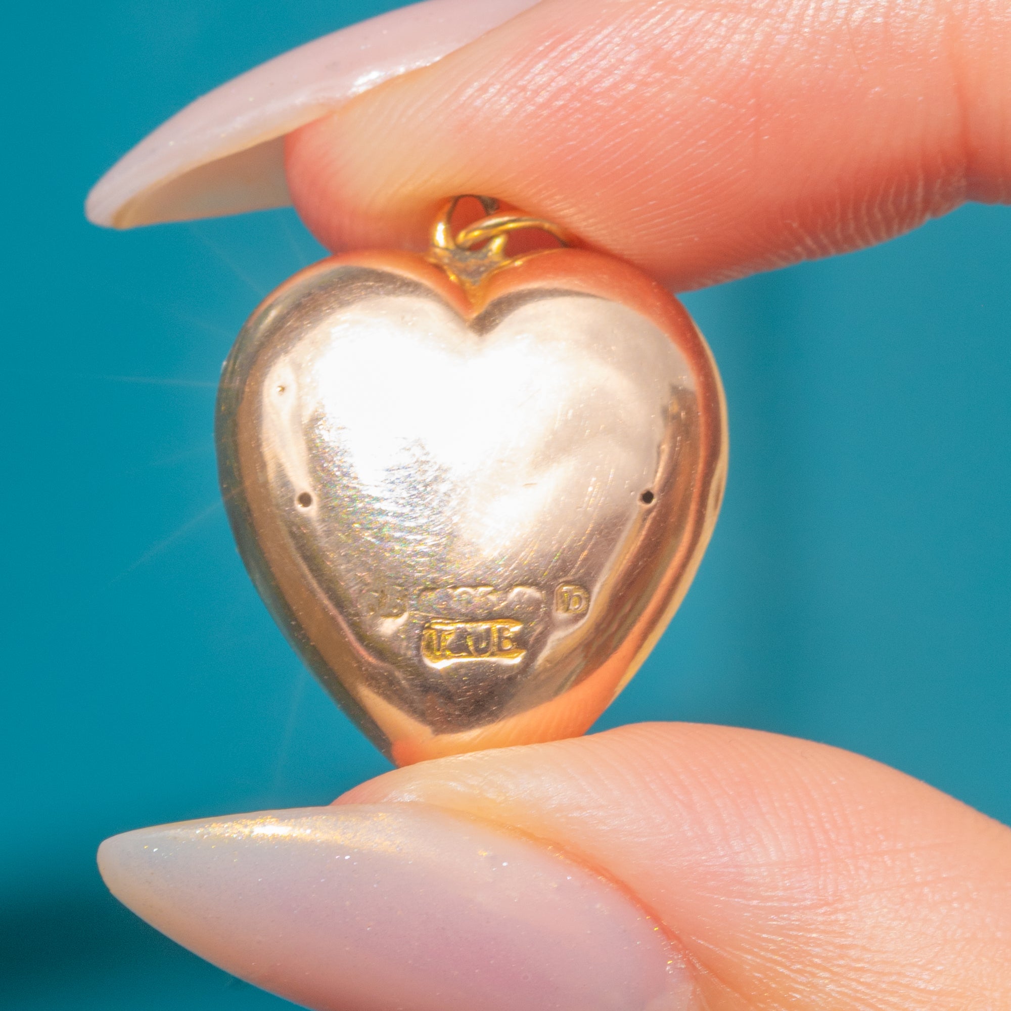 An Edwardian puffy heart pendant in 15ct Gold adorned with Persian Turquoise and Pearls. A classic heart silhouette paired with the period’s favoured gemstones.