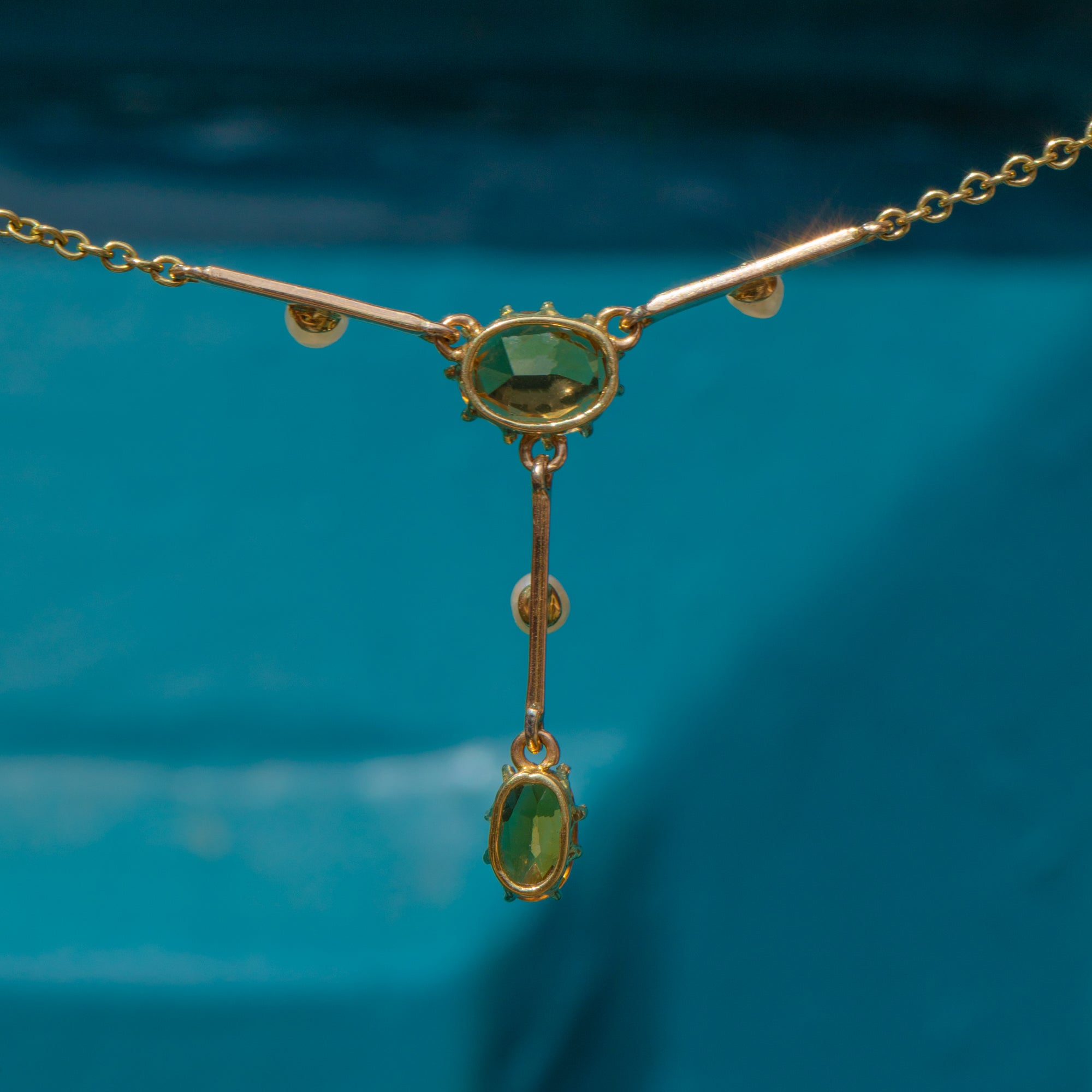 Exuding elegance, this Edwardian 18ct Gold Citrine Pearl drop necklace will bring refinement to your antique jewellery collection! the 17.5" length has been crafted entirely from saturated 18ct Gold, set with a delectable selection of gemstones.