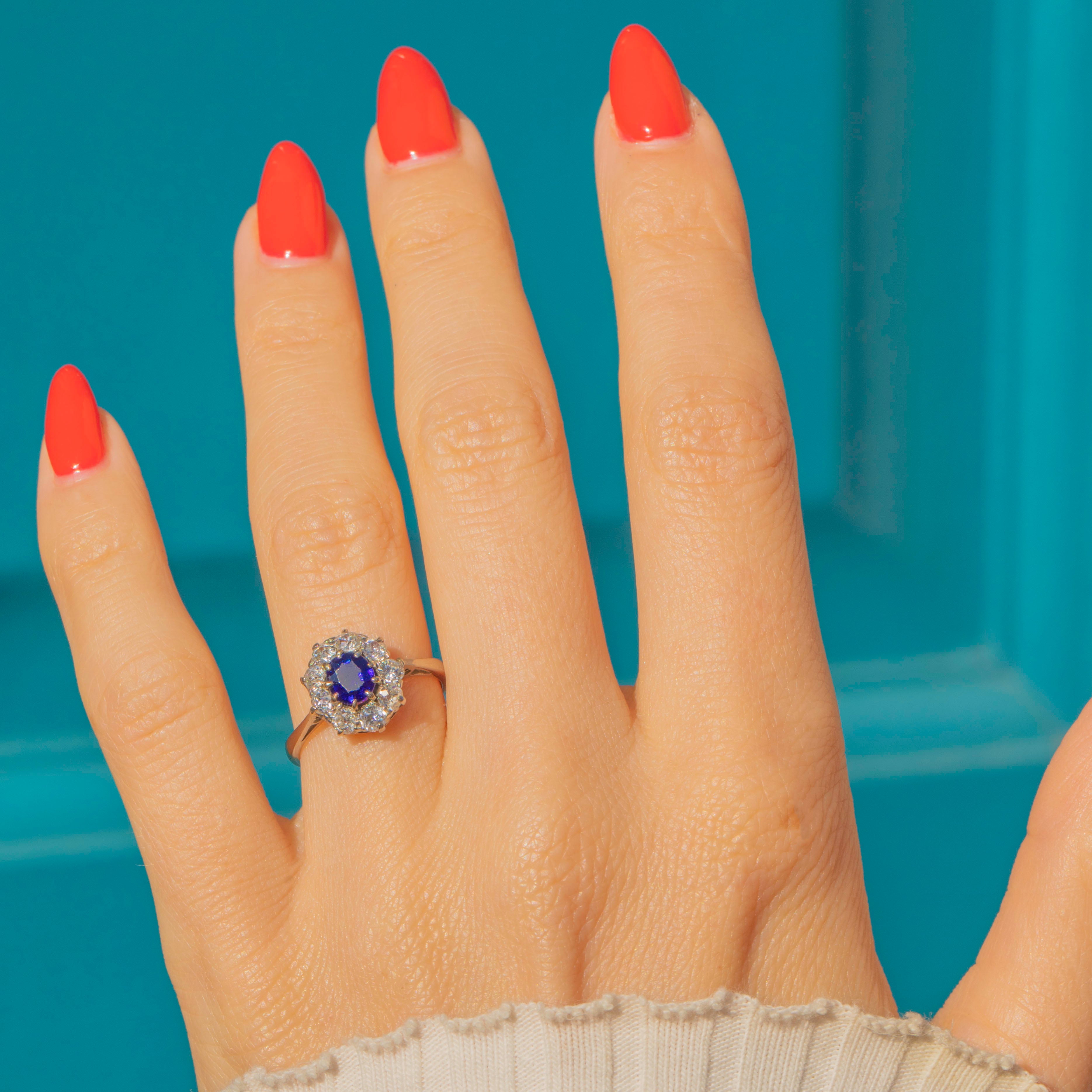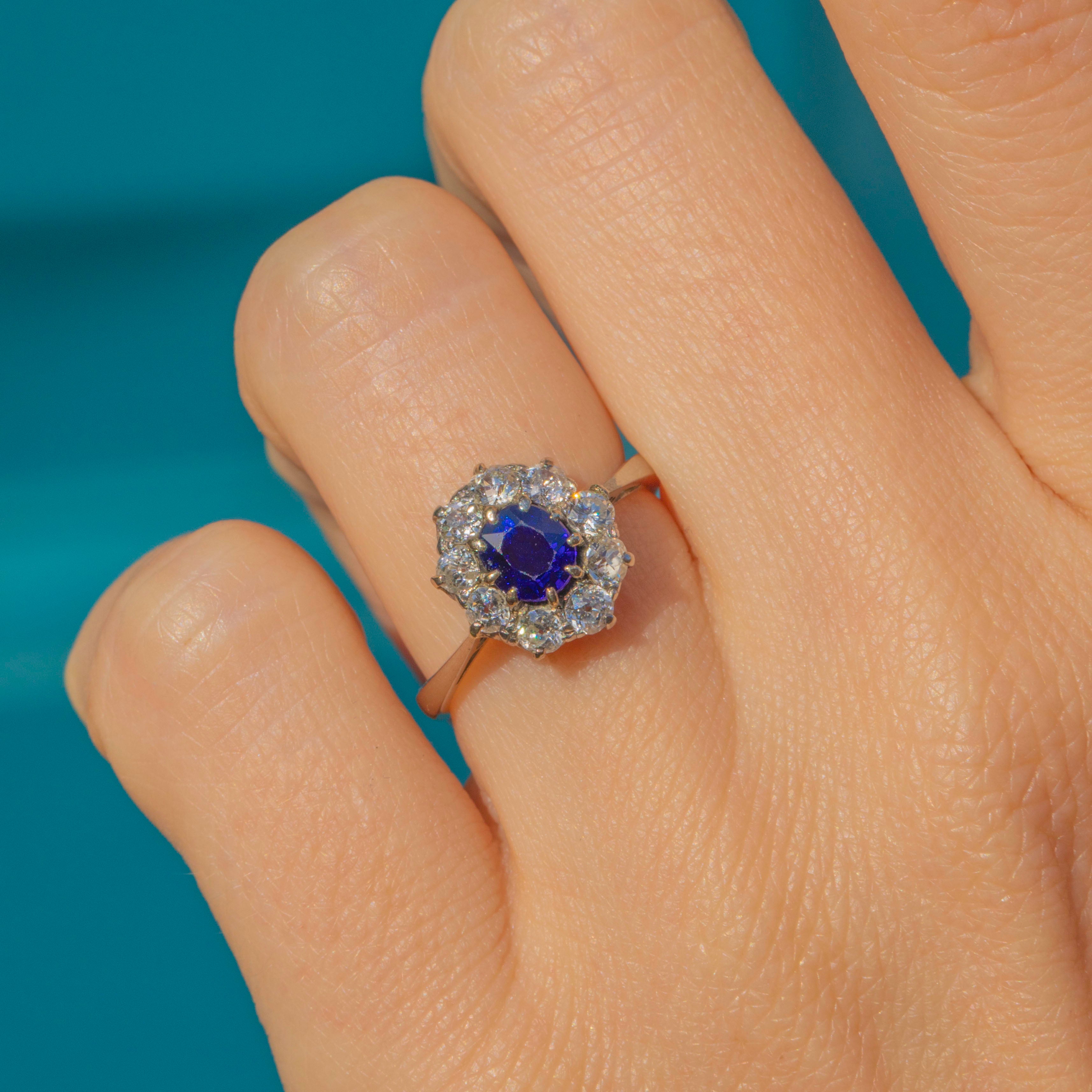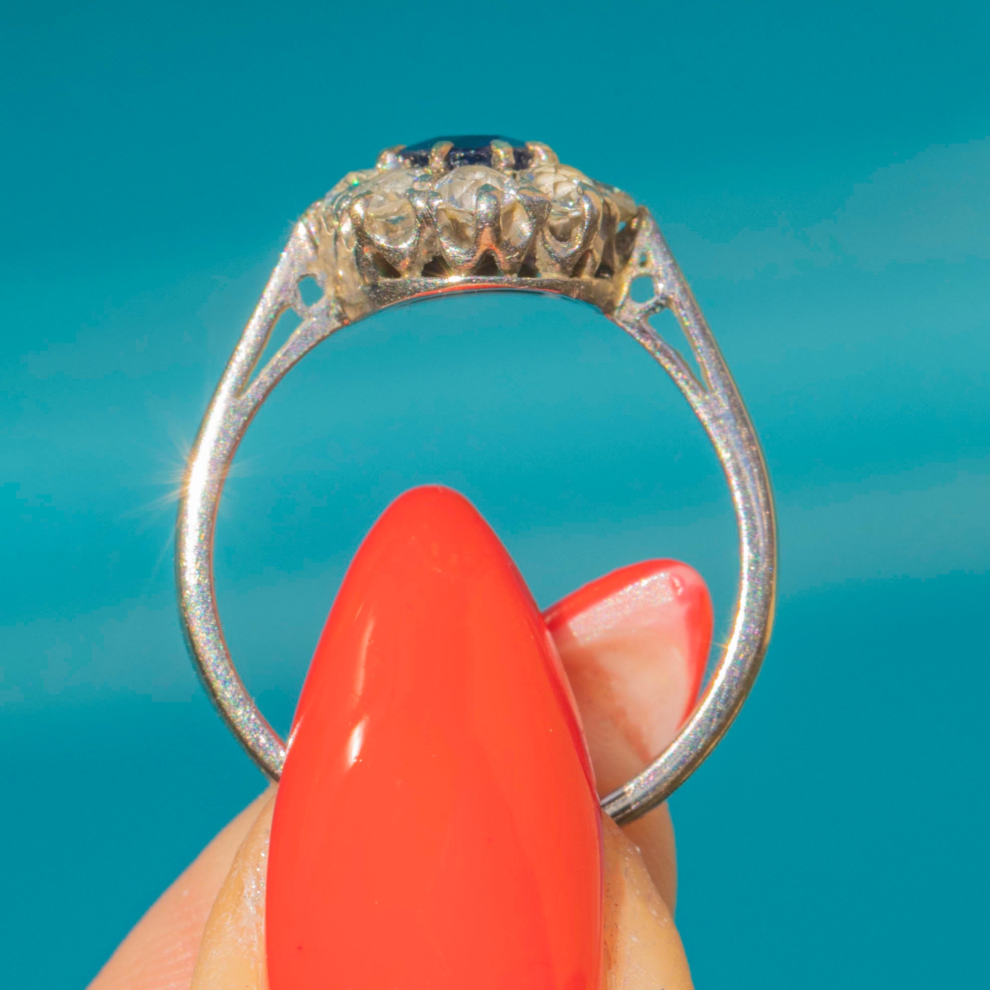 Antique 18ct Gold Royal Blue Natural Sapphire Diamond Cluster Ring Item added