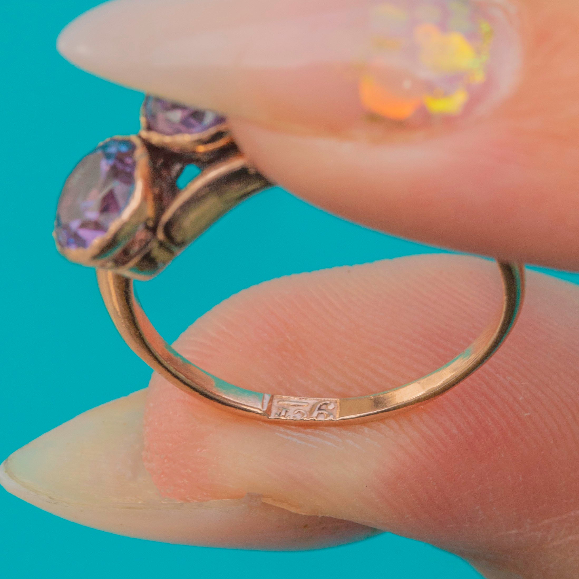 Edwardian 9ct Colour Change Sapphire Toi et Moi Ring c.1915