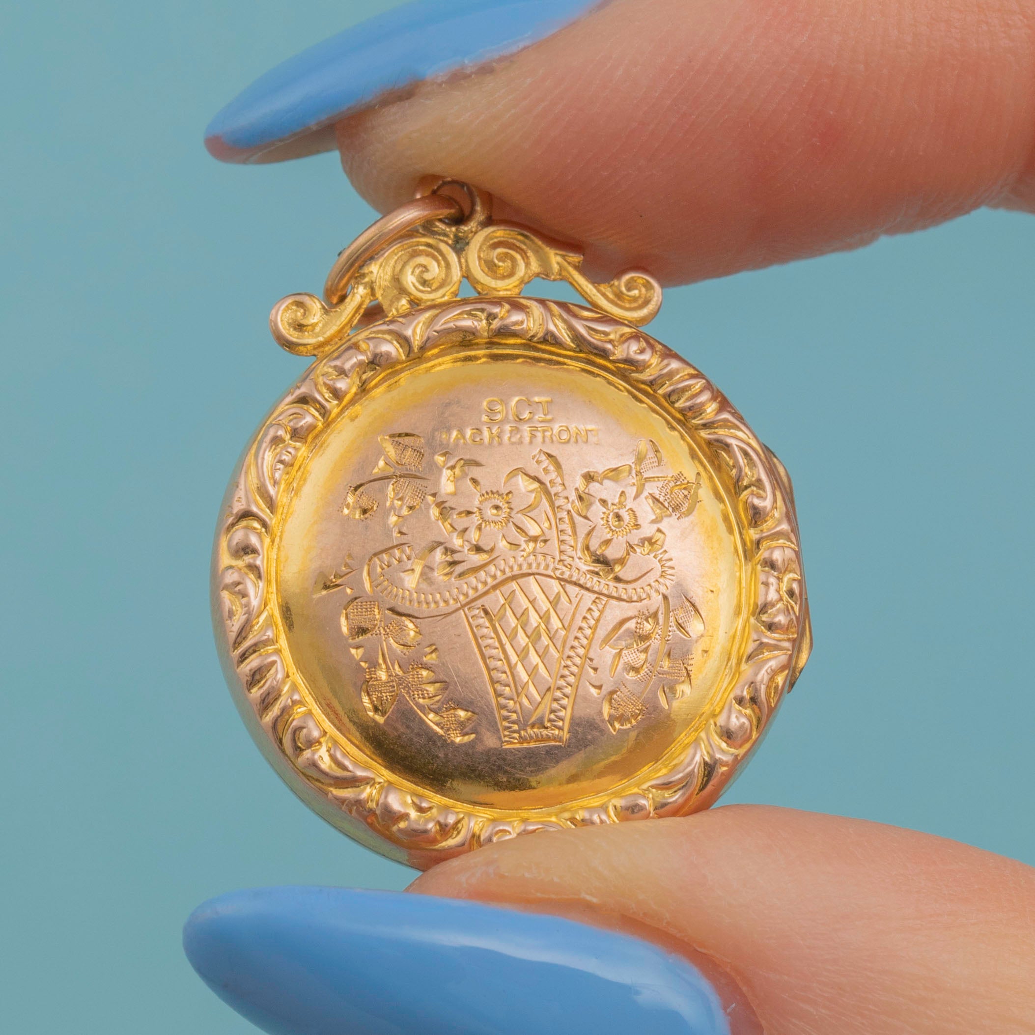 VERY GOOD. This Edwardian 9ct Gold chased locket is in very good condition! The chased detailing is prominent on both sides and has lasted incredibly well considering this piece is over 100 years old, with only some very minor discolouration to the Gold. The doors shut tightly so your photos will be safe! How wonderful for a piece this old to be so well preserved, and with the right care she should last many more.