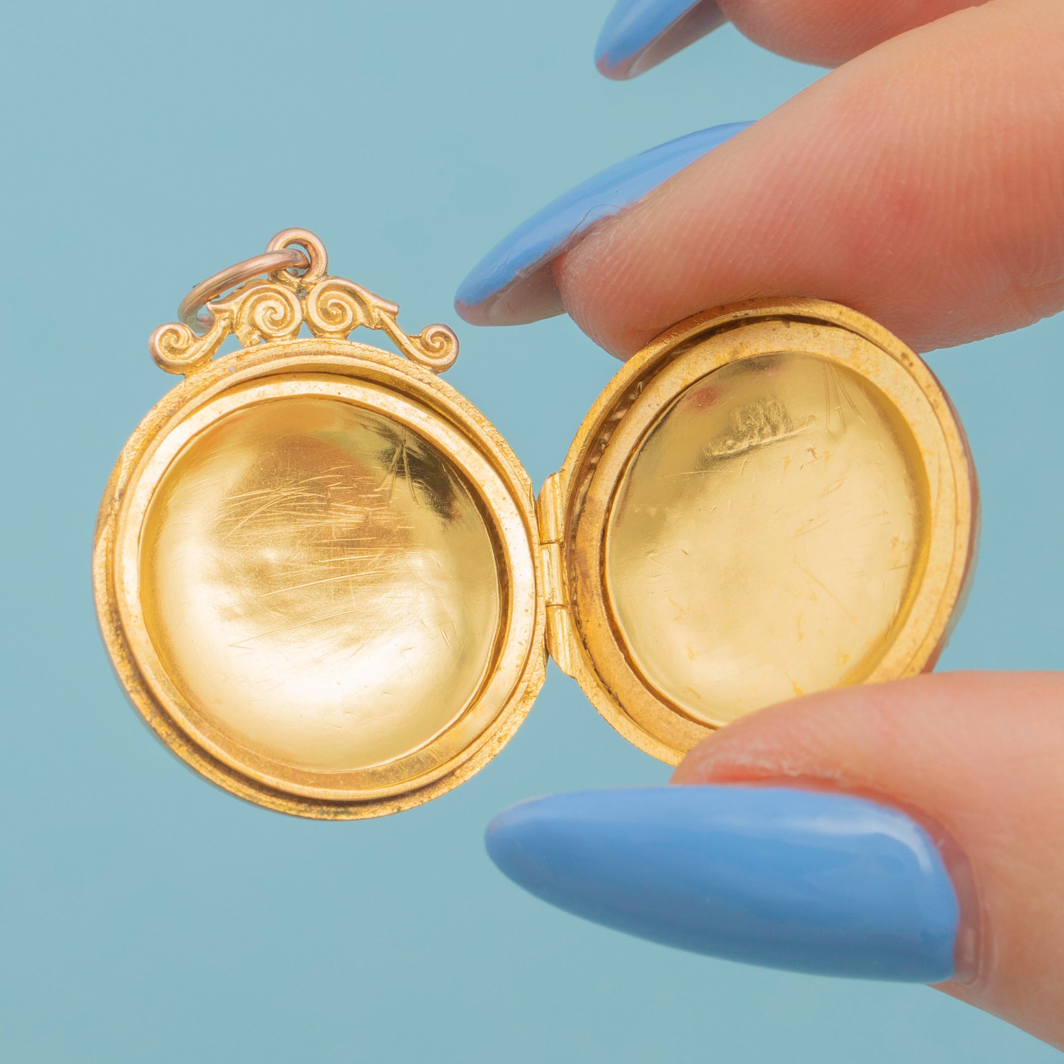 This antique Gold locket is a great size, dainty enough to wear everyday! There is space for two photos to be added inside, which you can keep close to your heart, forever preserved within the locket!