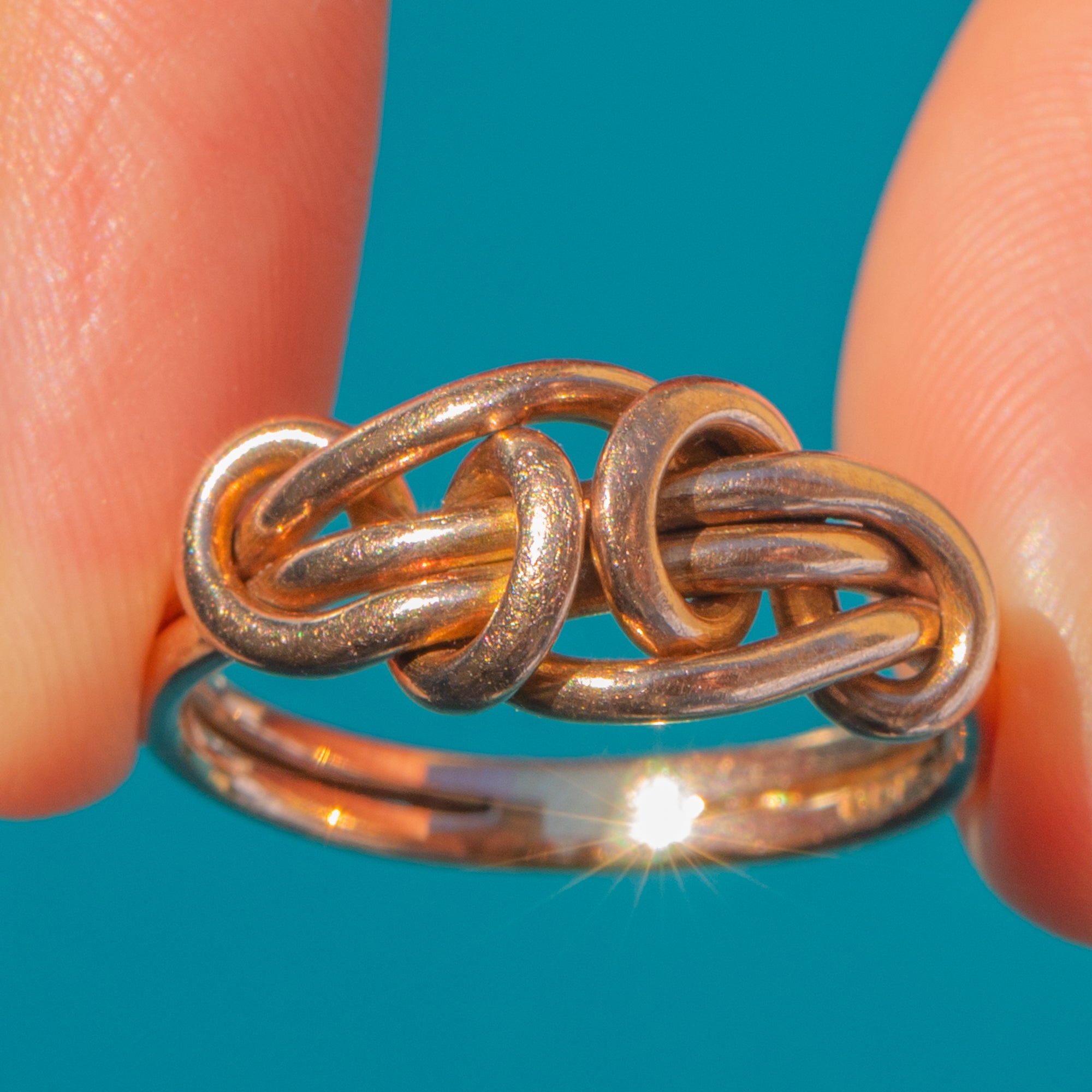 This antique Edwardian knot ring is a wonderful symbol of love and unity, beautifully crafted in 9ct Gold. The bold, interlaced knot design makes a striking statement, with a lovely sense of movement and depth to the polished Gold links.