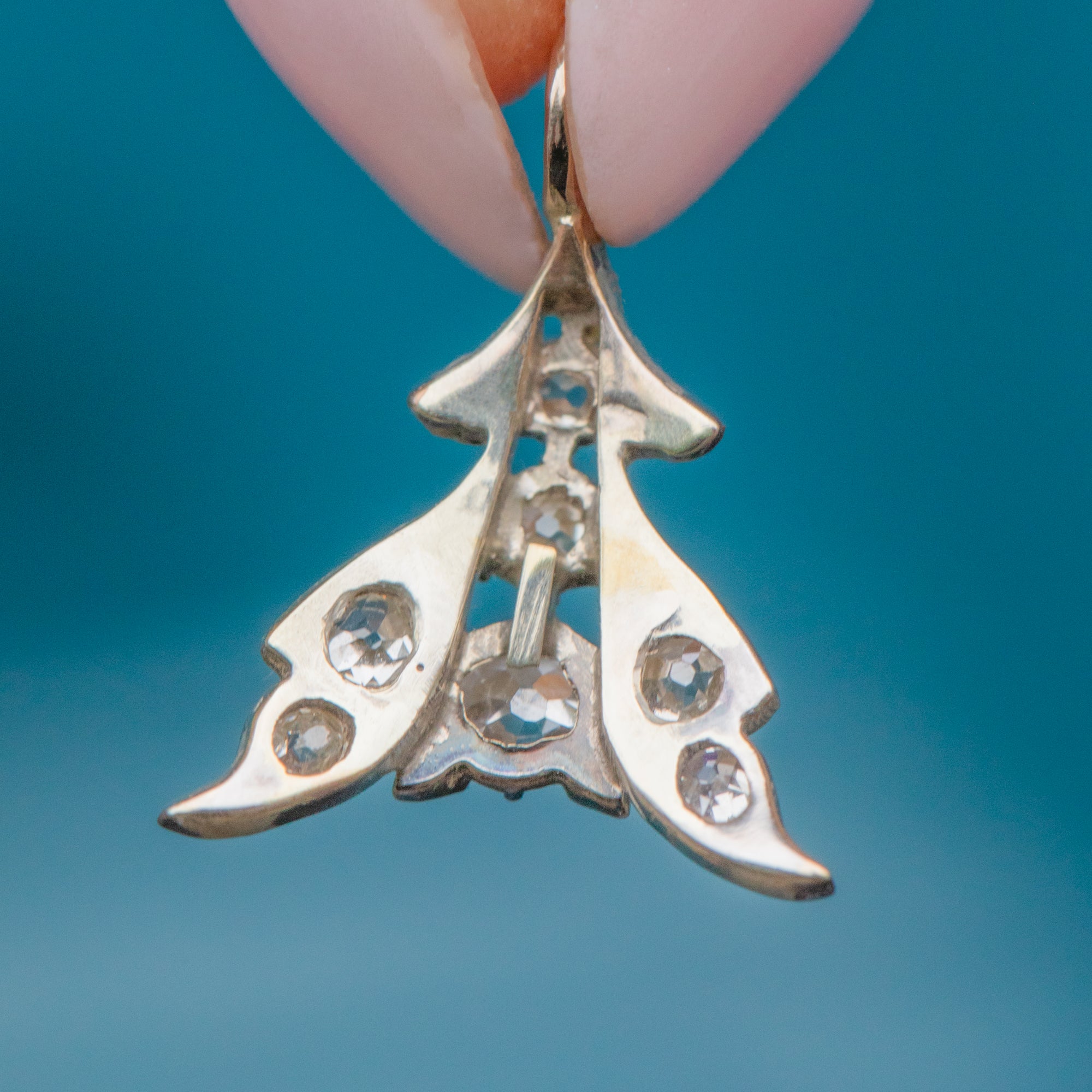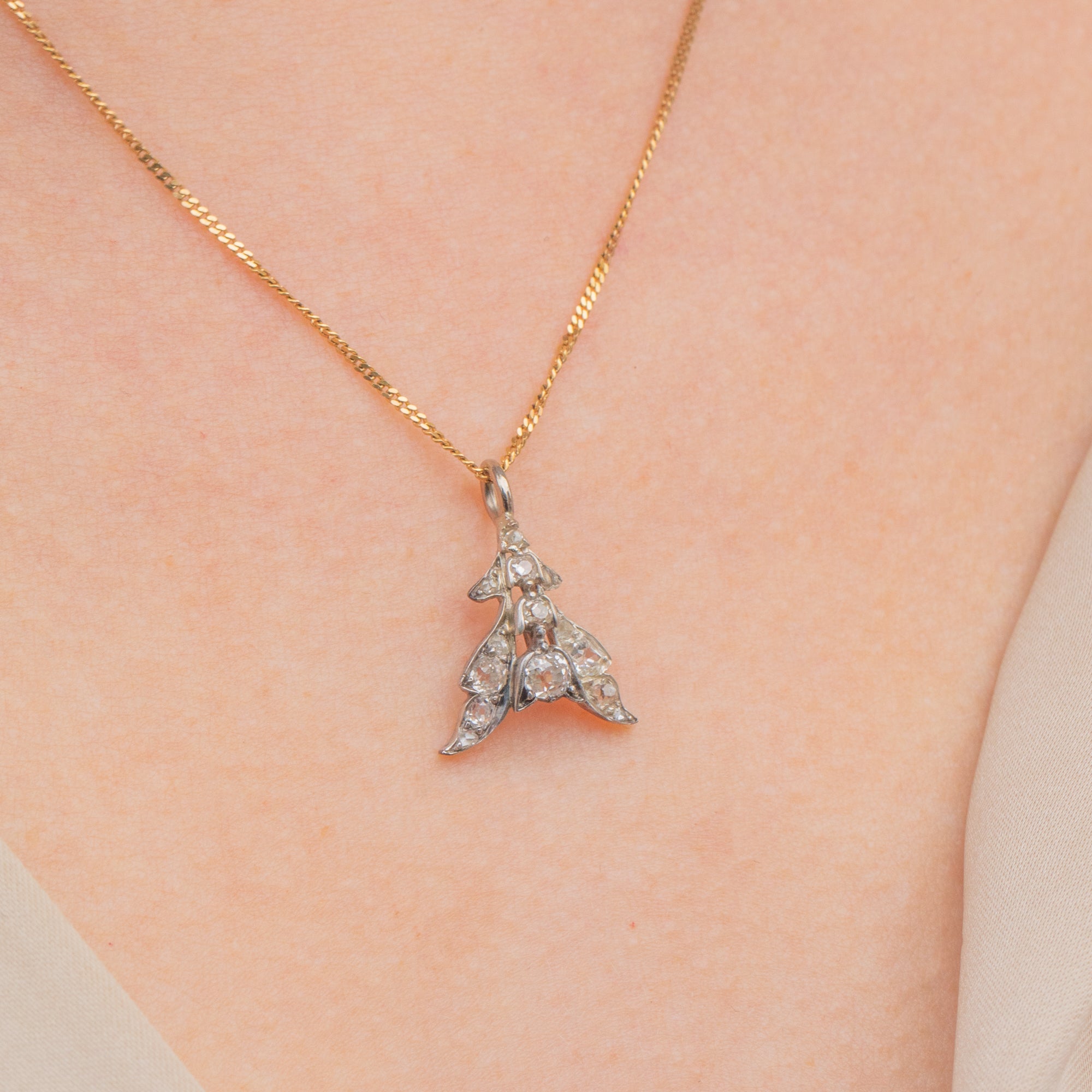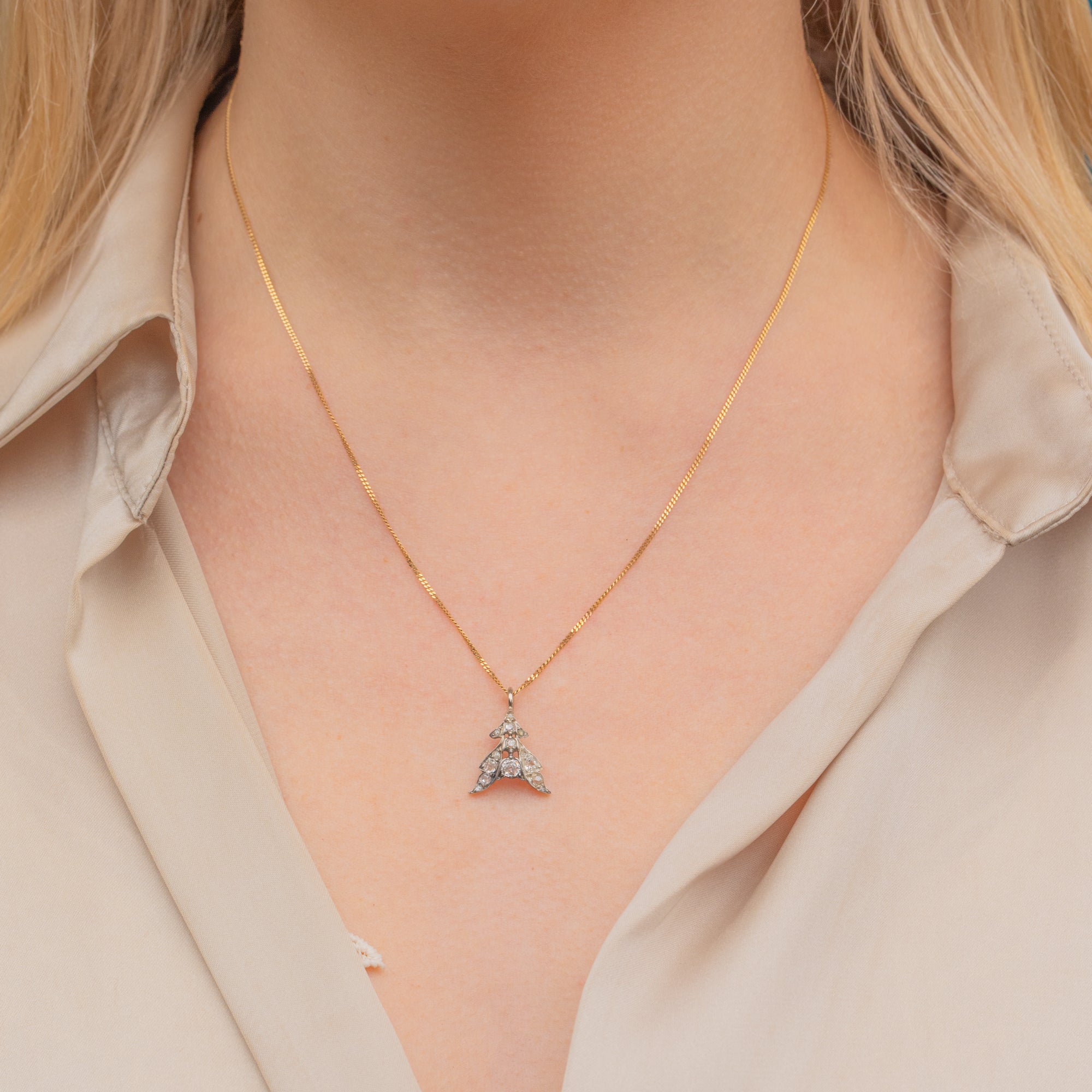 How divine is this Edwardian Platinum old-mine cut Diamond charm?! Her enchanting form is inlaid with a sea of twinkling old-mine-cut Diamonds, their crisp cut facets catching effortlessly beneath the light.
