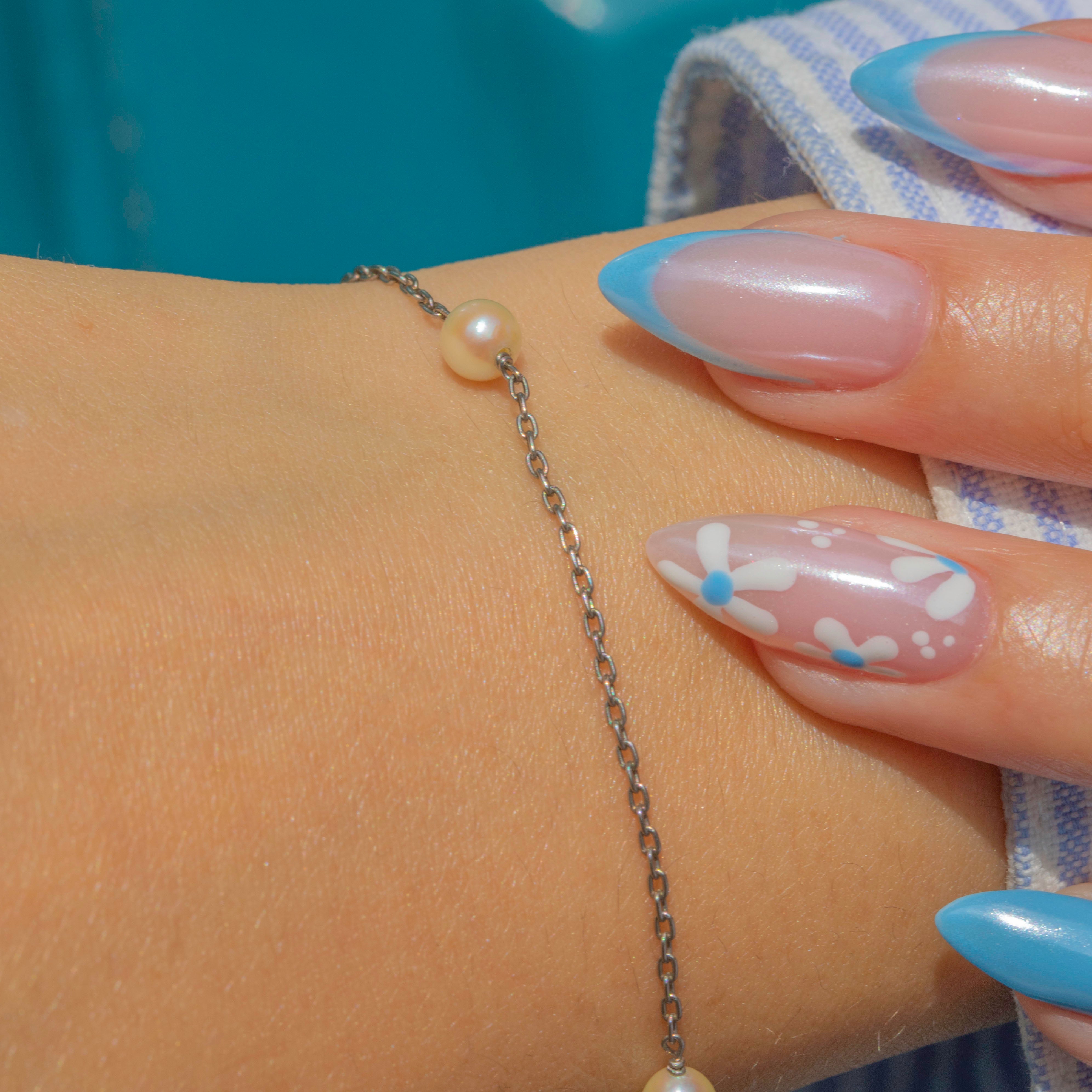 The slender chain highlights the beauty of each Pearl, creating a refined, graceful silhouette. Perfect worn alone or layered, it’s a charming antique piece that adds a subtle, sophisticated touch to any look.