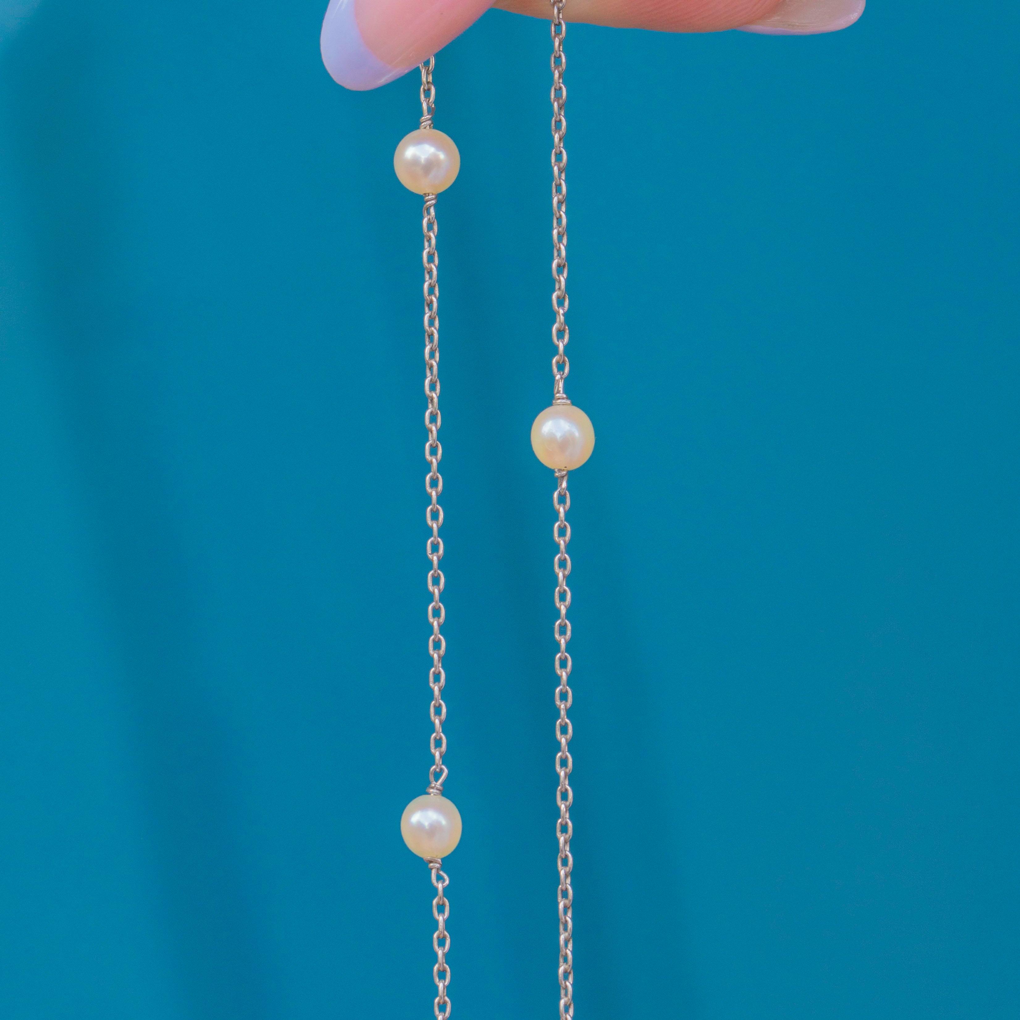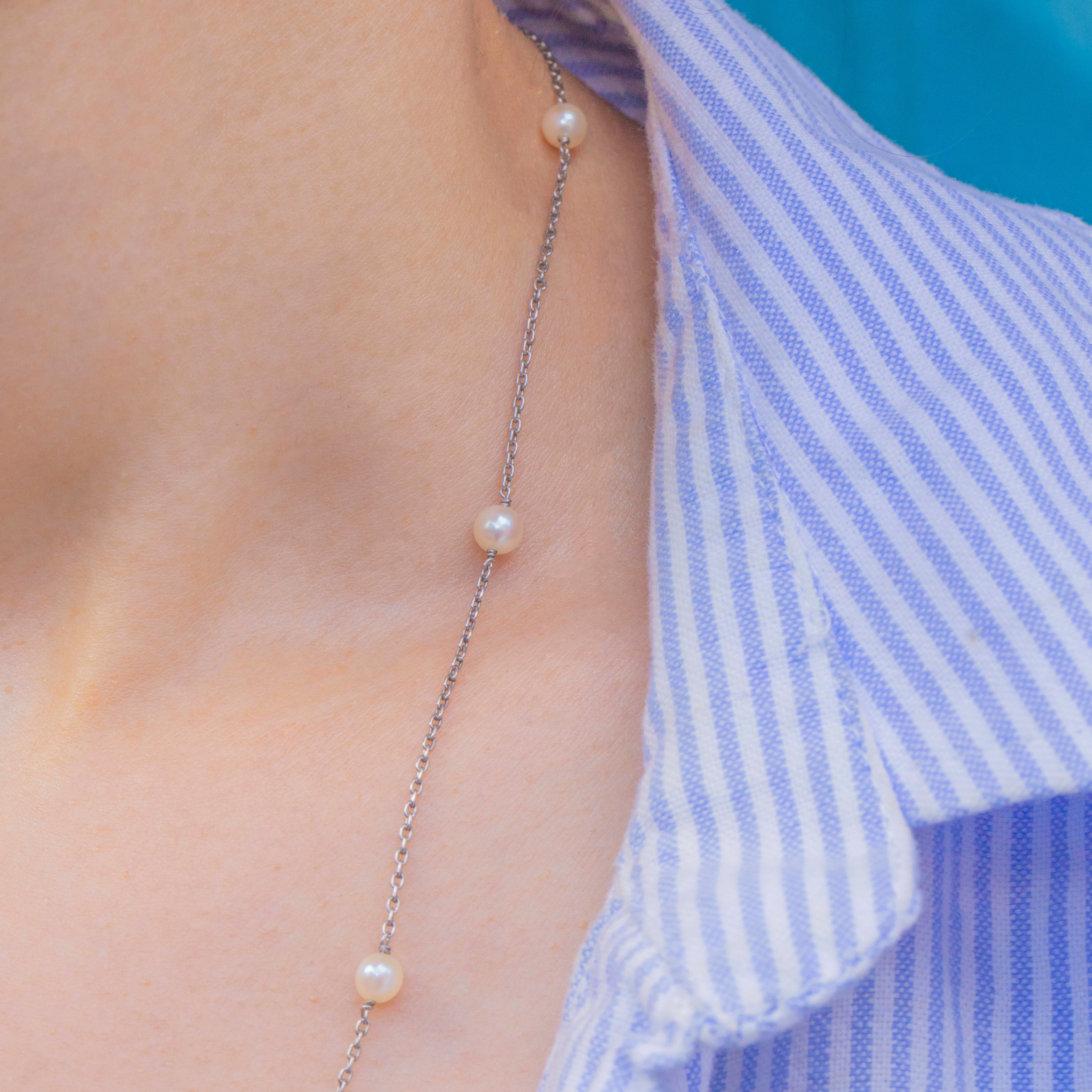 Edwardian Platinum Pearl Station Necklace with Bolt Ring Clasp