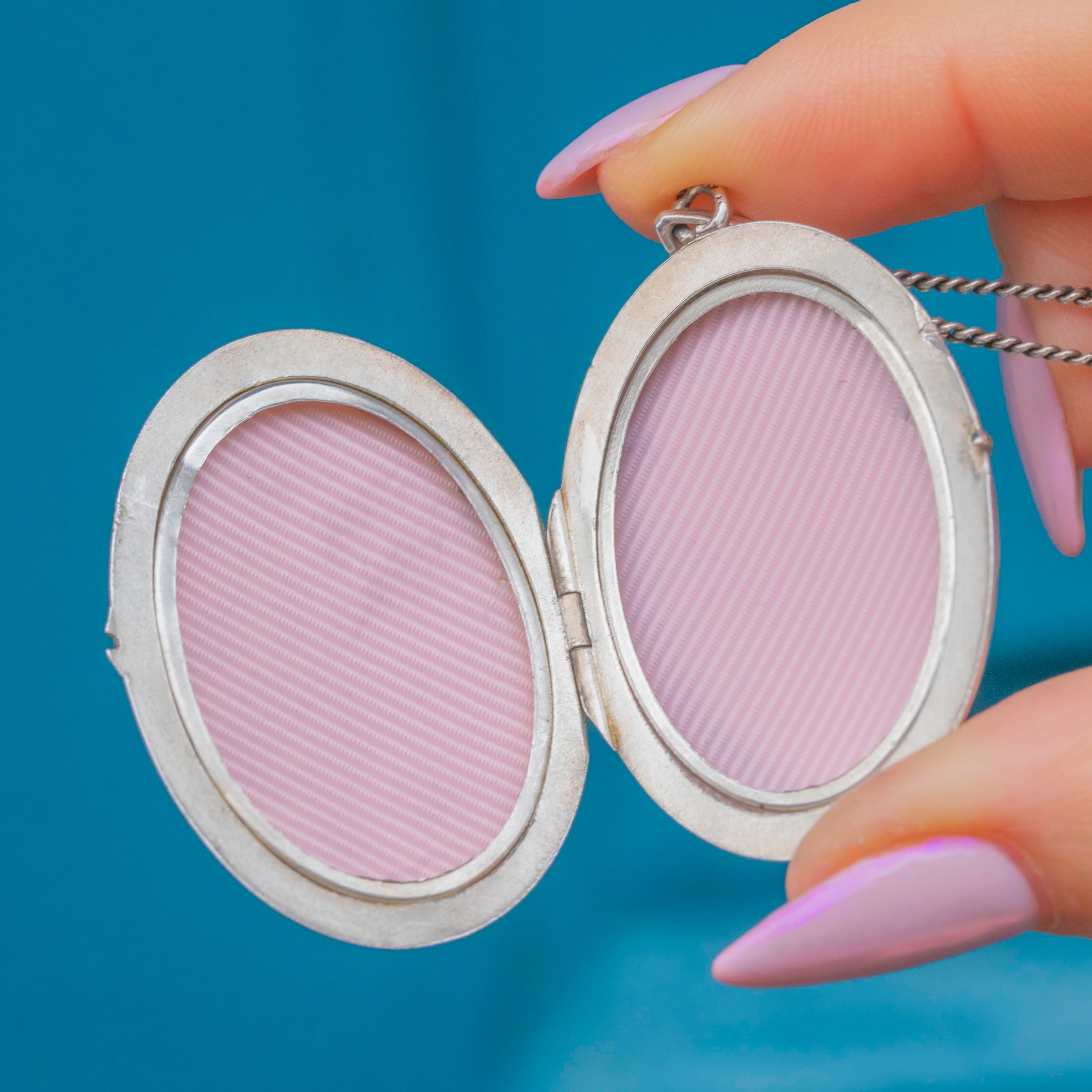 Edwardian Silver Enamel Rose Locket with 23" Chain Item added