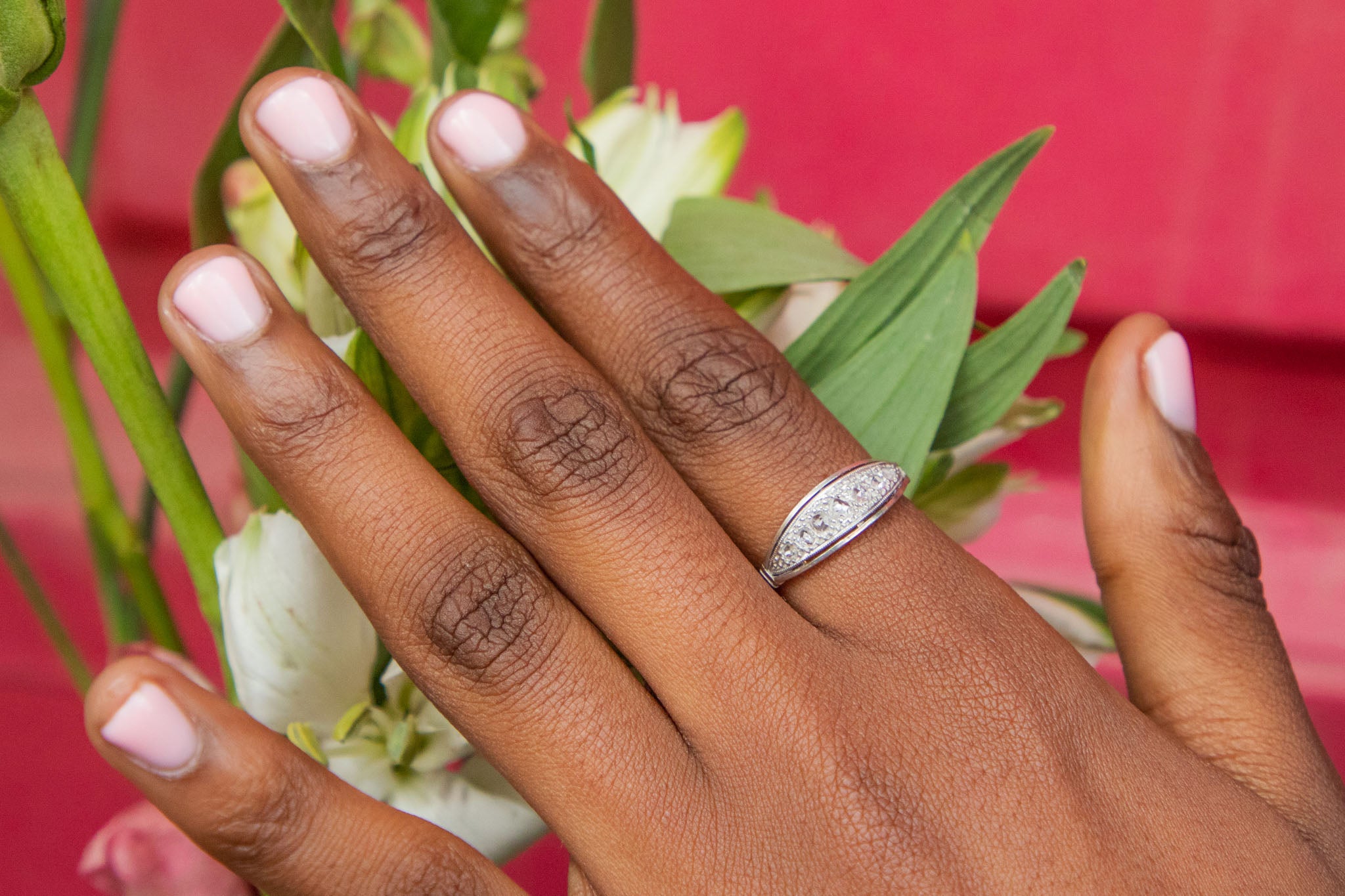 Boasting a spread of 0.20ct, these dazzling Diamonds possess a glittering glow to charm any onlookers. Brimming with understated beauty, this Art Deco ring will make the perfect accompaniment to any ring stack!