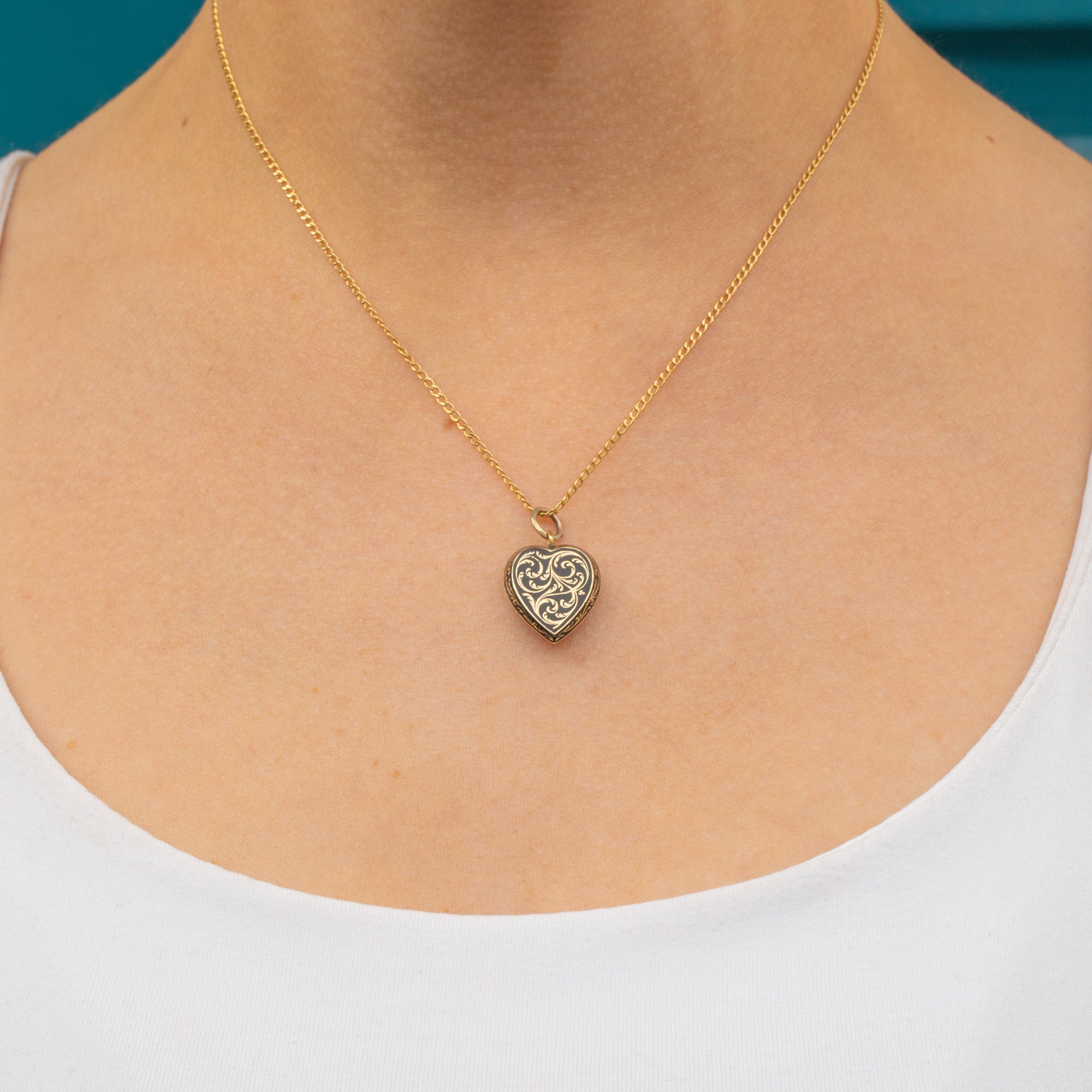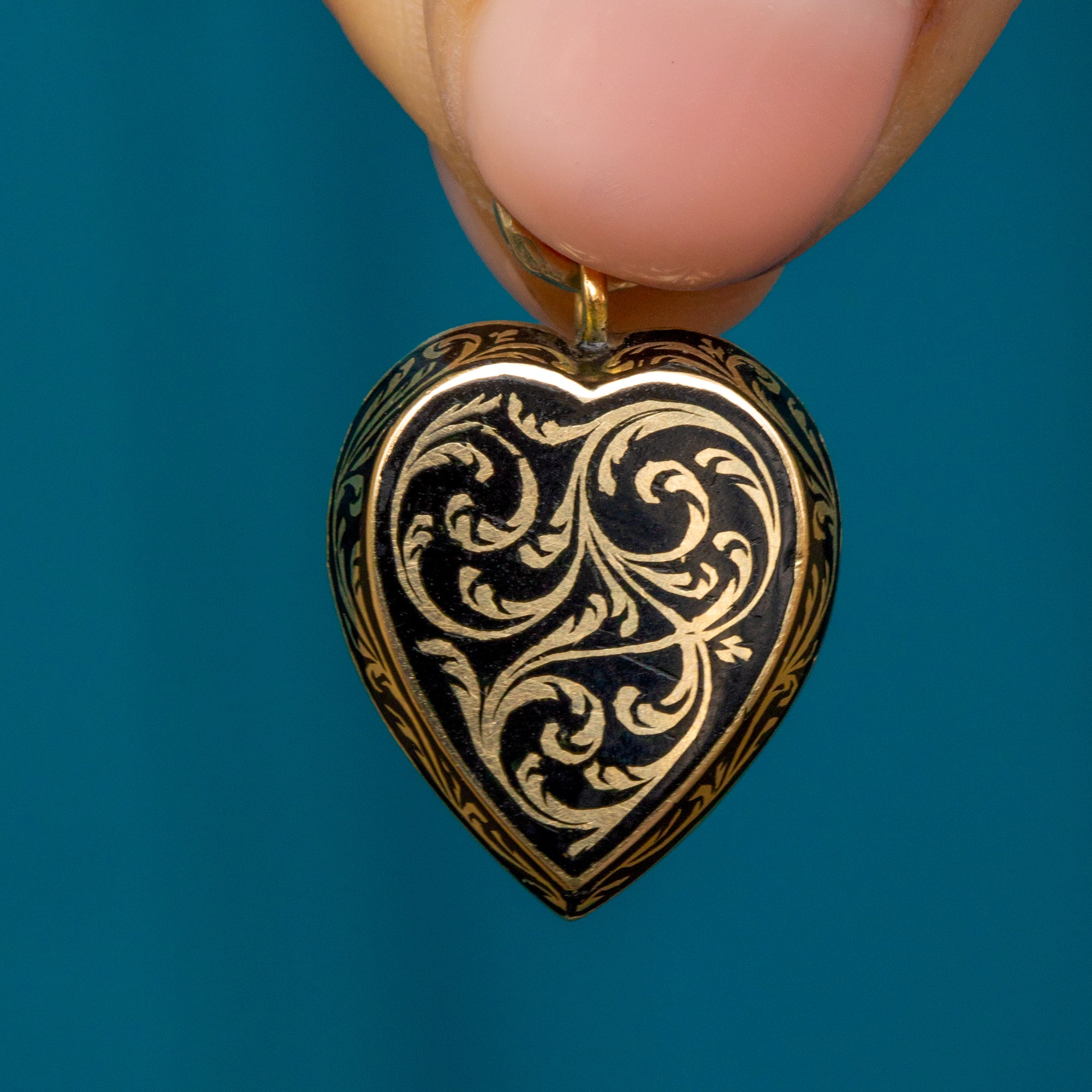 This Georgian 15ct Gold Black Enamel heart pendant is a rare treasure and will instantly add gothic allure to your collection! Meticulously handcrafted almost two centuries ago, this striking Gold heart is inlaid with ornate black enamel work creating a bold contrast.