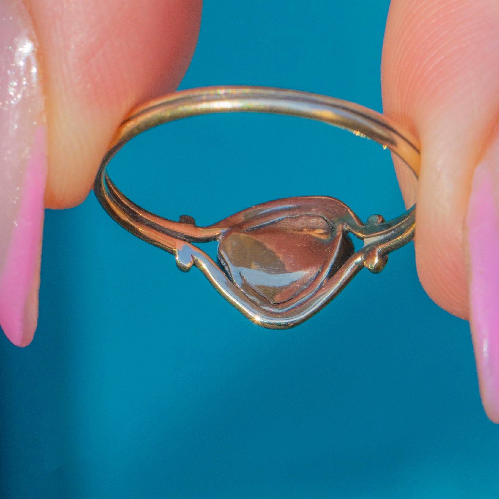 A delicate Georgian ring crafted in 9ct Gold, featuring a soft white Agate cut into a charming shield shape. The stone’s smooth polish and creamy tone give the ring a quietly elegant character, perfectly complemented by its slender gold band.