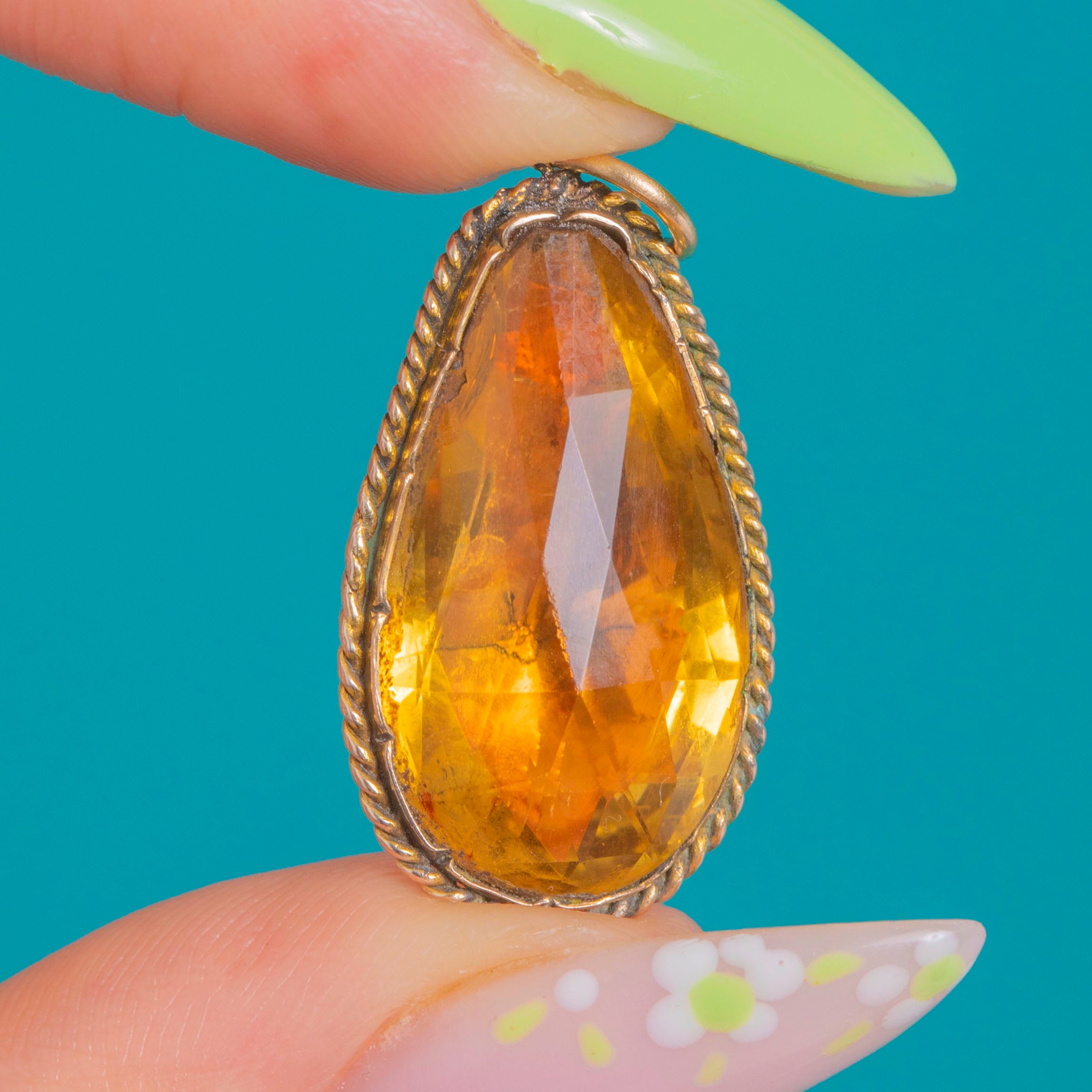 Georgian Anhänger aus 9ct Gold und Silber mit foliertem Citrin in Tropfenform