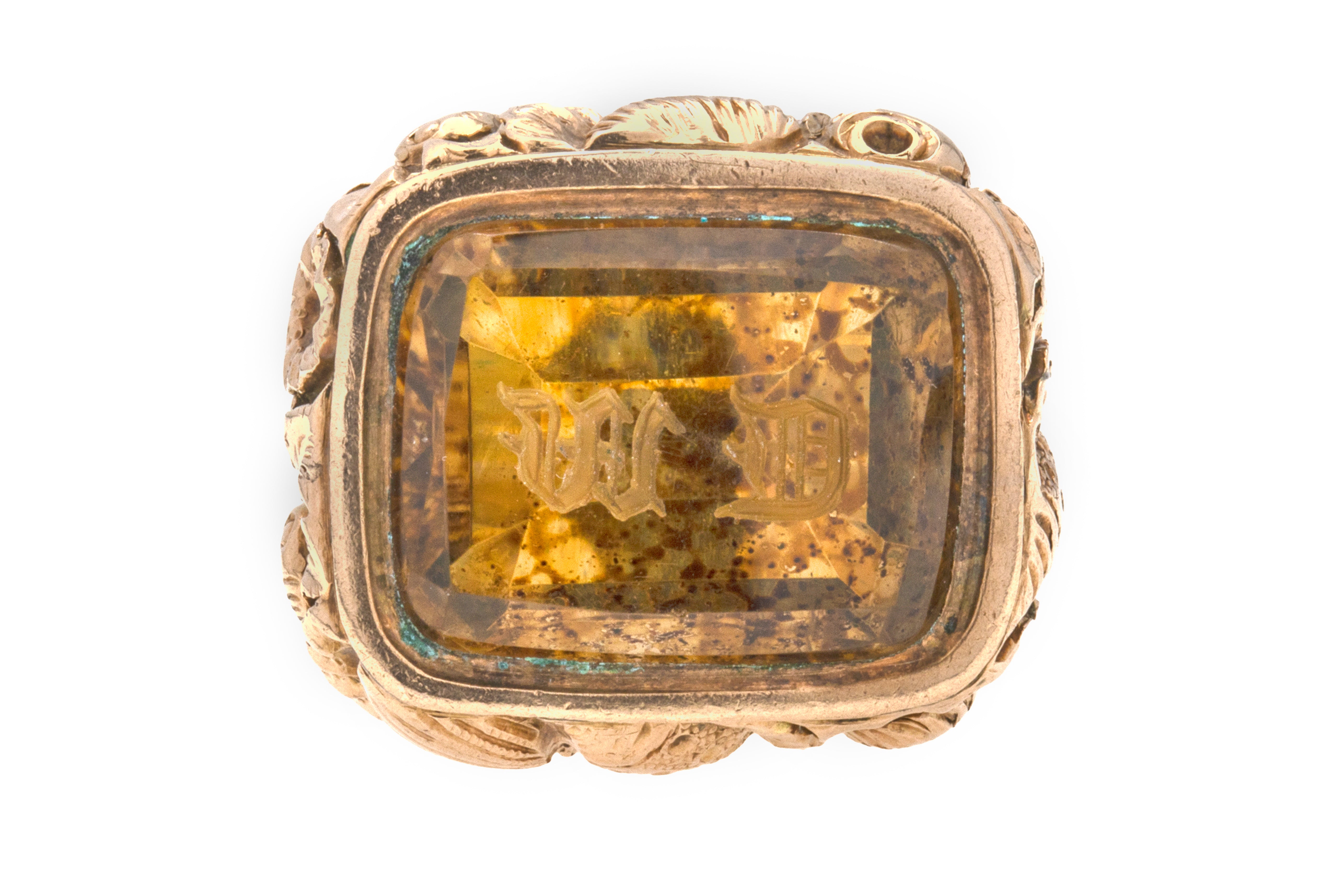 Georgian 9ct Gold Cased Citrine Fob Pendant, "MD" Intaglio