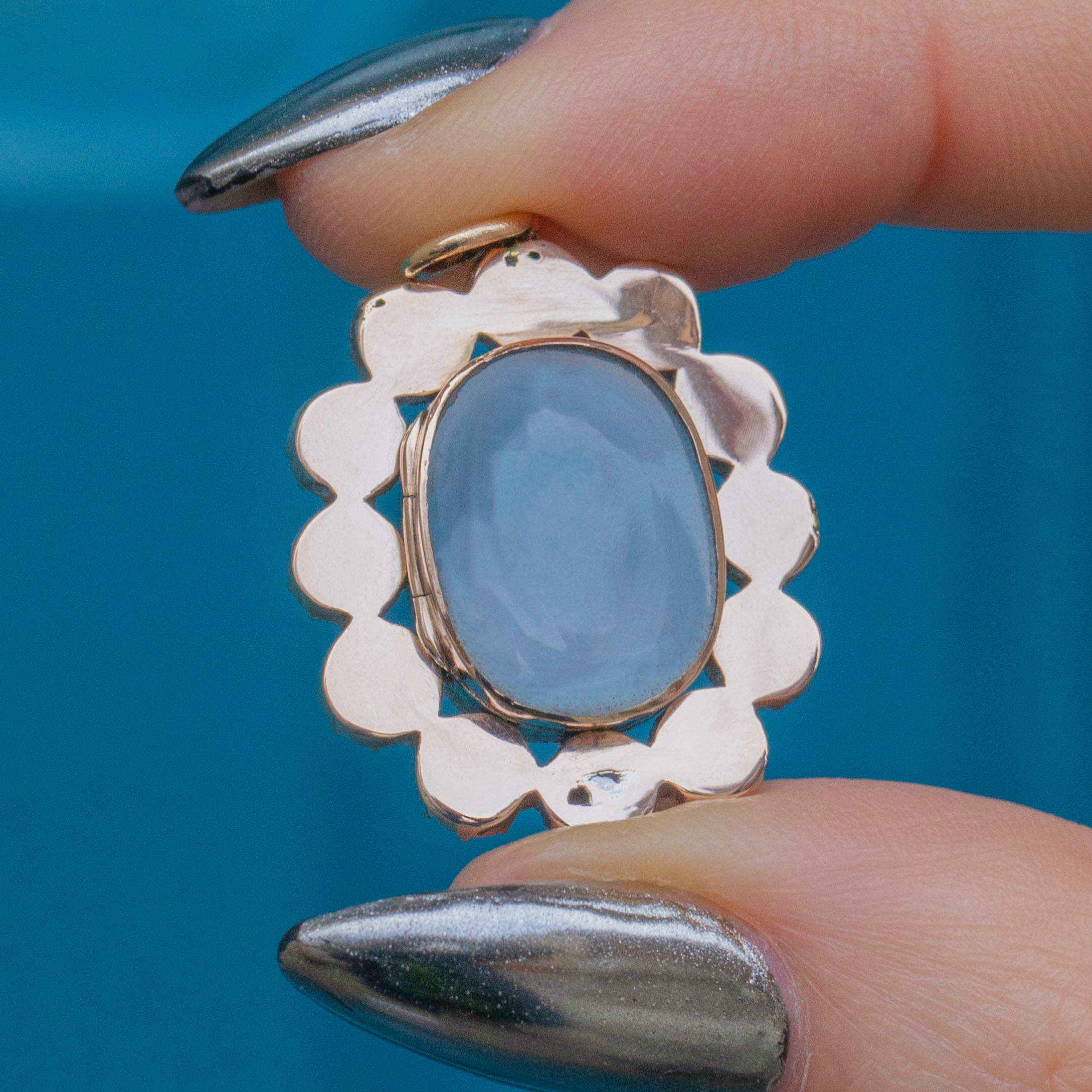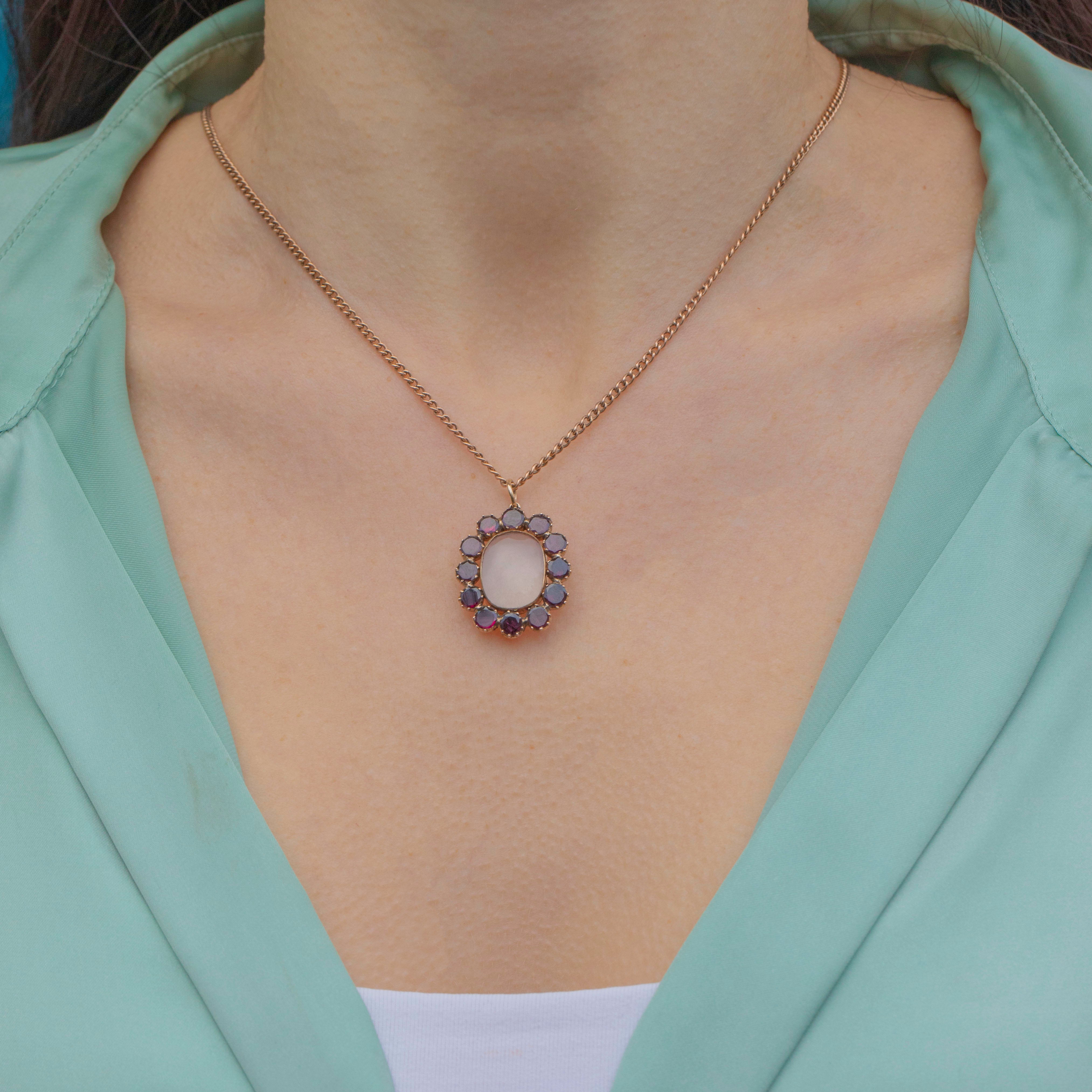 VERY GOOD. This Georgian 9ct Gold flat-cut Garnet shaker locket is in very good condition. The locket has securely set Garnets with no wear to note. The locket door opens to reveal the sparkly Paste gemstones, but you can replace or add to them if you so please! There is some sign of conversion on the back of the pendant, from a brooch, but this is not when you wear it!