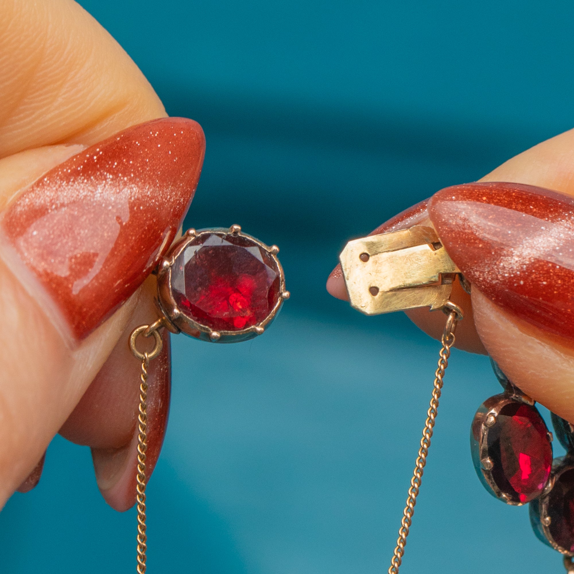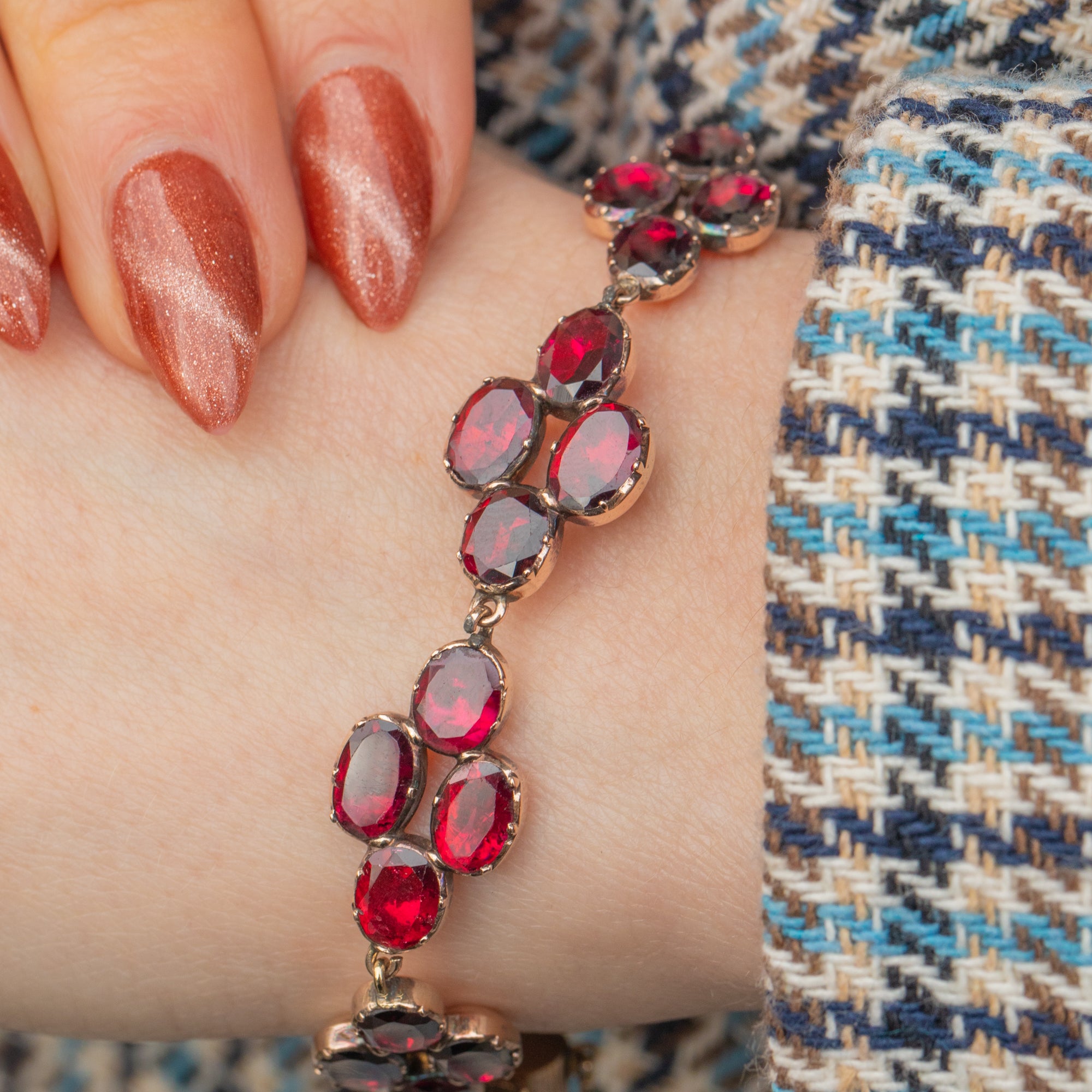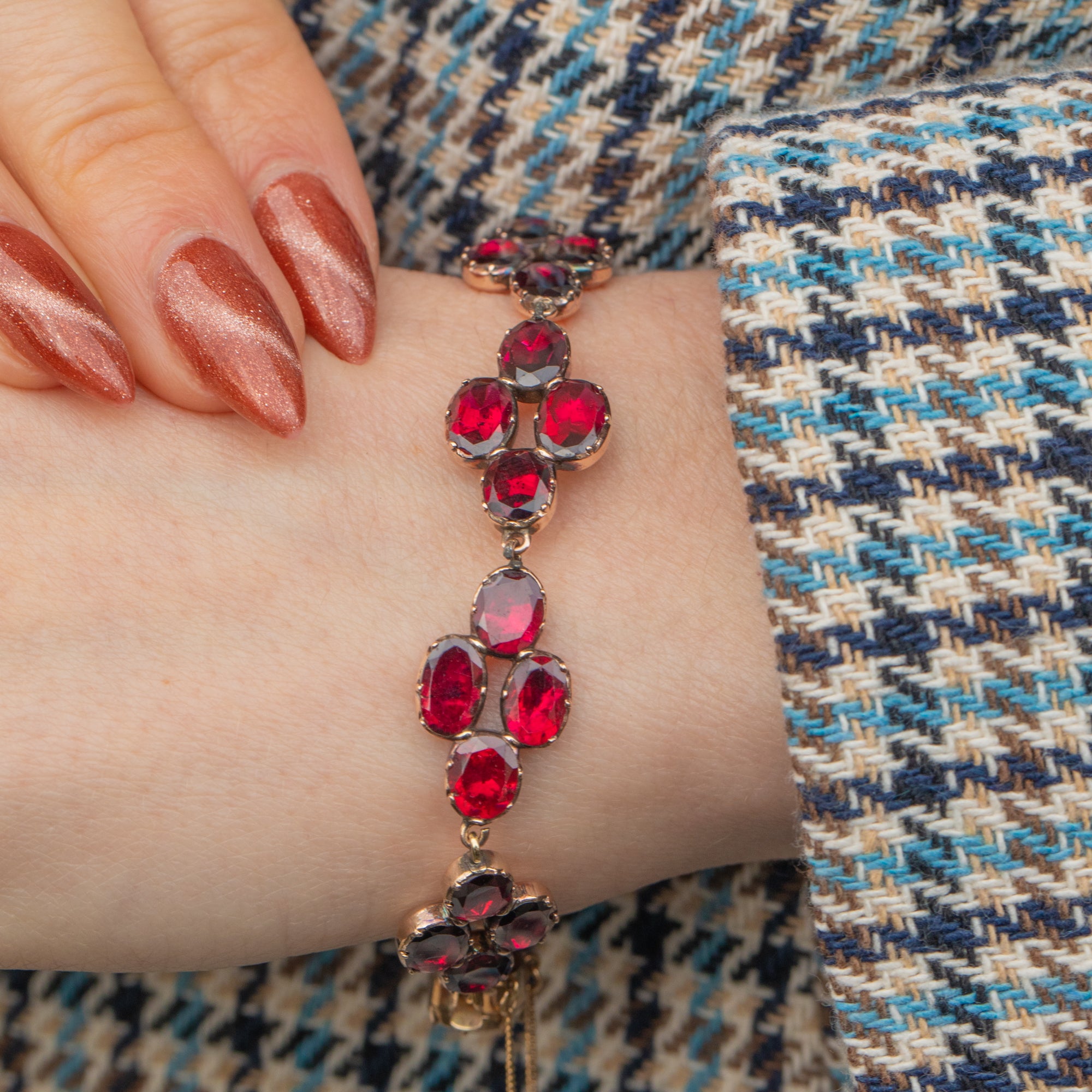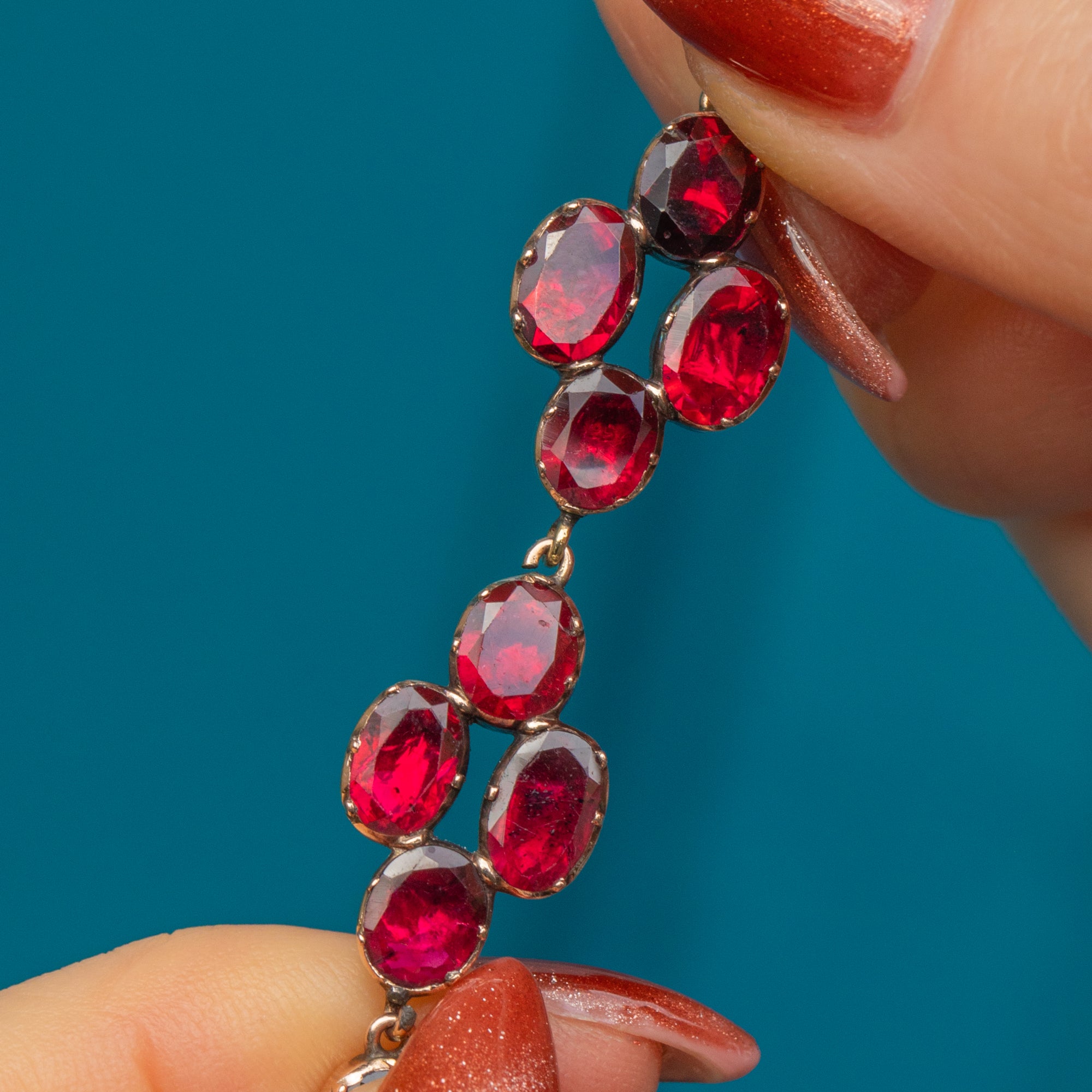 Crafted from 9ct yellow Gold, this bracelet embodies the sophistication of Georgian jewellery, with its distinctive flat-cut Granets designed to capture and reflect light beautifully. A rare and timeless piece, it remains as enchanting today as it was over 200 years ago—a perfect addition to any jewellery collection!