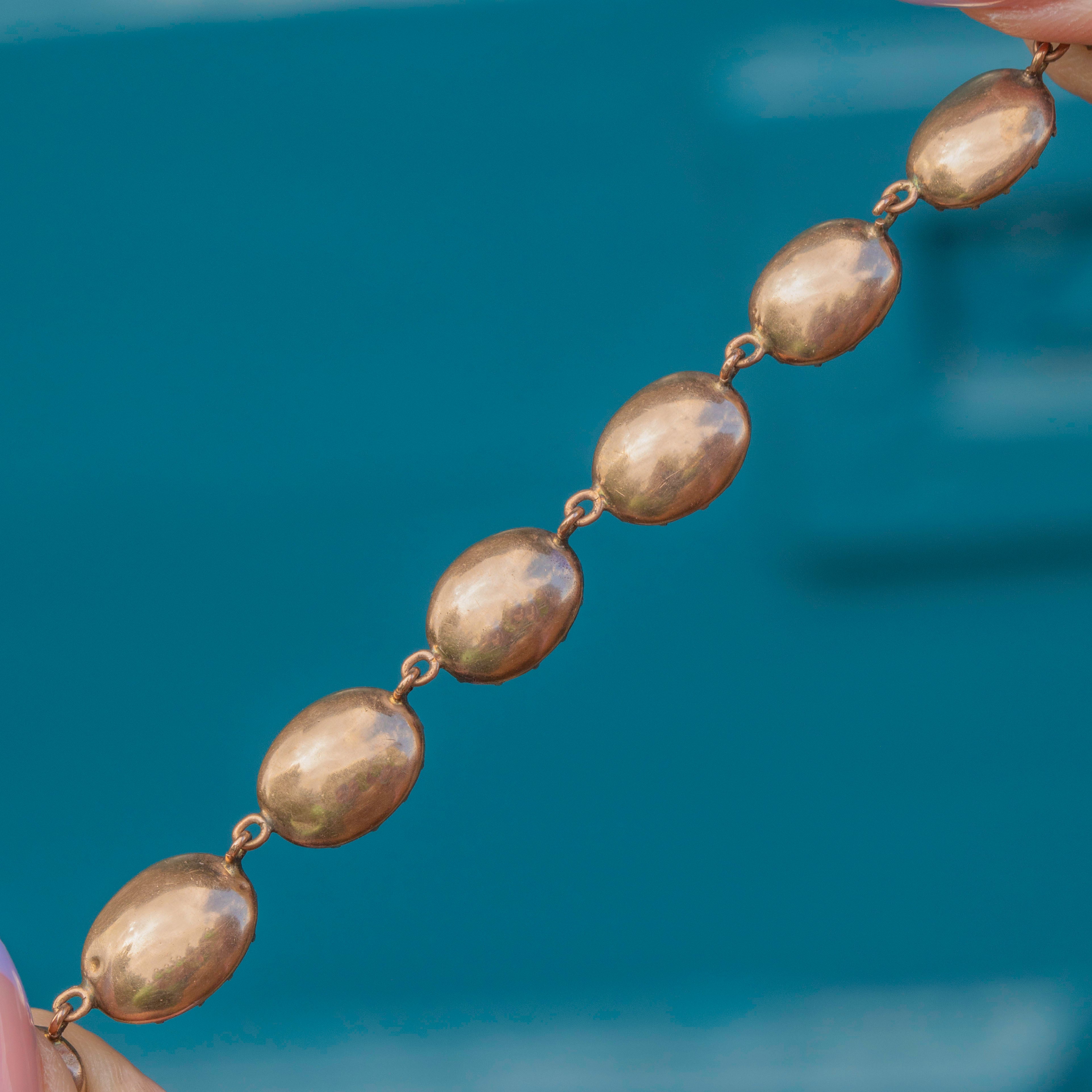 VERY GOOD-EXCELLENT: This 9ct Gold flat-cut Garnet riviere necklace is in wonderful condition. Each juicy flat-cut Garnet is radiant and in wonderful condition, each set securely within their pie-crust setting. The Gold is buttery, with only minor discolouration commensurate with age. Both her clasp and bolt-ring extension are in perfect working order, allowing you to wear this antique Garnet necklace with utmost confidence!