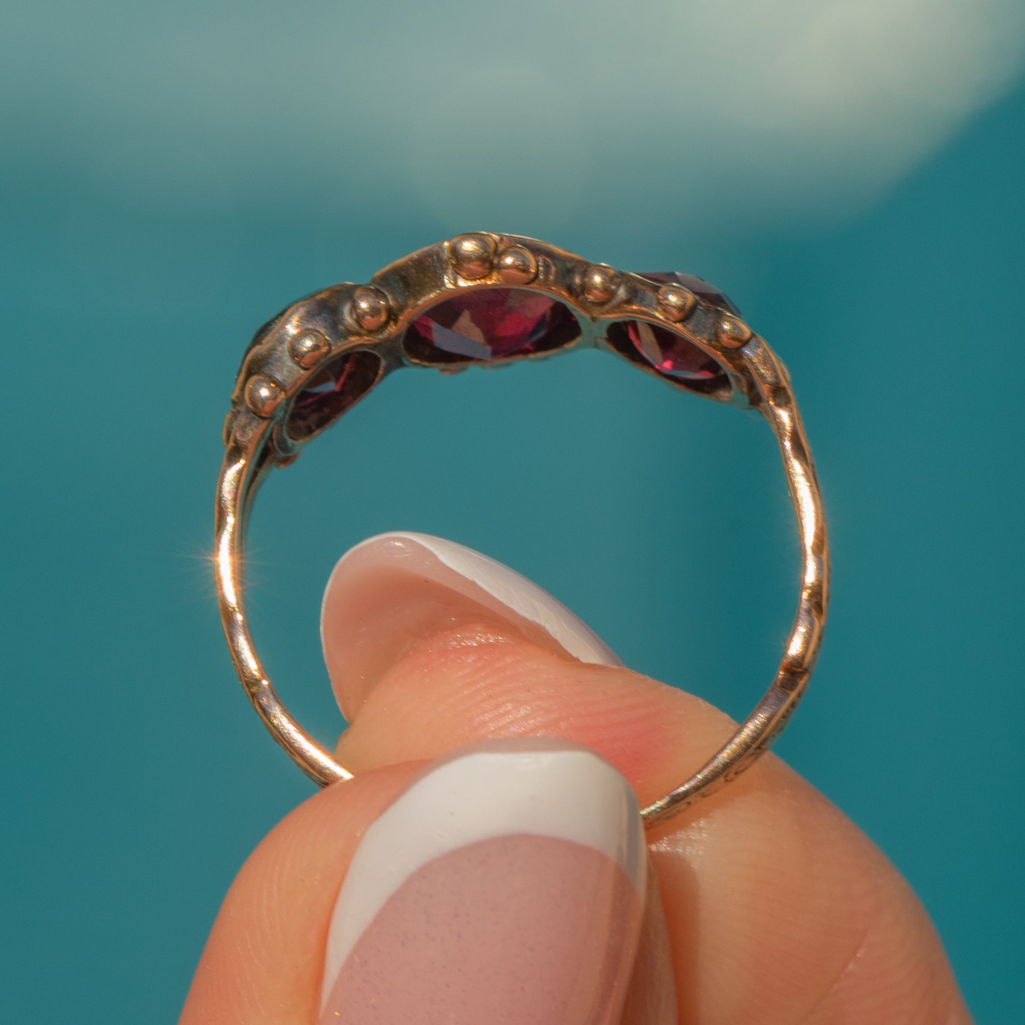 Late Georgian 9ct Gold Garnet Three Stone Ring, c.1830