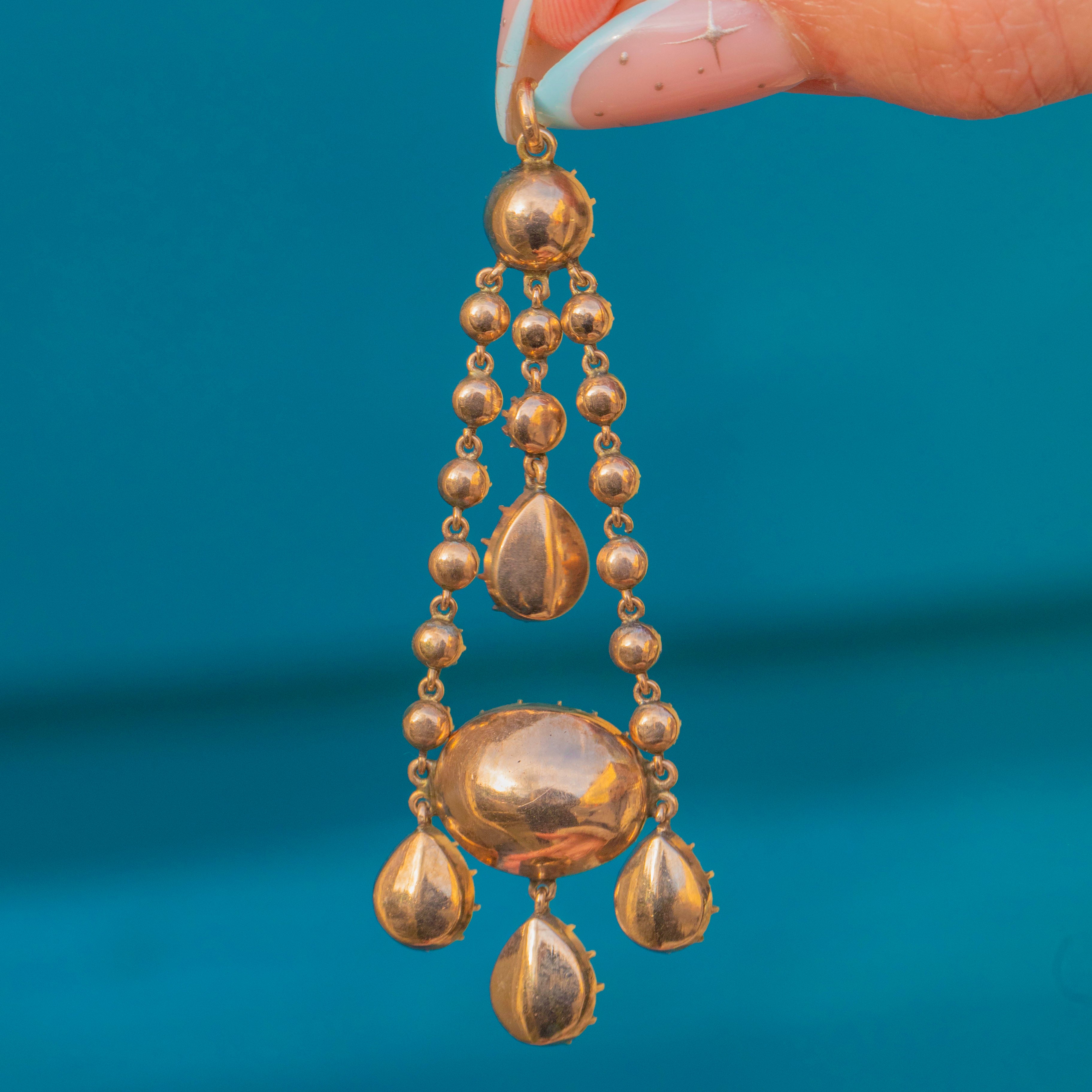 Georgian 9ct Gold Pink Paste Drop Pendant, c.1820