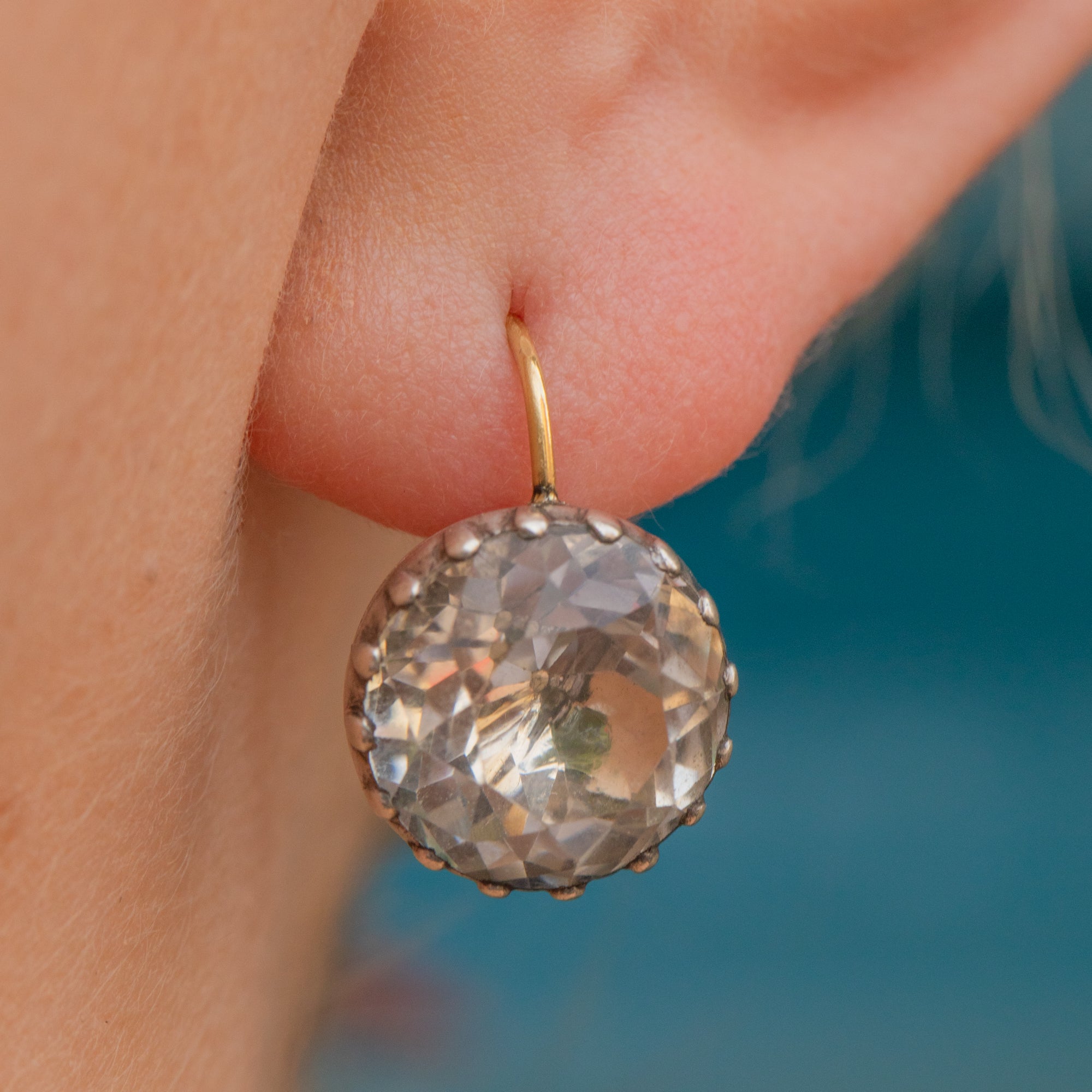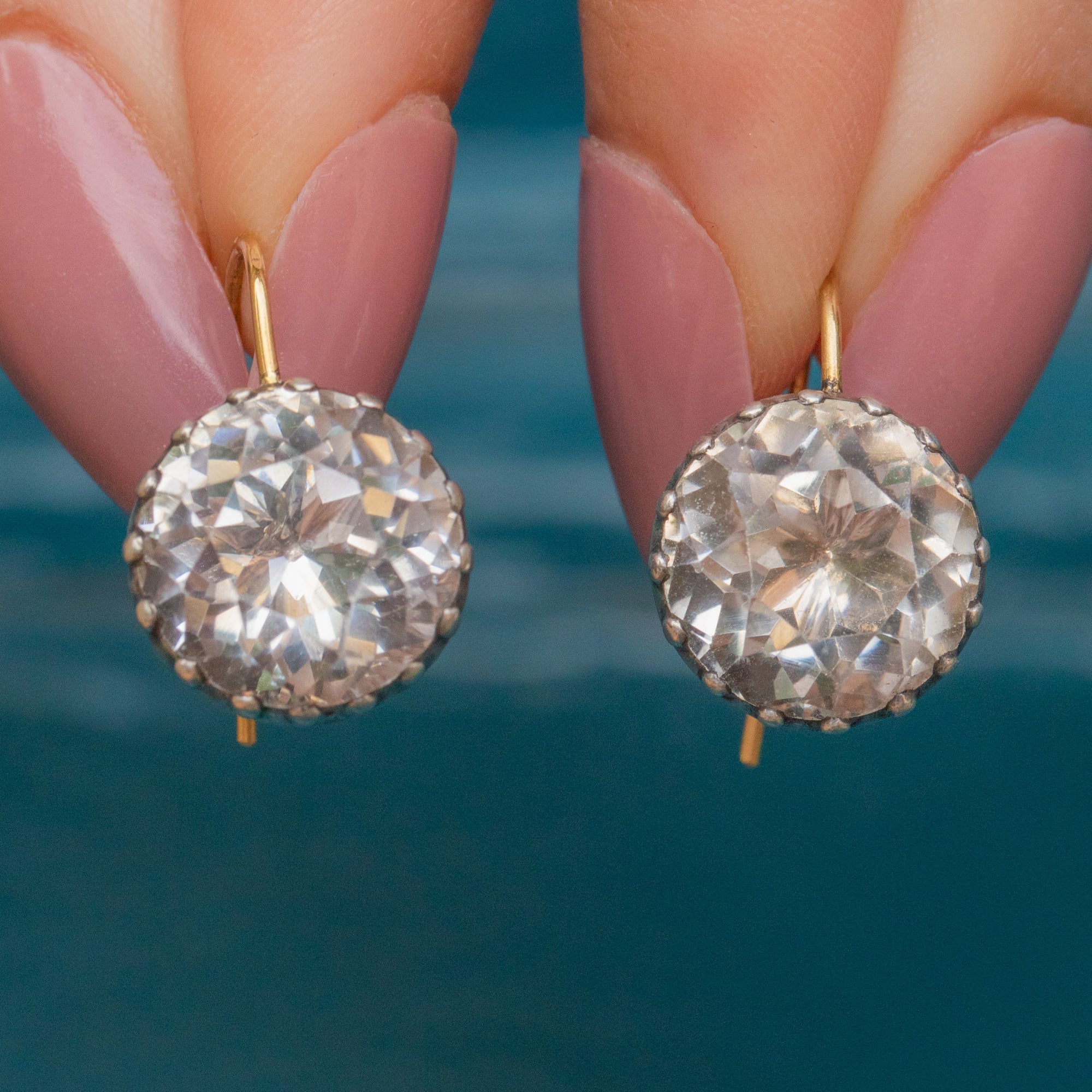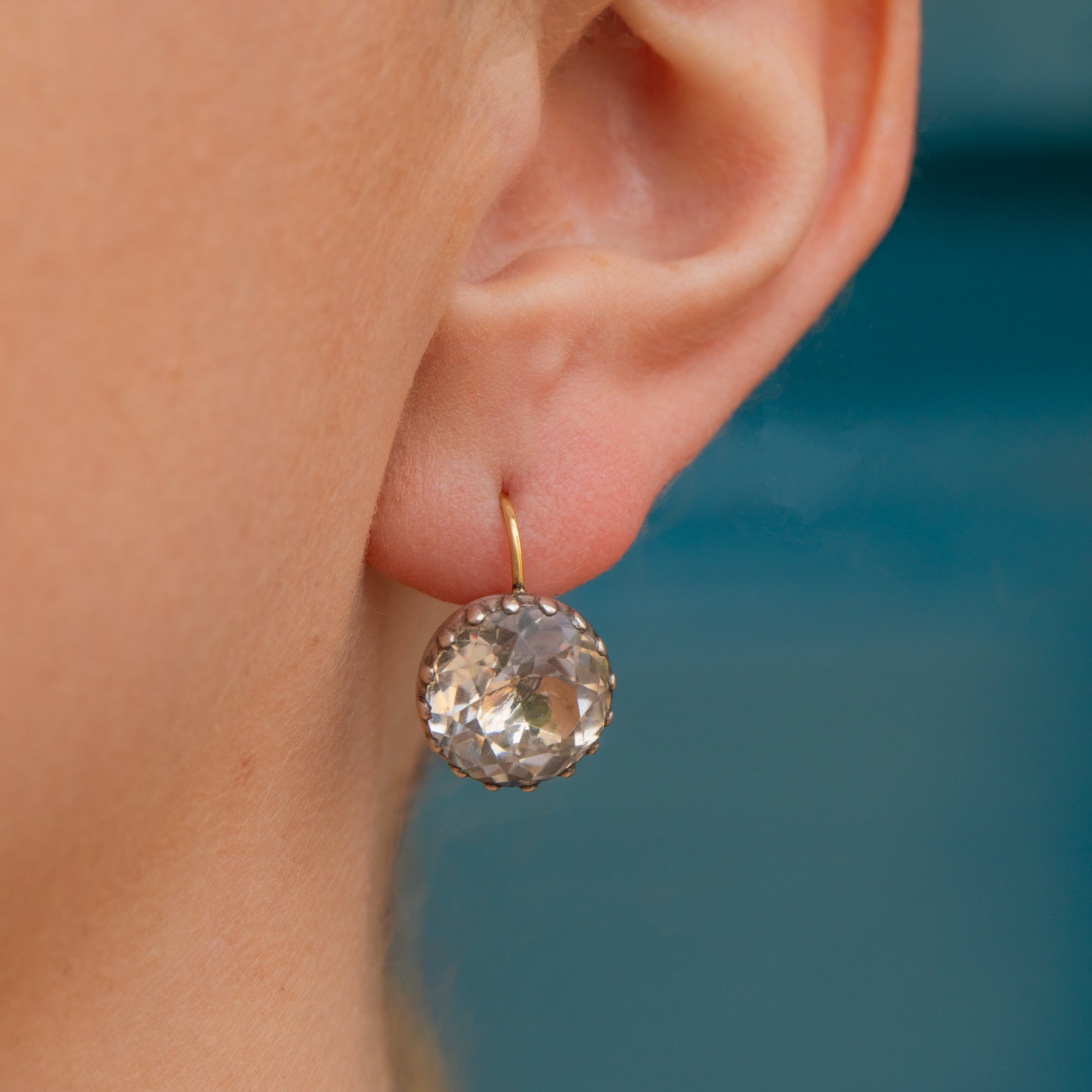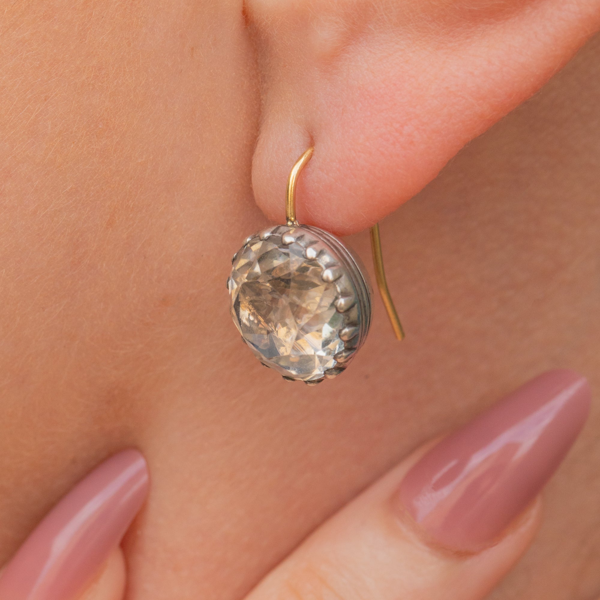 These Georgian Rock Crystal button earrings are a marvel! The Rock Crystals are foiled, so they capture the light effortlessly to create a breathtaking sparkle.