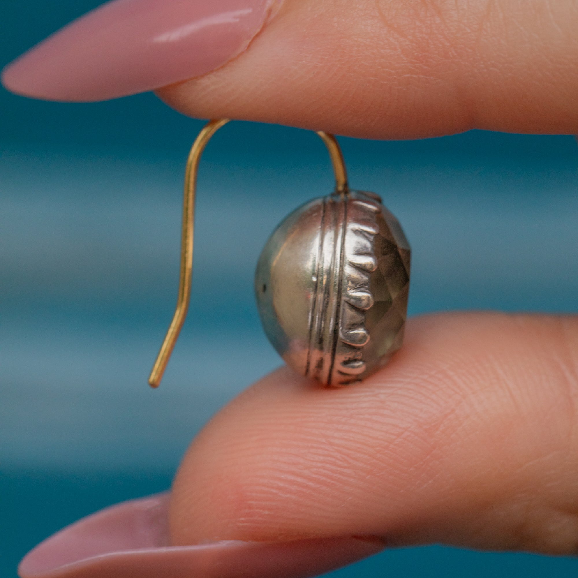 MATERIALS: Tests as Sterling Silver with 18ct Gold hooks, Rock Crystal (foiled).